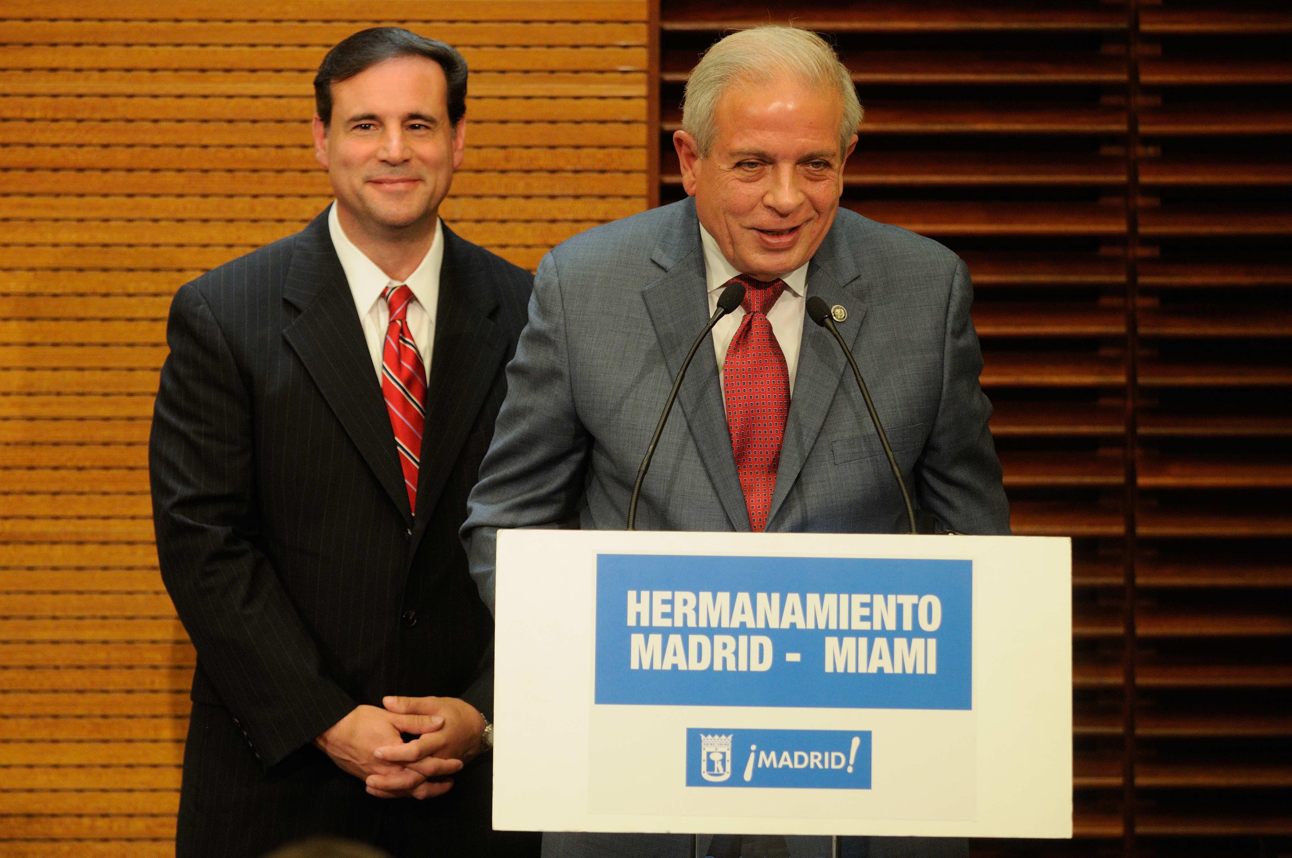 Miami, la "principal y más significativa ciudad de Florida", es la segunda gran urbe estadounidense que se hermana con la capital española. Nueva York mantiene un vínculo idéntico desde 1982, y su anterior alcalde, Michael Bloomberg, poco antes de finalizar su mandato comunicó a Tomás Regalado, su conformidad para suscribir el acuerdo de hoy, tal como estipulan las normas de Sister Cities International, la entidad que hoy agrupa y regula todos los hermanamientos de las ciudades norteamericanas. De ahí que Botella agradeciera en el acto al exalcalde neoyorquino este gesto.