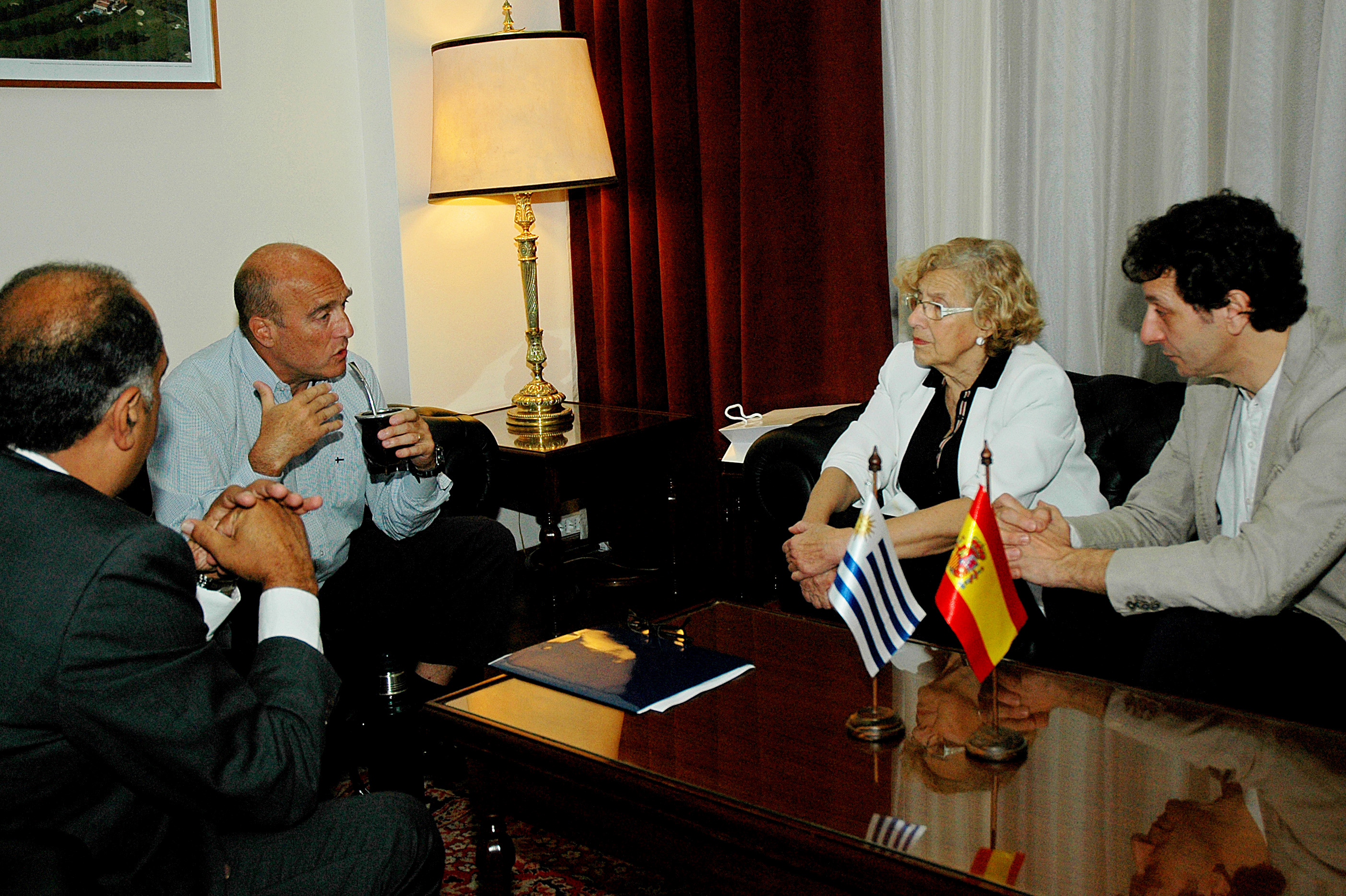 La alcaldesa de Madrid, Manuela Carmena, ha mantenido esta mañana un encuentro con el intendente de la municipalidad de Montevideo, Daniel Martínez, como parte de su visita a la capital uruguaya.