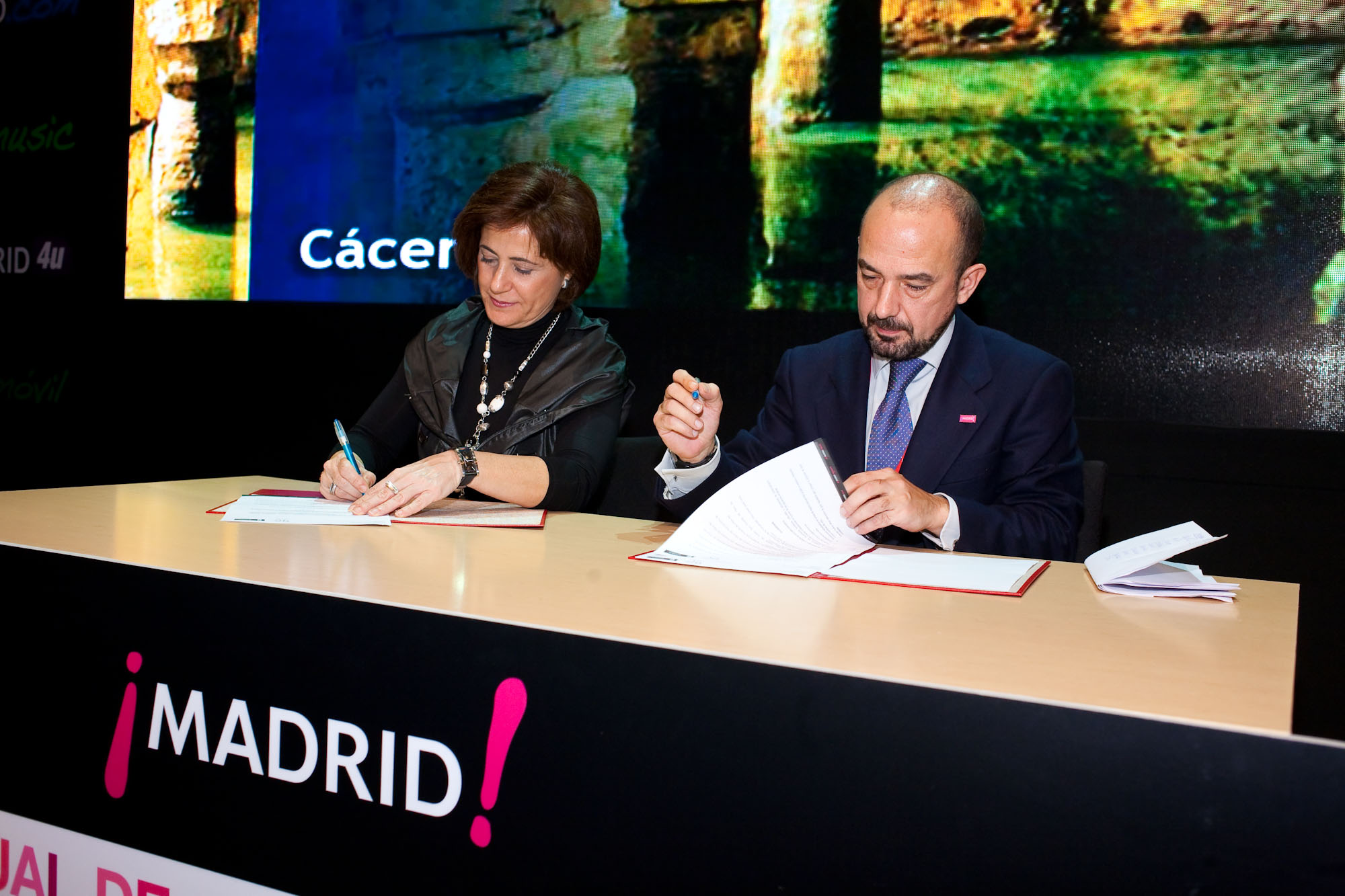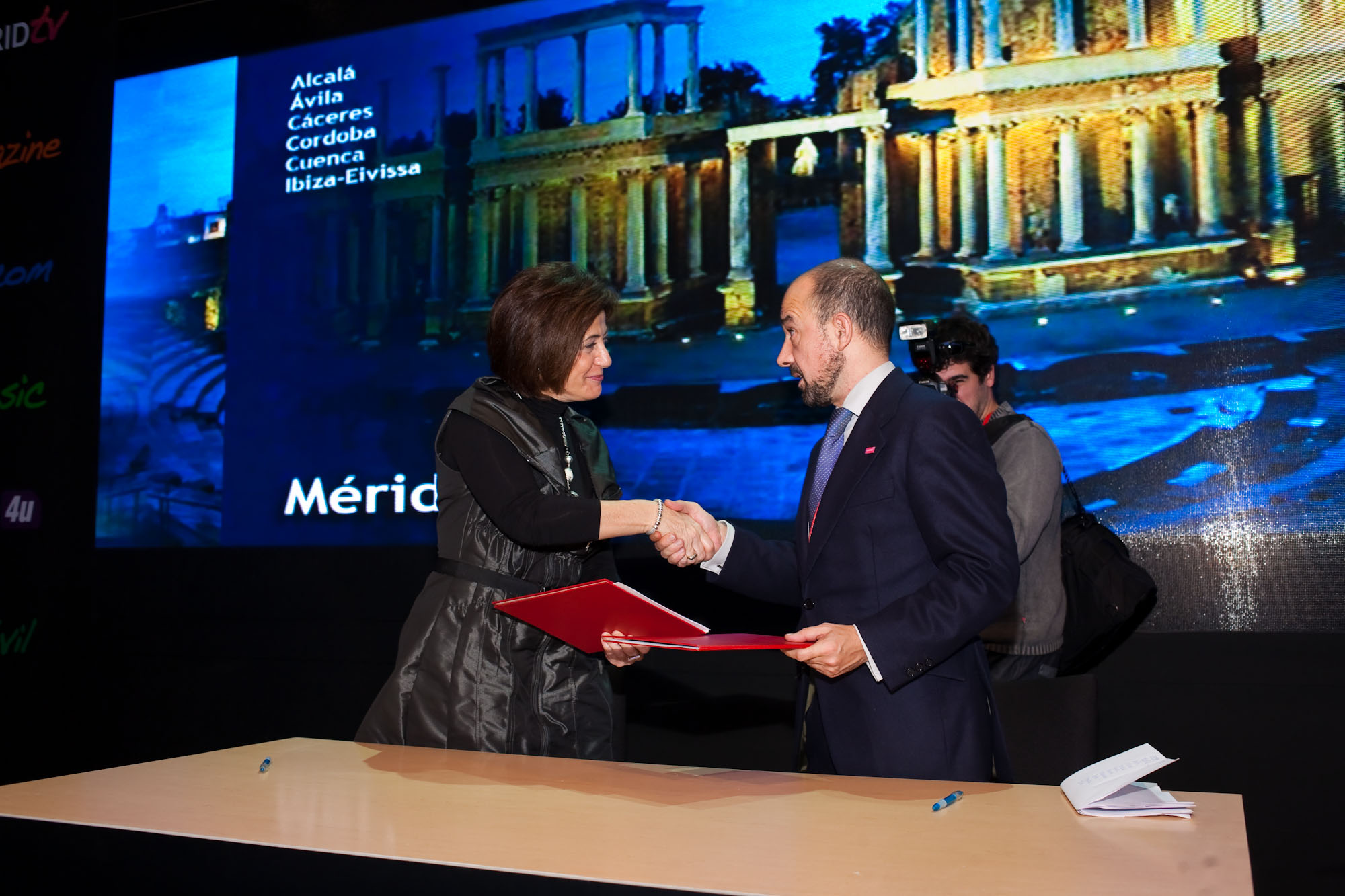 El delegado del Área de Economía y Empleo, Miguel Ángel Villanueva, y la presidenta del Grupo de Ciudades Patrimonio de la Humanidad de España y alcaldesa de Ibiza/Eivissa, Lurdes Costa, han firmado un acuerdo para llevar a cabo actuaciones conjuntas en materia turística, además del apoyo de este organismo a Madrid como ciudad candidata a los Juegos Olímpicos de 2016.
