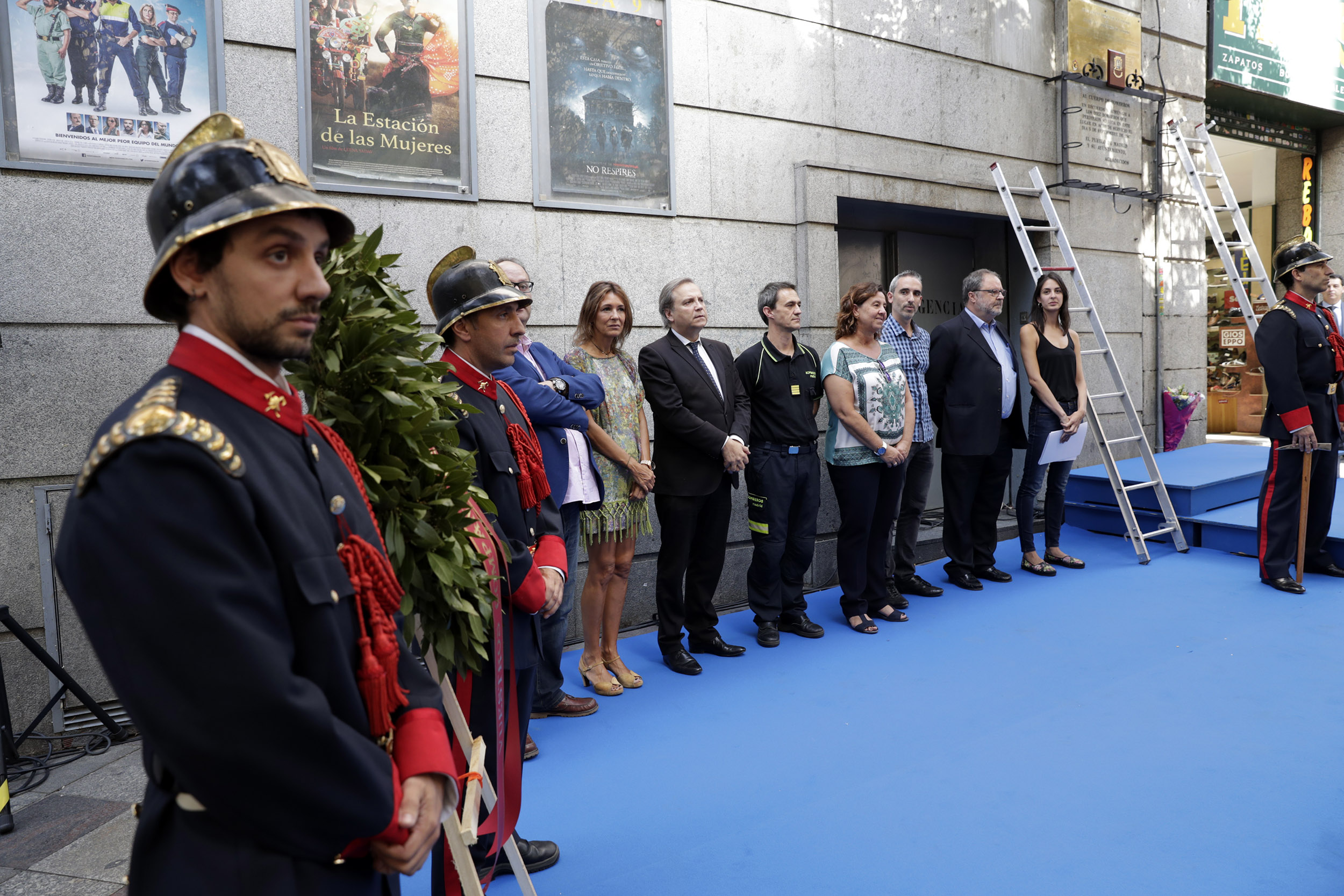 Distintos momentos del homenaje a los bomberos del Ayuntamiento de Madrid fallecidos en el incendio de Almacenes Arias