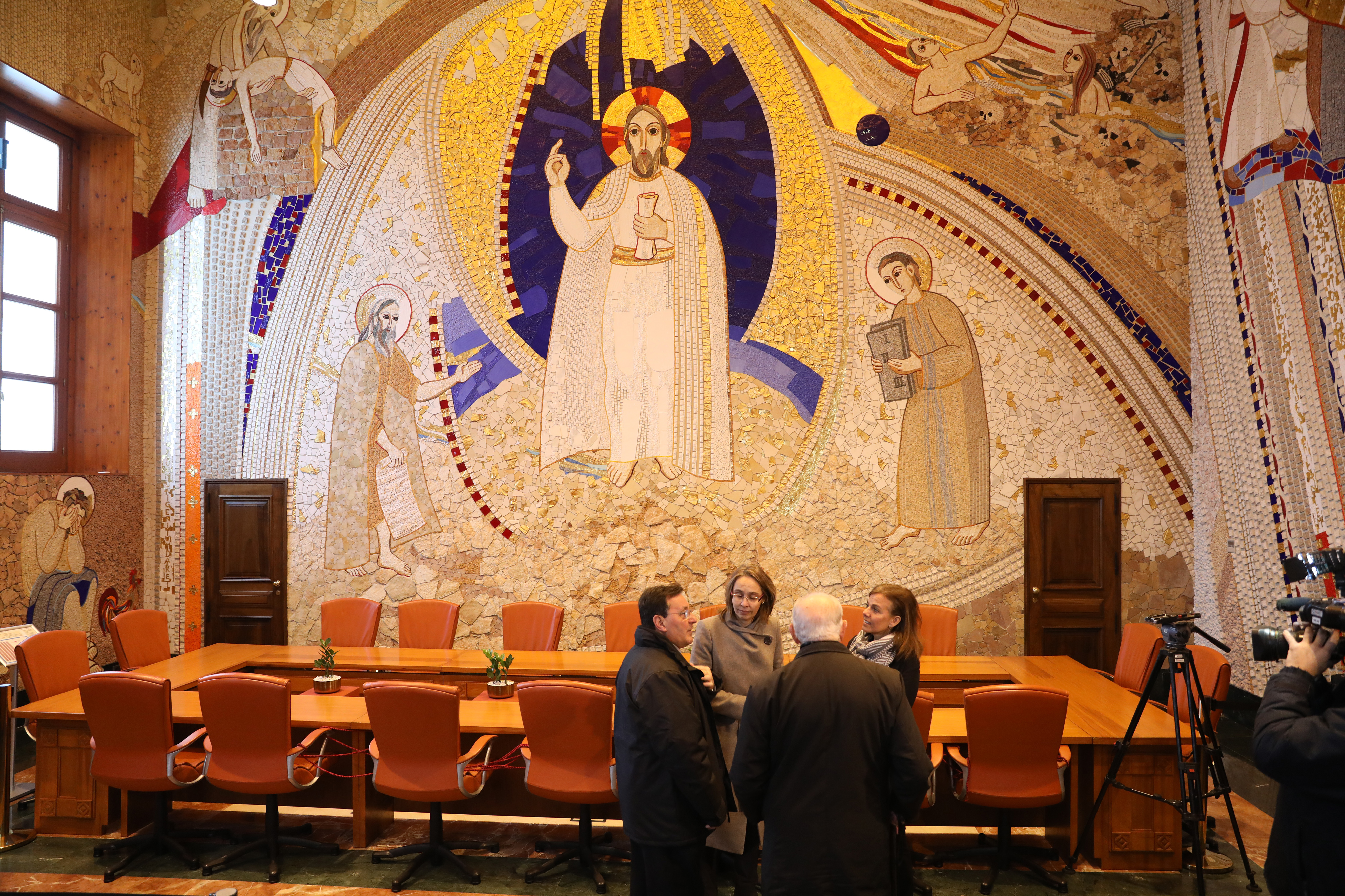 El recorrido por este museo comienza con las estancias de la catedral, la Sala Capitular y la Sacristía Mayor, decoradas con modernos mosaicos del sacerdote esloveno de la Compañía de Jesús, P. Marko I. Rupnik, en las que se exponen diversos objetos sobre el origen y la historia de la Iglesia de Madrid.
