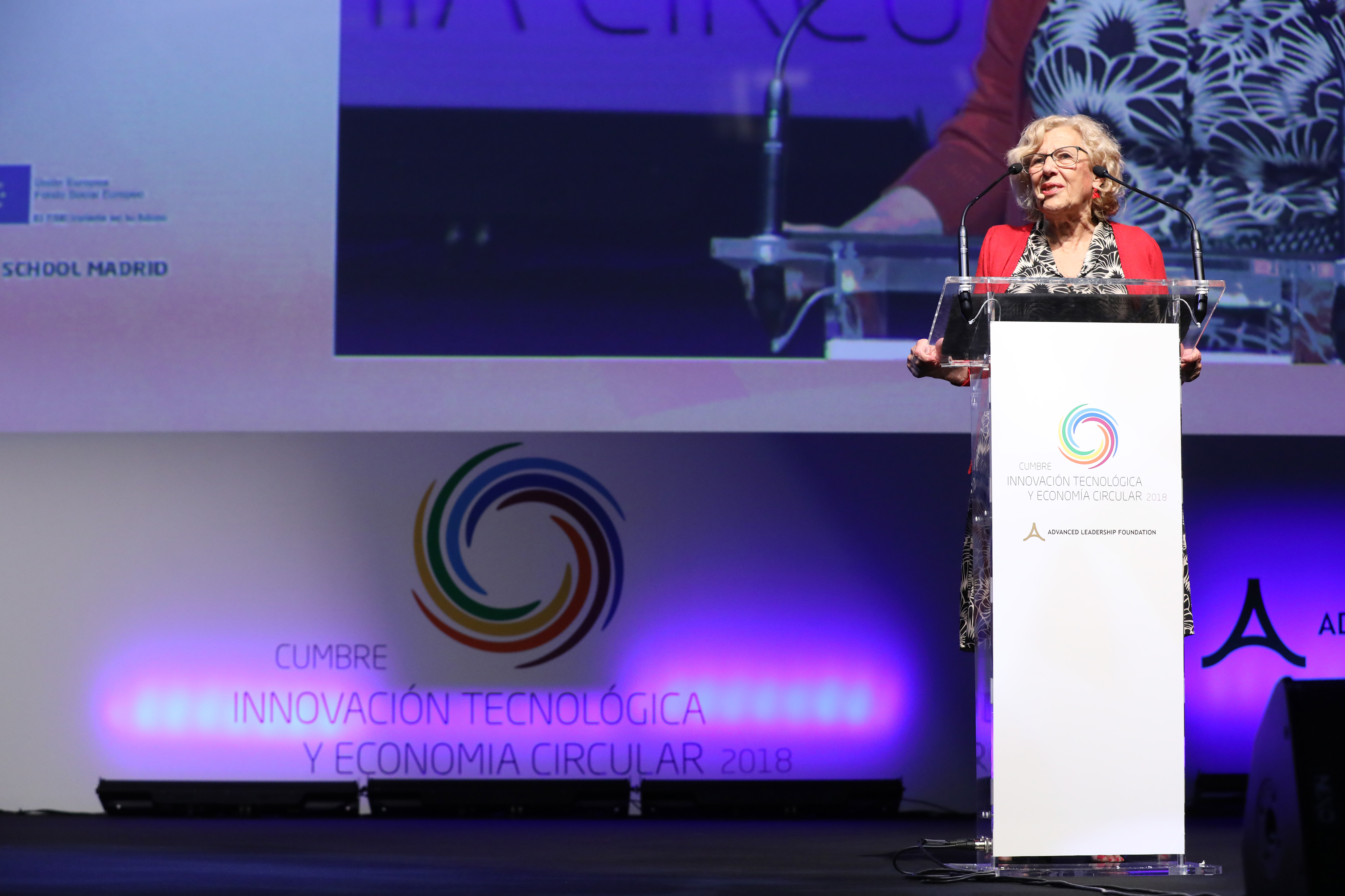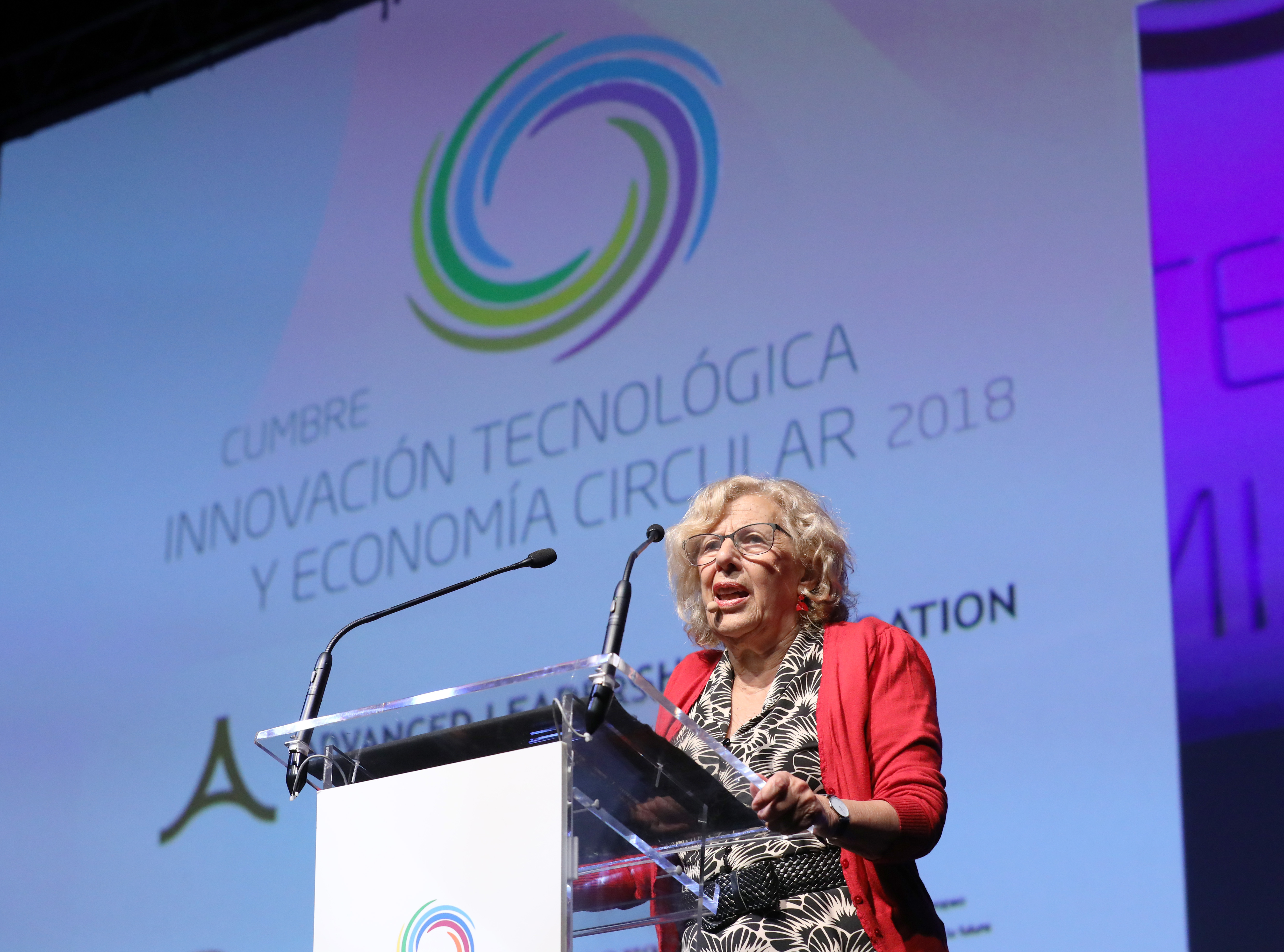 Carmena aseguró que una ciudad como Madrid tiene que moverse en base a dos puntales, que son, en sus palabras, “las bases estructurales de la innovación y economía circular”.