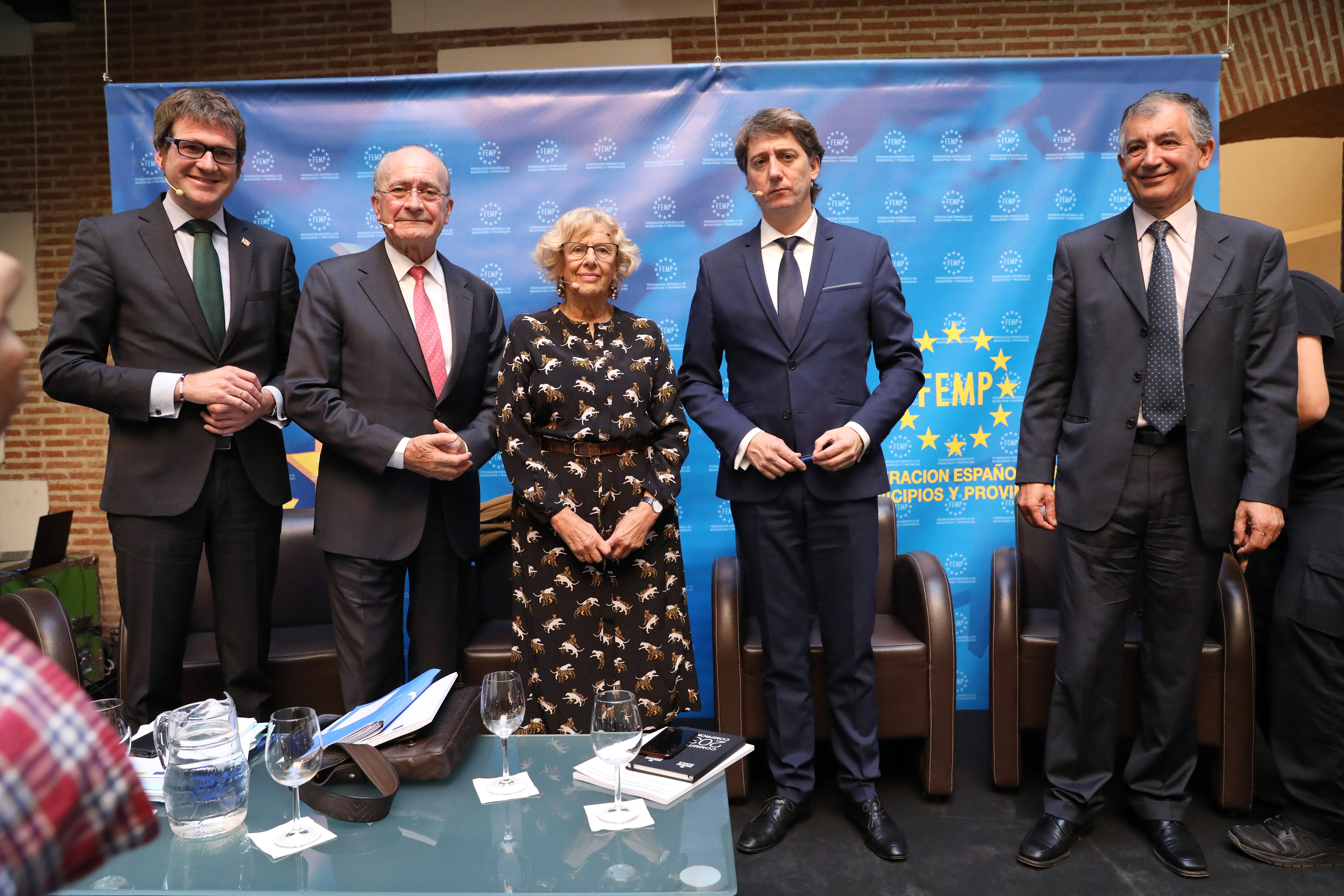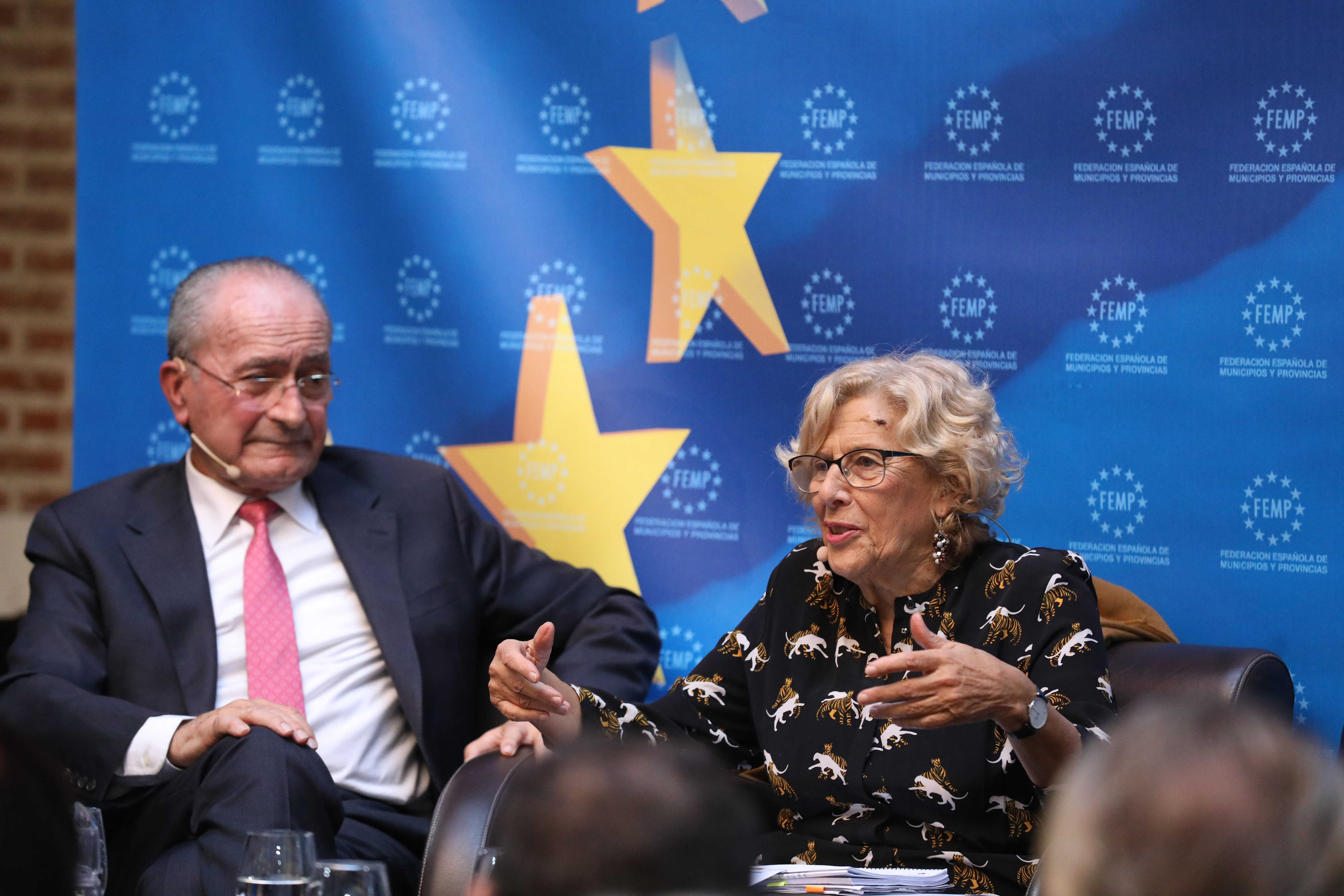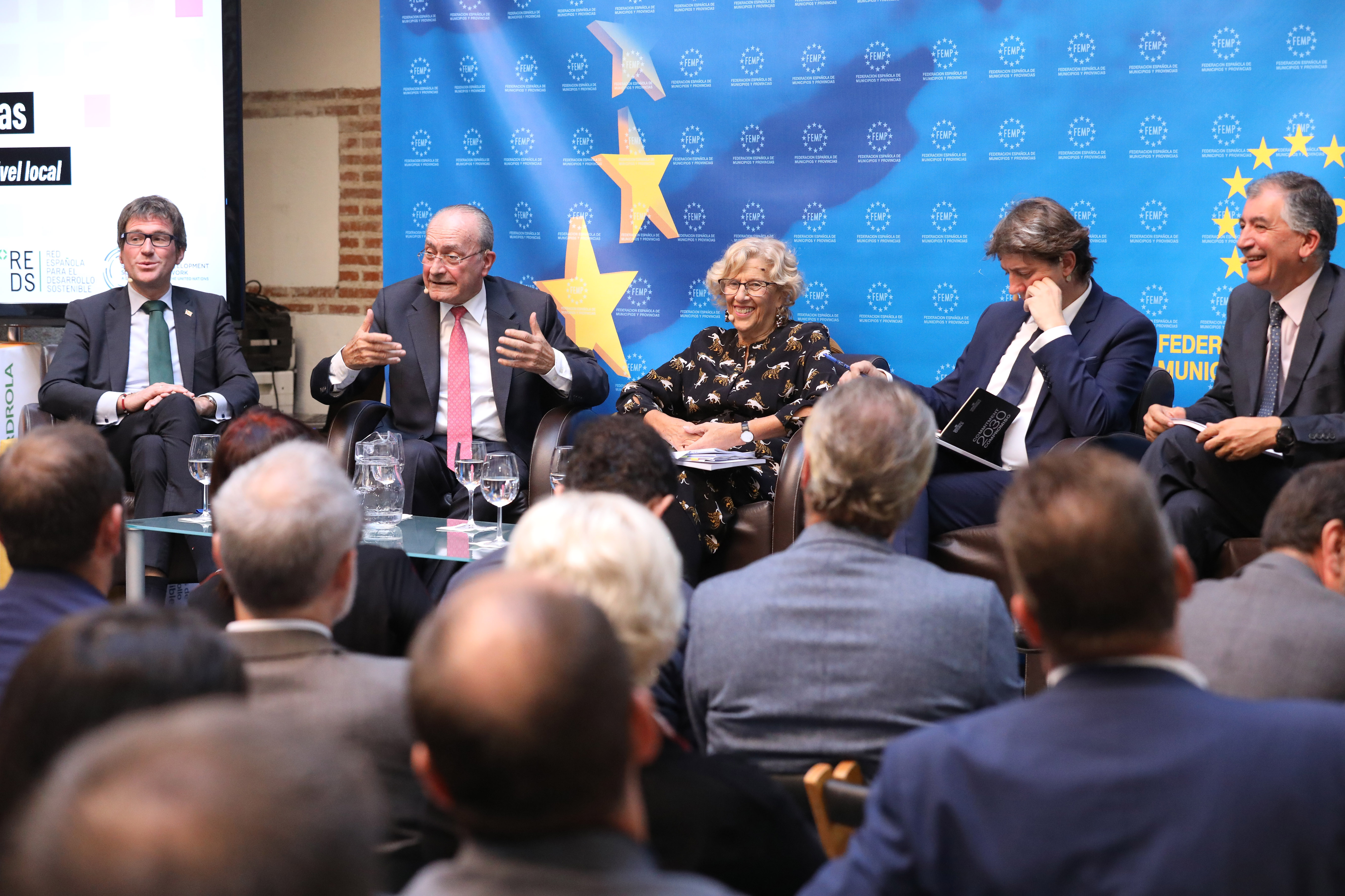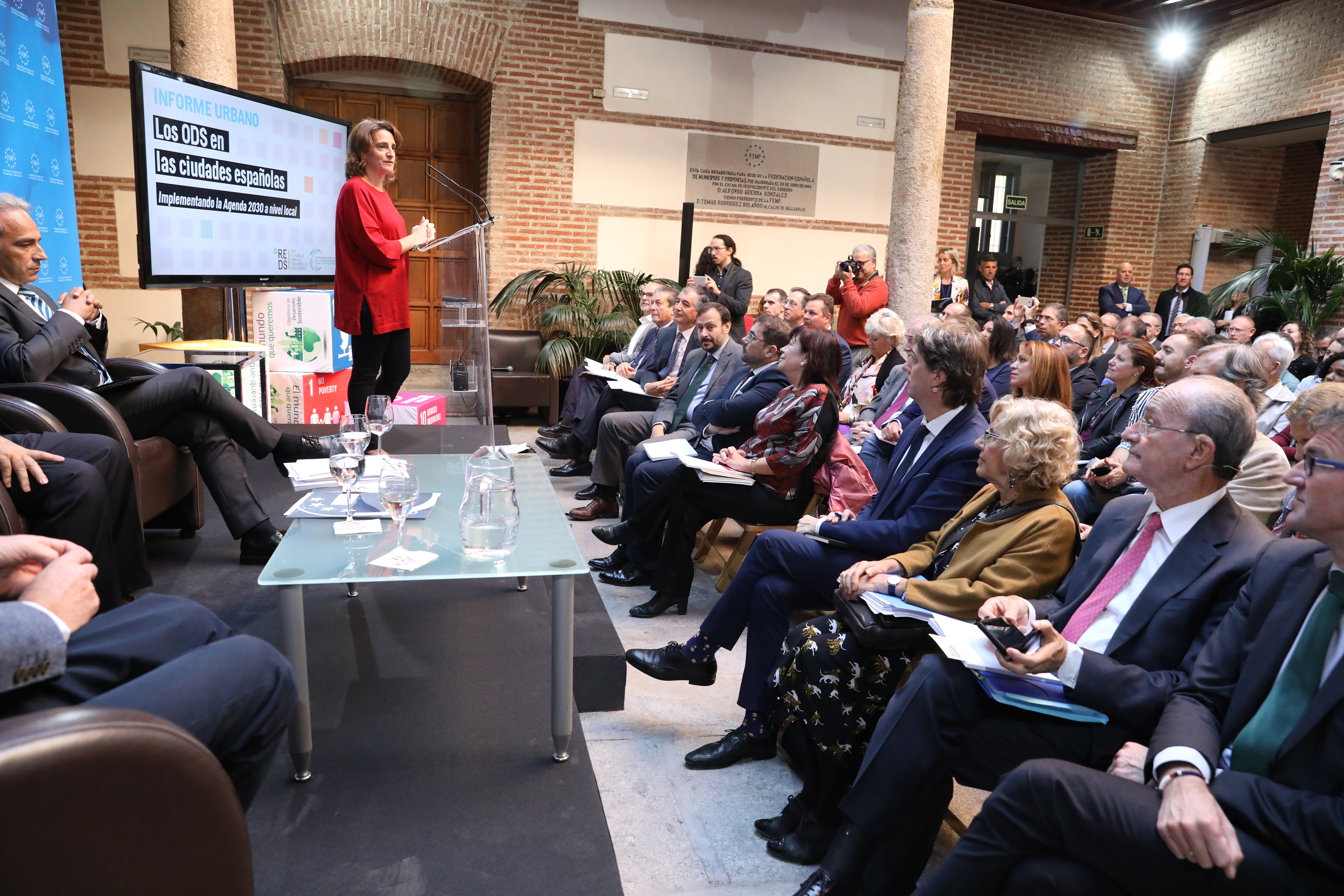 - Junto al alcalde de Vitoria, Gorka Urtaran; el alcalde de Soria, Carlos Martínez Mínguez y el de Málaga, Francisco de la Torre, Carmena ha participado en el acto ‘Los ODS en 100 ciudades españolas’, organizado por la Red Española para el Desarrollo Sostenible, REDS