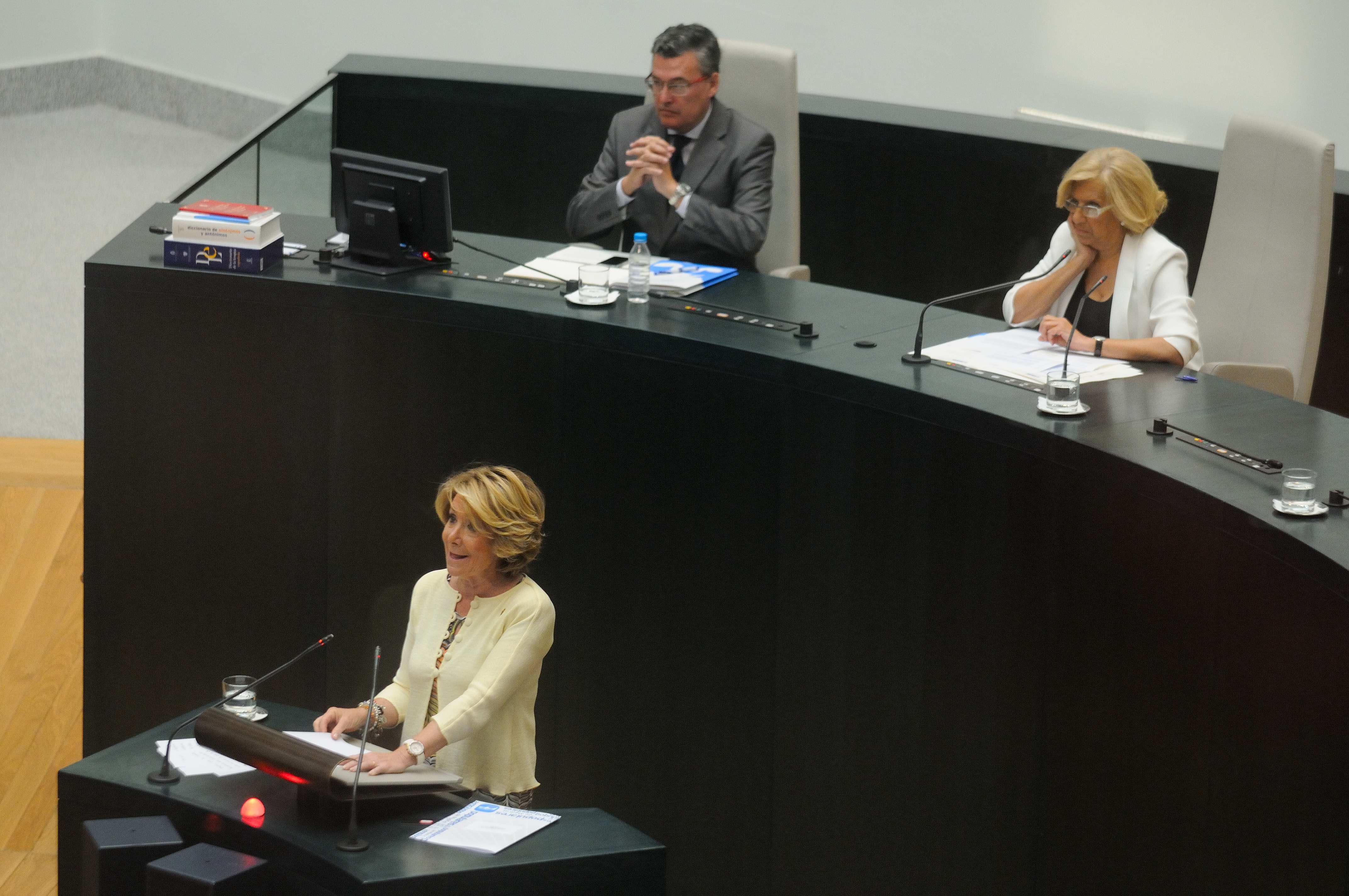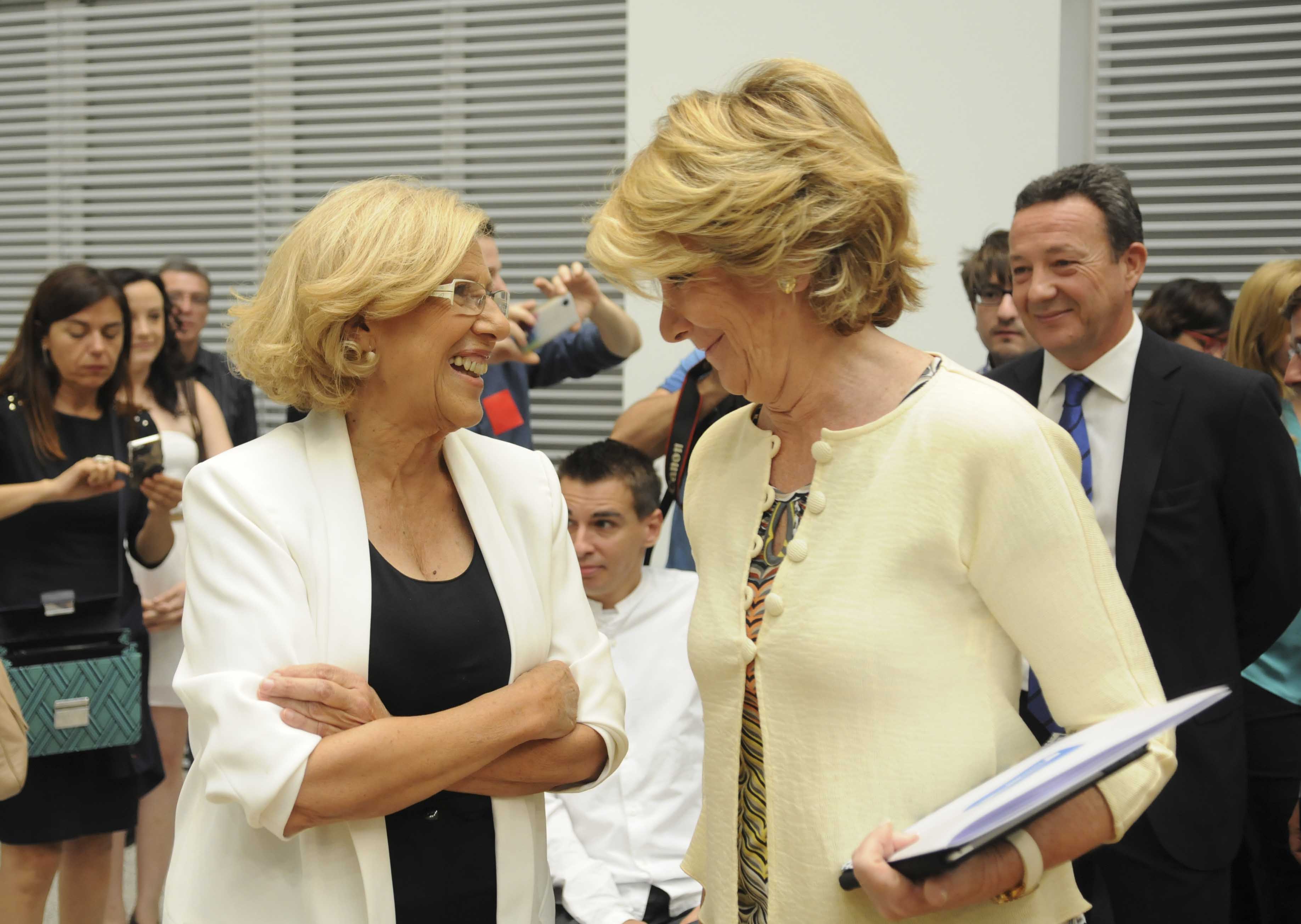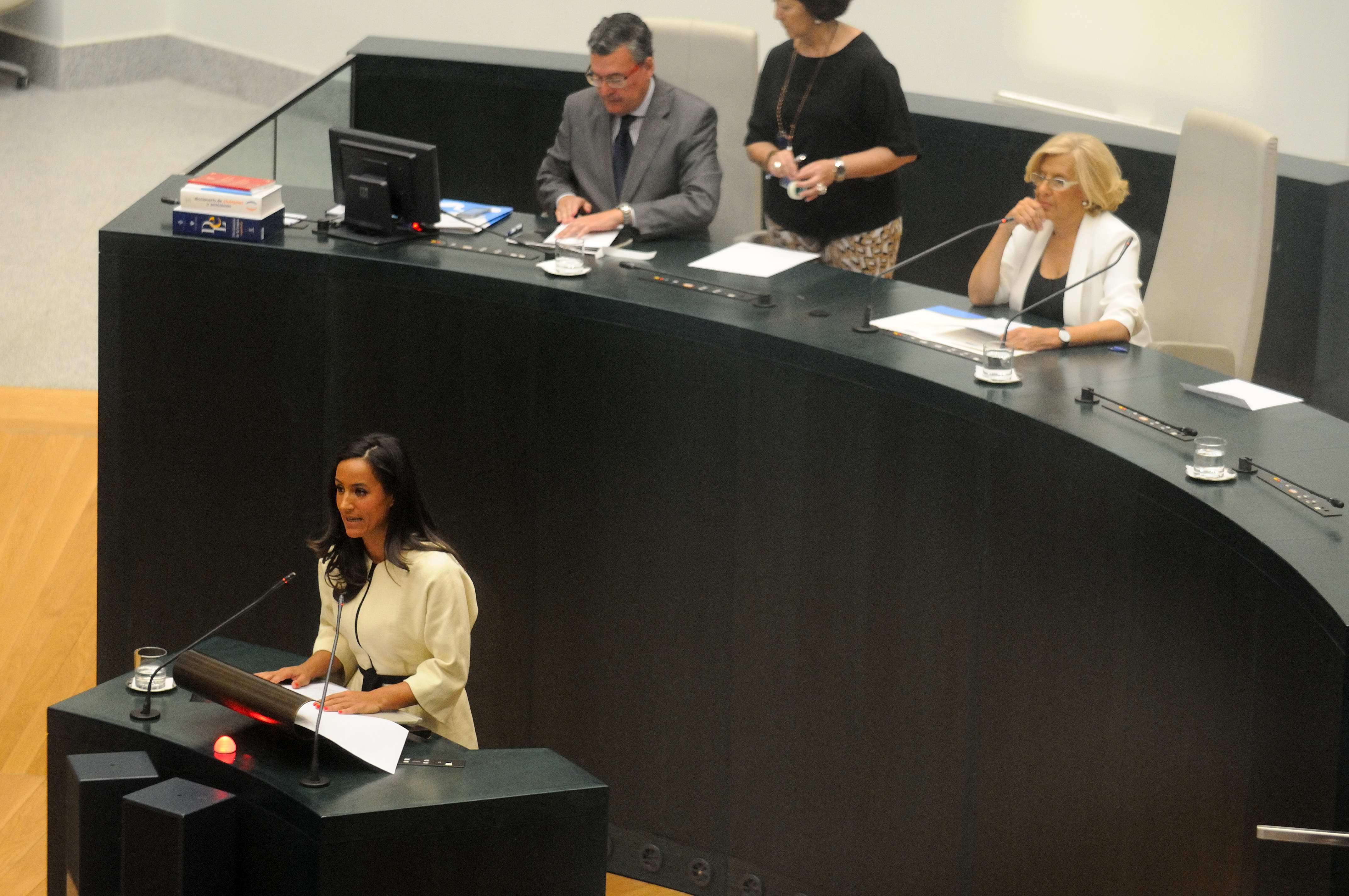 Manuela Carmena ha sido proclamada nueva alcaldesa de Madrid, con 29 votos, que representa la mayoría absoluta, en un Pleno que ha visto renovada gran parte de sus 57 concejales, con la entrada de dos nuevas formaciones políticas (Ahora Madrid y Ciudadanos) y las nuevas caras de los dos partidos tradicionales (PP y PSOE). Todos las portavocías de estas formaciones se han estrenado hoy en el salón de plenos: Esperanza Aguirre (PP), Rita Maestre(Ahora Madrid), Antonio Miguel Carmona (PSOE) y Begoña Villacís (Ciudadanos). Su elección supone un cambio histórico en el Ayuntamiento de Madrid gobernado en los últimos 24 años por el Partido Popular. El Pleno de investidura ha arrancado a las 11 horas con la constitución de la Mesa de Edad, a cargo de la edil electa de mayor edad, Manuela Carmena, y la más joven, Rita Maestre, ambas de Ahora Madrid. Carmena ha tomado la palabra y ha dado la bienvenida a “todos los ciudadanos de Madrid”. Los 57 ediles han jurado o prometido sus cargos, algunos de ellos por exigencia o imperativo legal. La anécdota la han protagonizado, Guillermo Zapata y Pablo Carmona (Ahora Madrid), que han prometido el cargo añadiendo la coletilla ‘omnia sunt communia’, que significa “todo es común” o “todo es de todos”. A continuación los concejales han ido depositando la papeleta con su voto. El recuento ha dado 29 votos para Manuela Carmena, 20 de su formación, Ahora Madrid, y nueve del PSOE. La popular Esperanza Aguirre ha conseguido 21 votos, Begoña Villacís 7, y Antonio Miguel Carmona 0.
