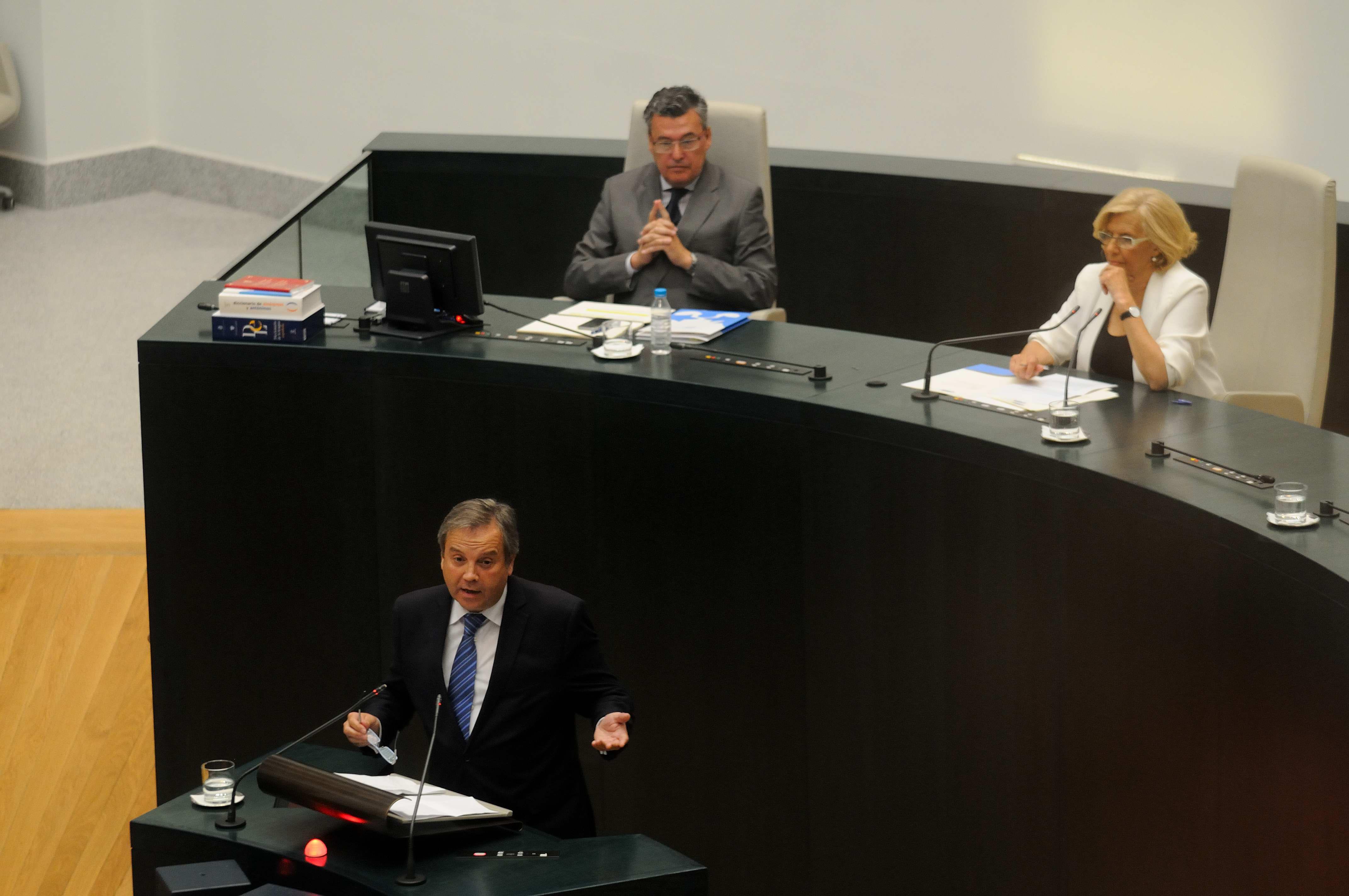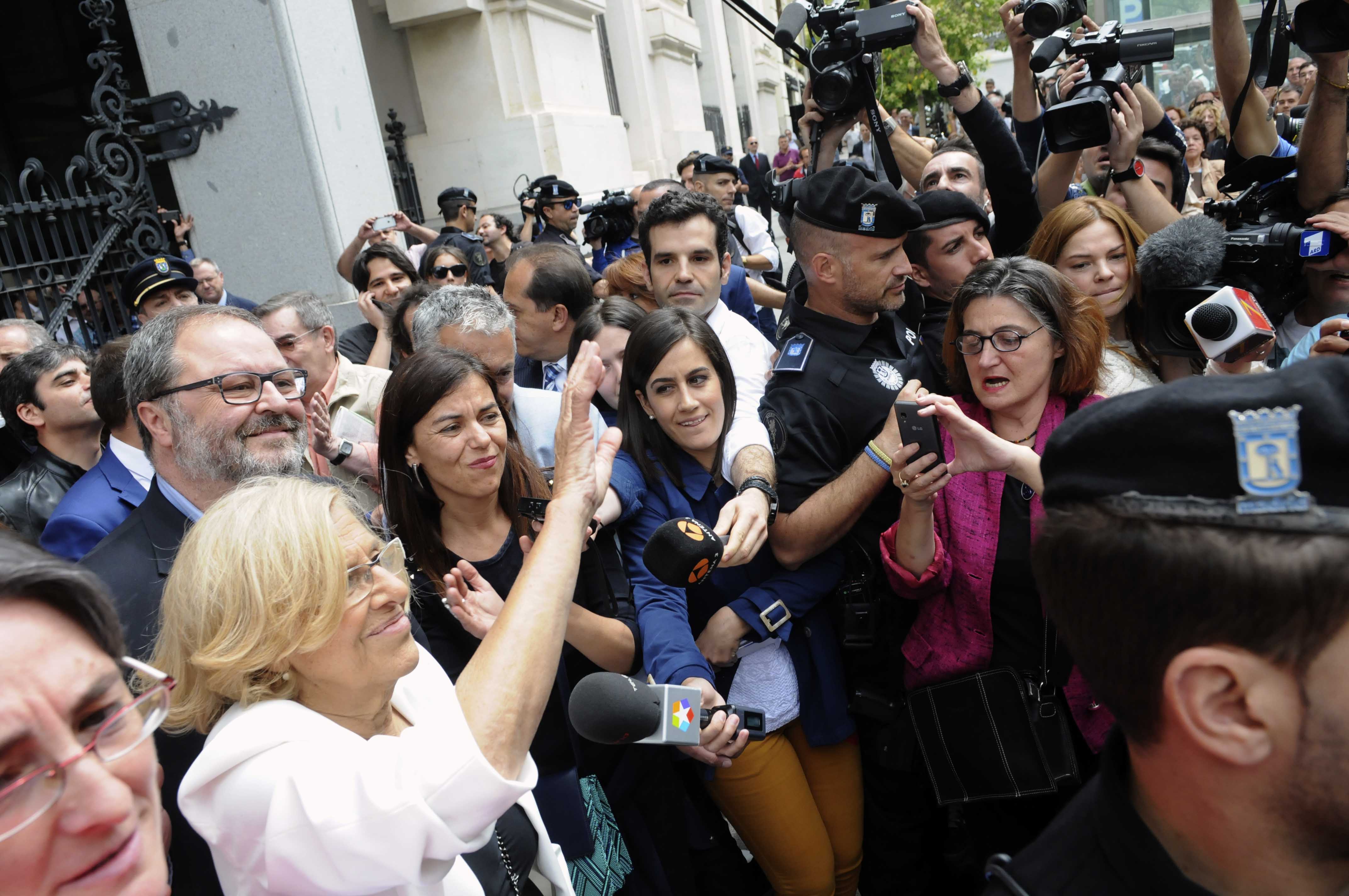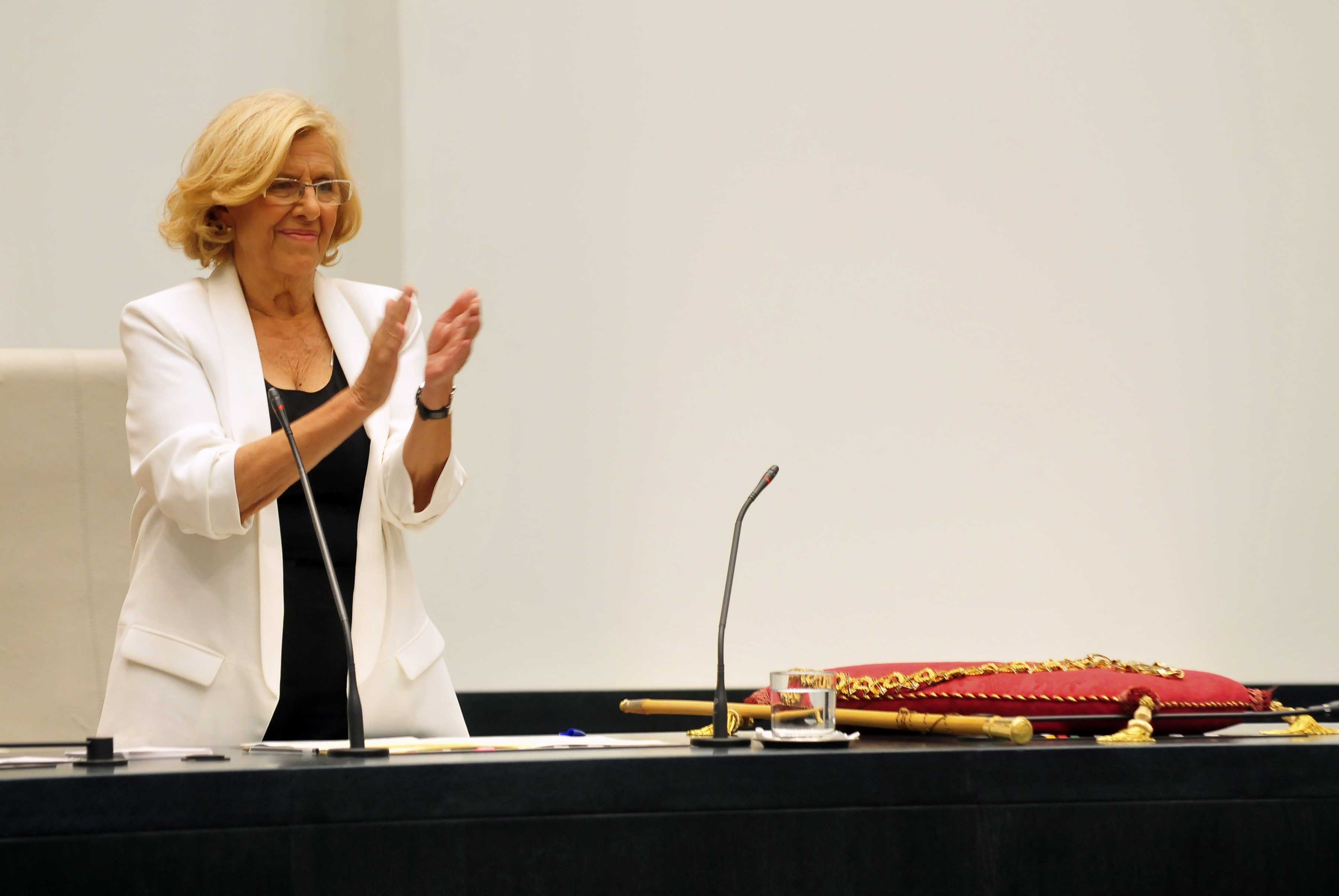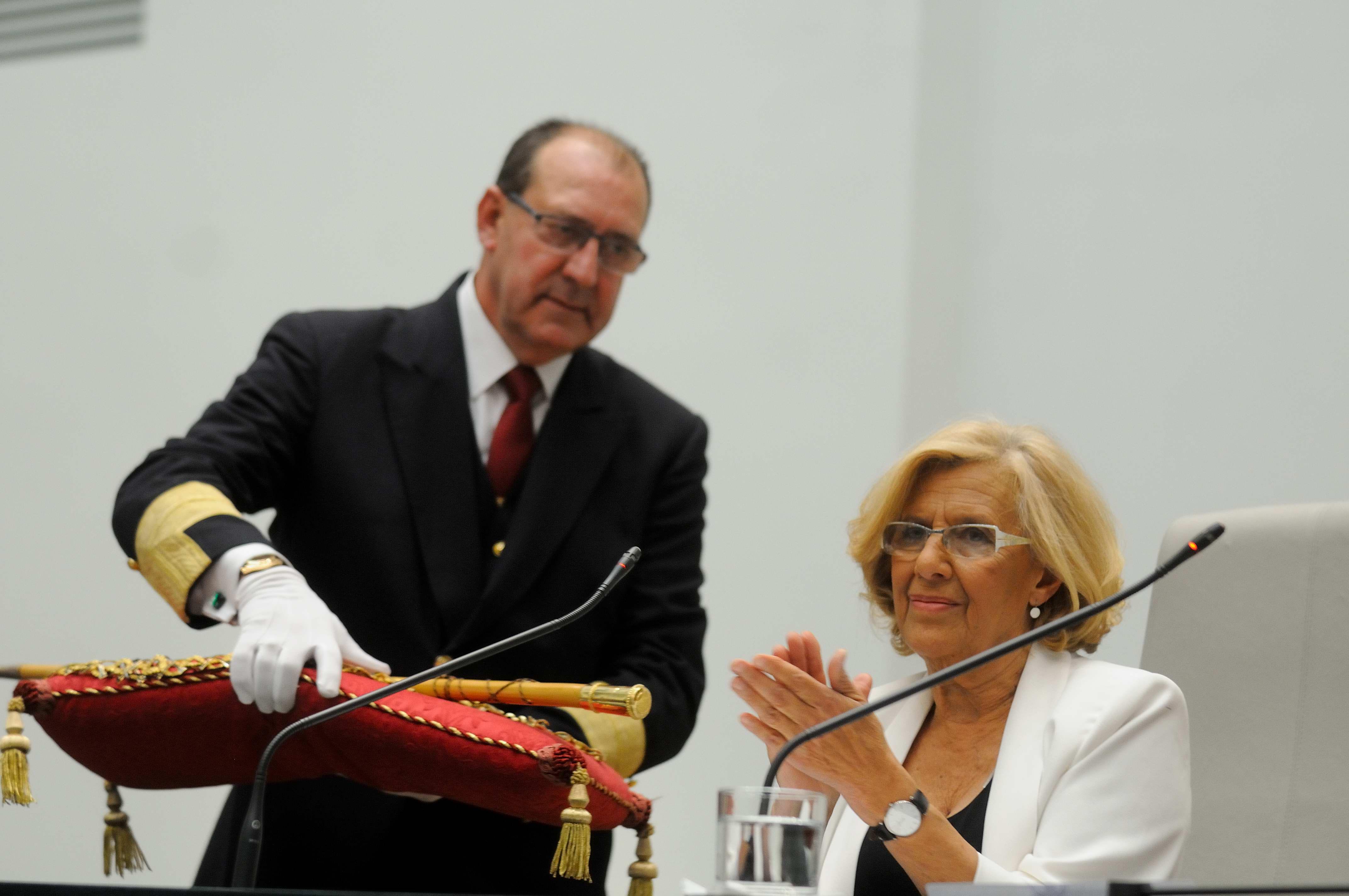 Las imágenes recogen diferentes momentos de la sesión plenaria en la que ha sido investida alcaldesa de Madrid Manuela Carmena