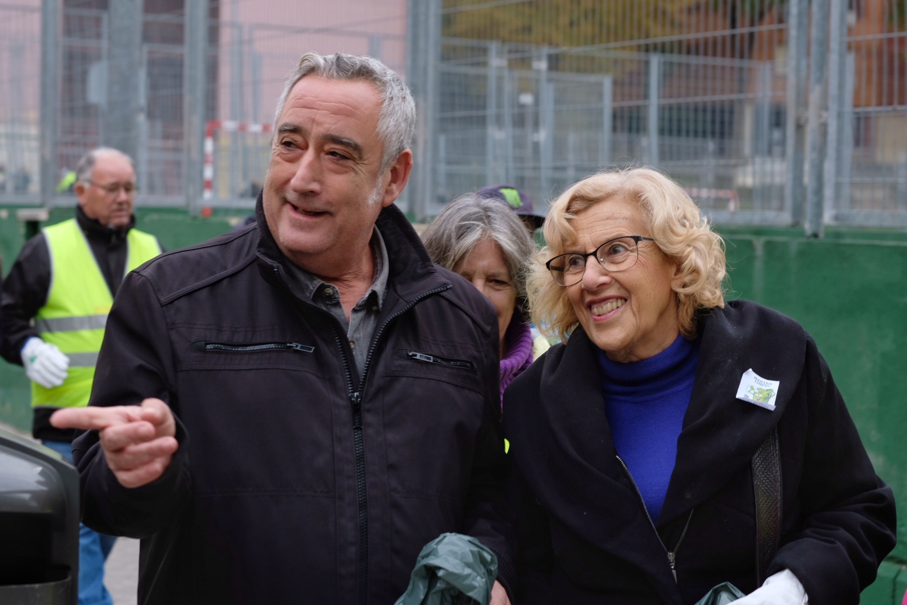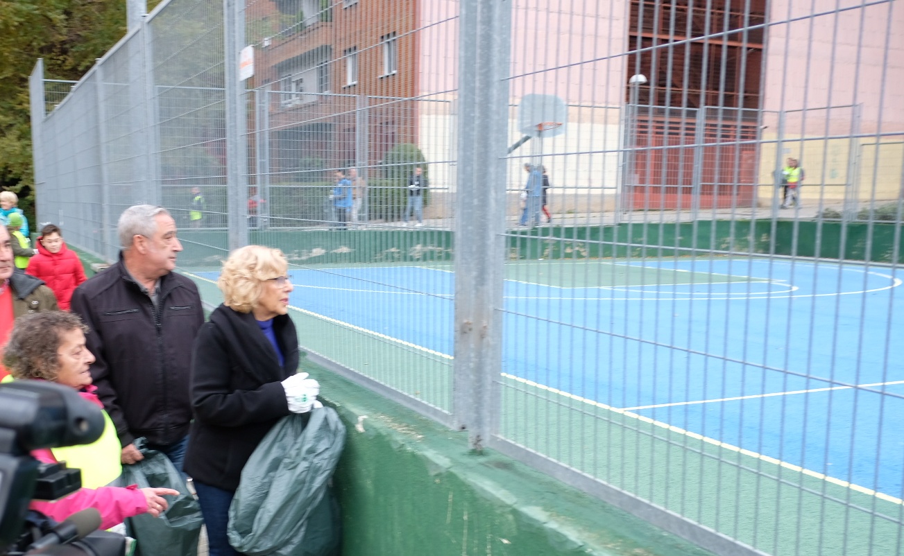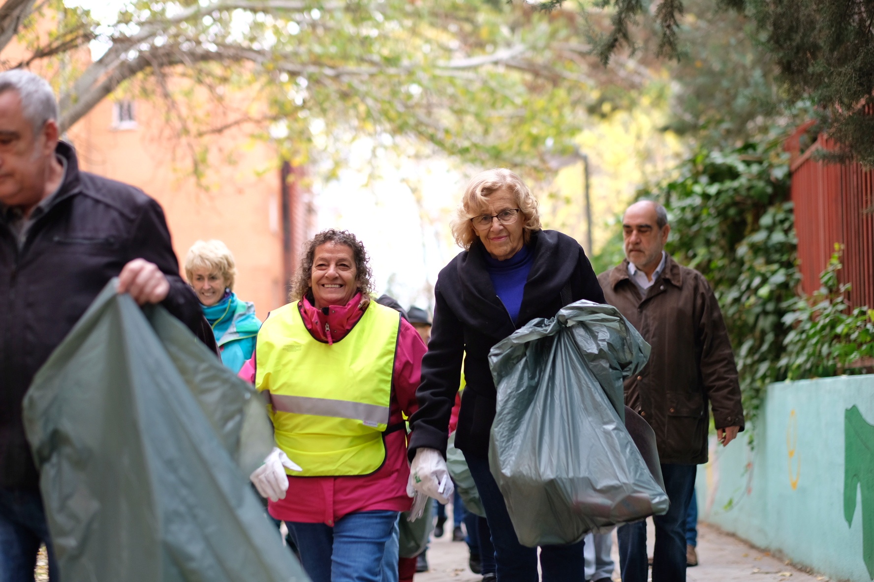 La alcaldesa de Madrid, Manuela Carmena, acompañada por Francisco Pérez Ramos, Concejal de los distritos Puente de Vallecas y Villa de Vallecas y el director general de Servicios de Limpieza y Residuos del Ayuntamiento, Víctor Manuel Sarabia, ha participado en la campaña de sensibilización “Mantén limpio tu barrio”, promovida por la Asociación de Vecinos Fontarrón, del distrito de Puente de Vallecas, donde junto a voluntarios y voluntarias ha recorrido varias calles del distrito, con el propósito de concienciar a toda la ciudadanía del barrio sobre la necesidad de mantener limpias sus calles y la correcta utilización de los contenedores de residuos.