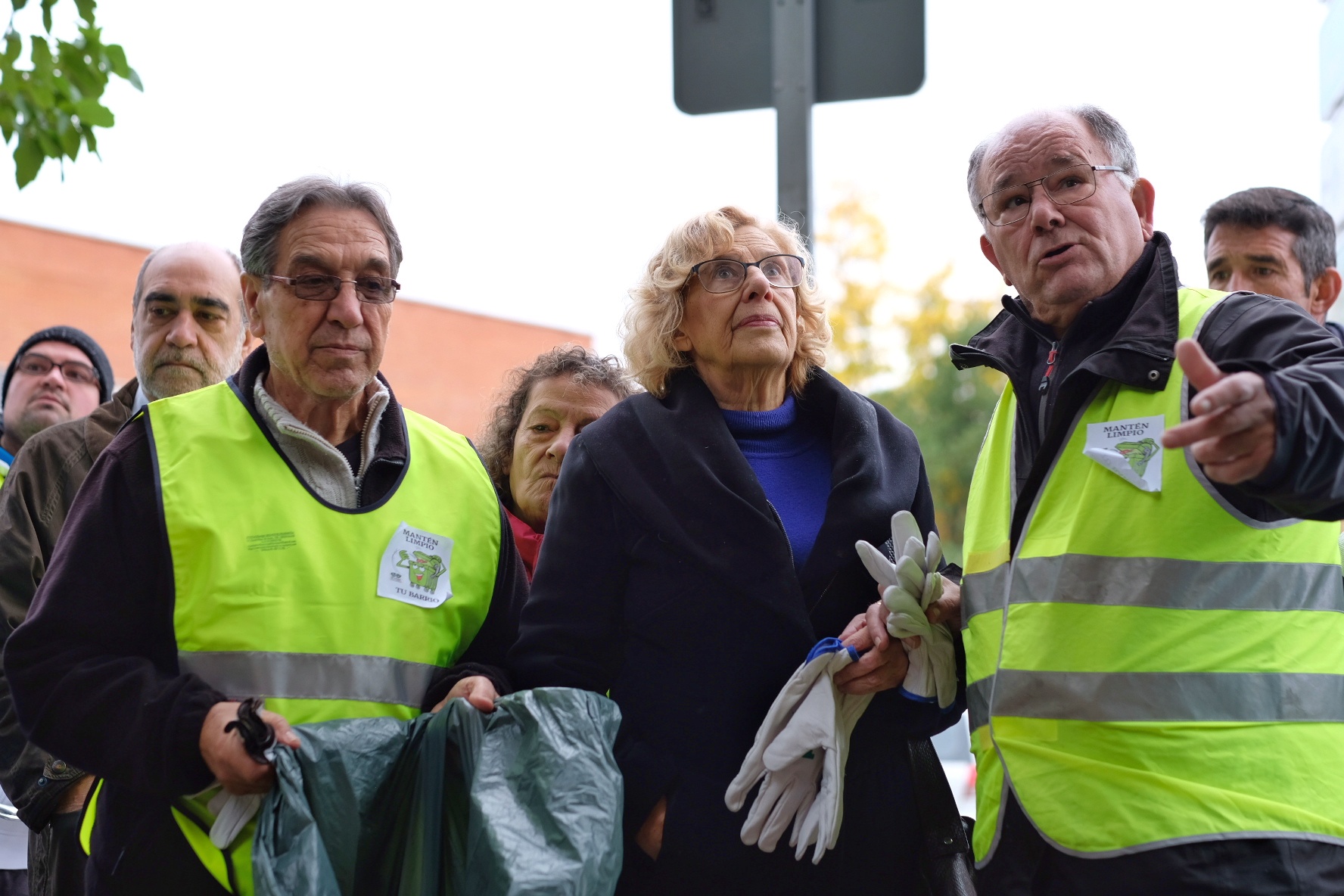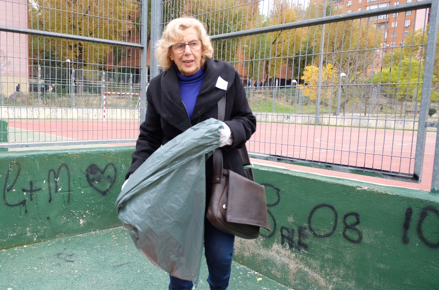Manuela Carmena ya colaboró anteriormente en tareas de limpieza como voluntaria con los vecinos y vecinas del distrito Barajas, con una iniciativa similar a 'Mantén limpio tu barrio' "para dar ejemplo". /