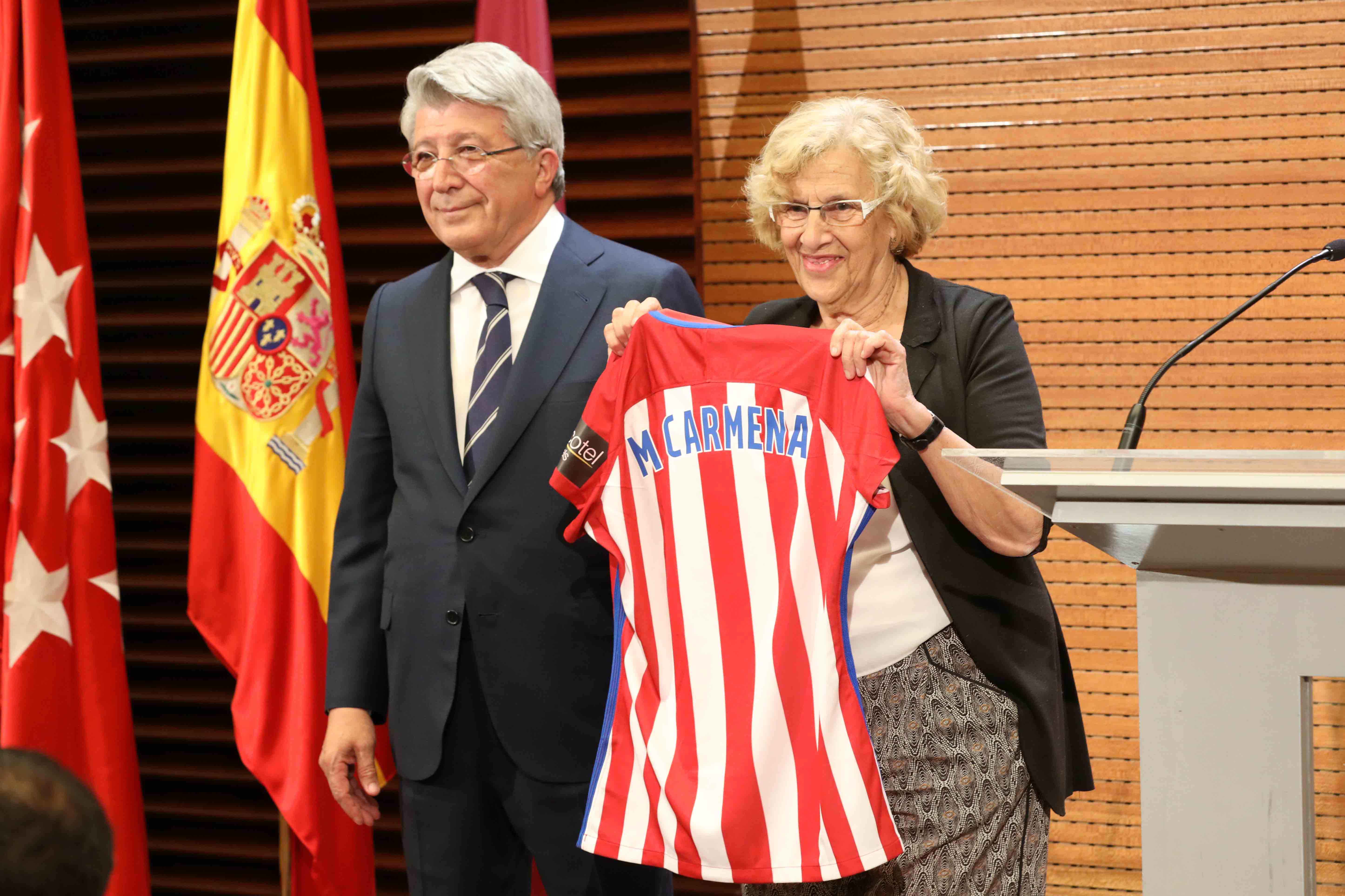 La alcaldesa de Madrid, Manuela Carmena, ha recibido hoy, martes 30 de mayo a las 17:00 horas, a las integrantes del Club Atlético de Madrid Femenino junto a Lola Romero, directora del equipo de fútbol, y Enrique Cerezo, presidente del Club Atlético de Madrid, tras haberse alzado, por primera vez en su historia, con el campeonato de Primera División de la Liga femenina de fútbol.