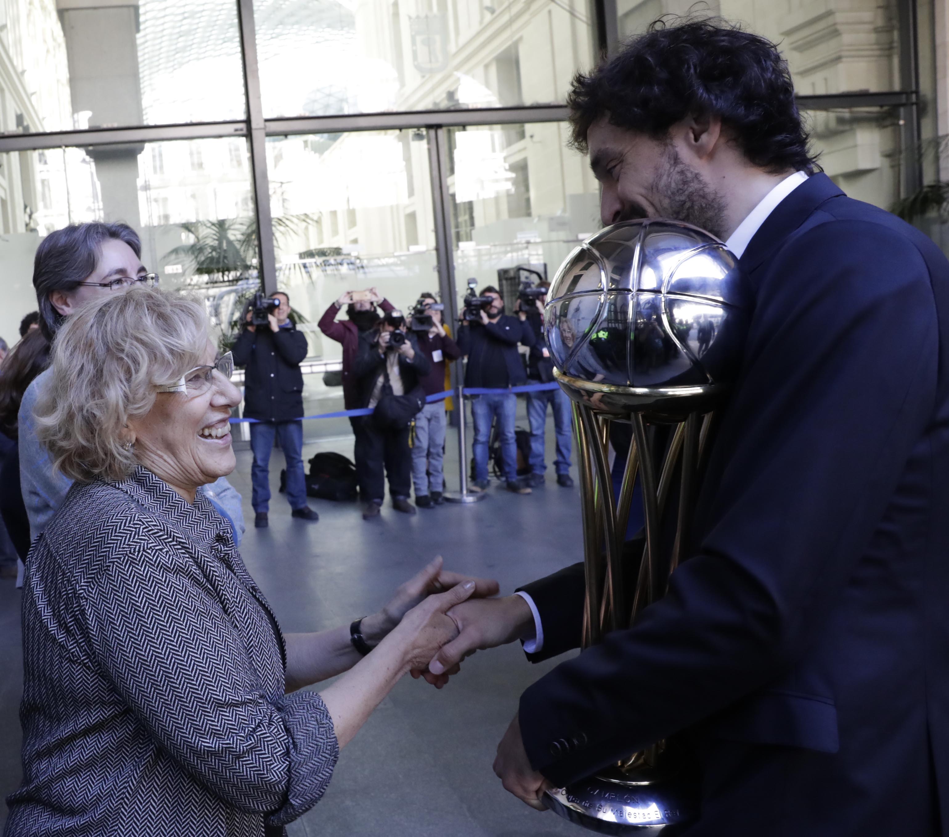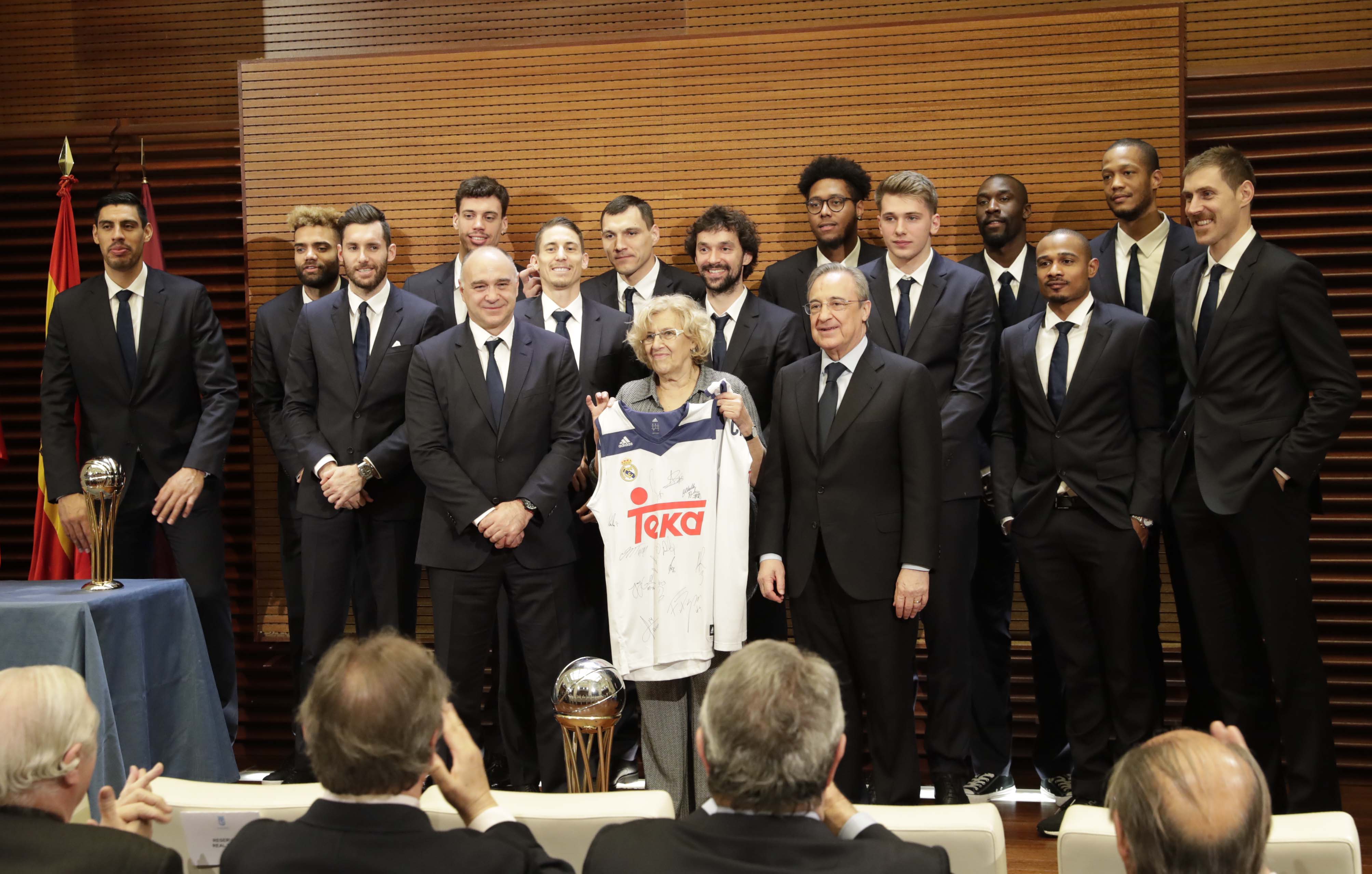Manuela Carmena recibe al Real Madrid de Baloncesto