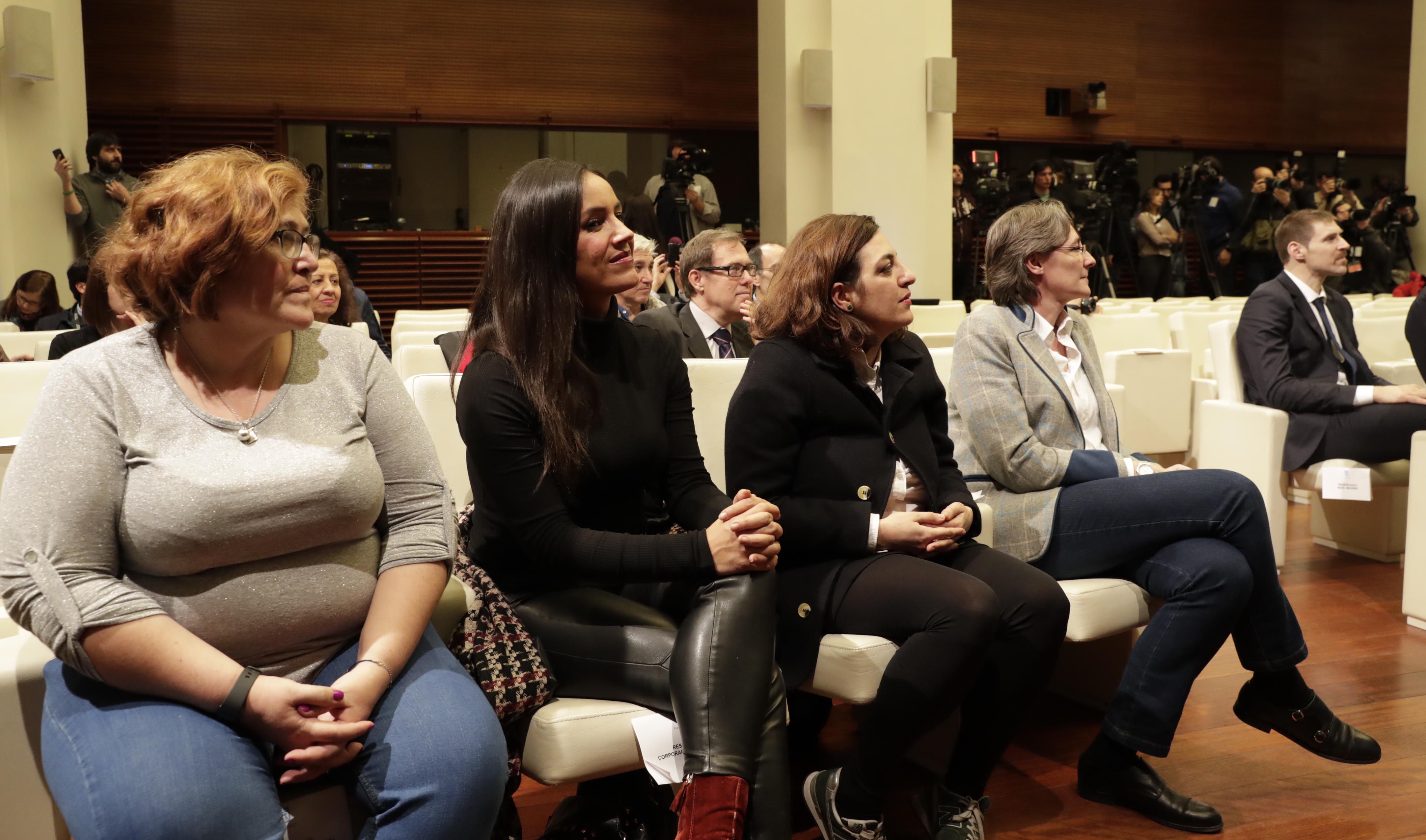 La alcaldesa de Madrid, Manuela Carmena, junto a la primera teniente de Alcalde, Marta Higueras, la concejala de Cultura, Celia Mayer, y representantes de los diferentes grupos políticos del Ayuntamiento, han recibido hoy en el Salón de Actos del Palacio de Cibeles a los jugadores del Real Madrid de Baloncesto con motivo de su triunfo en la final de la Copa del Rey, el cuarto consecutivo, y el quinto en seis años.