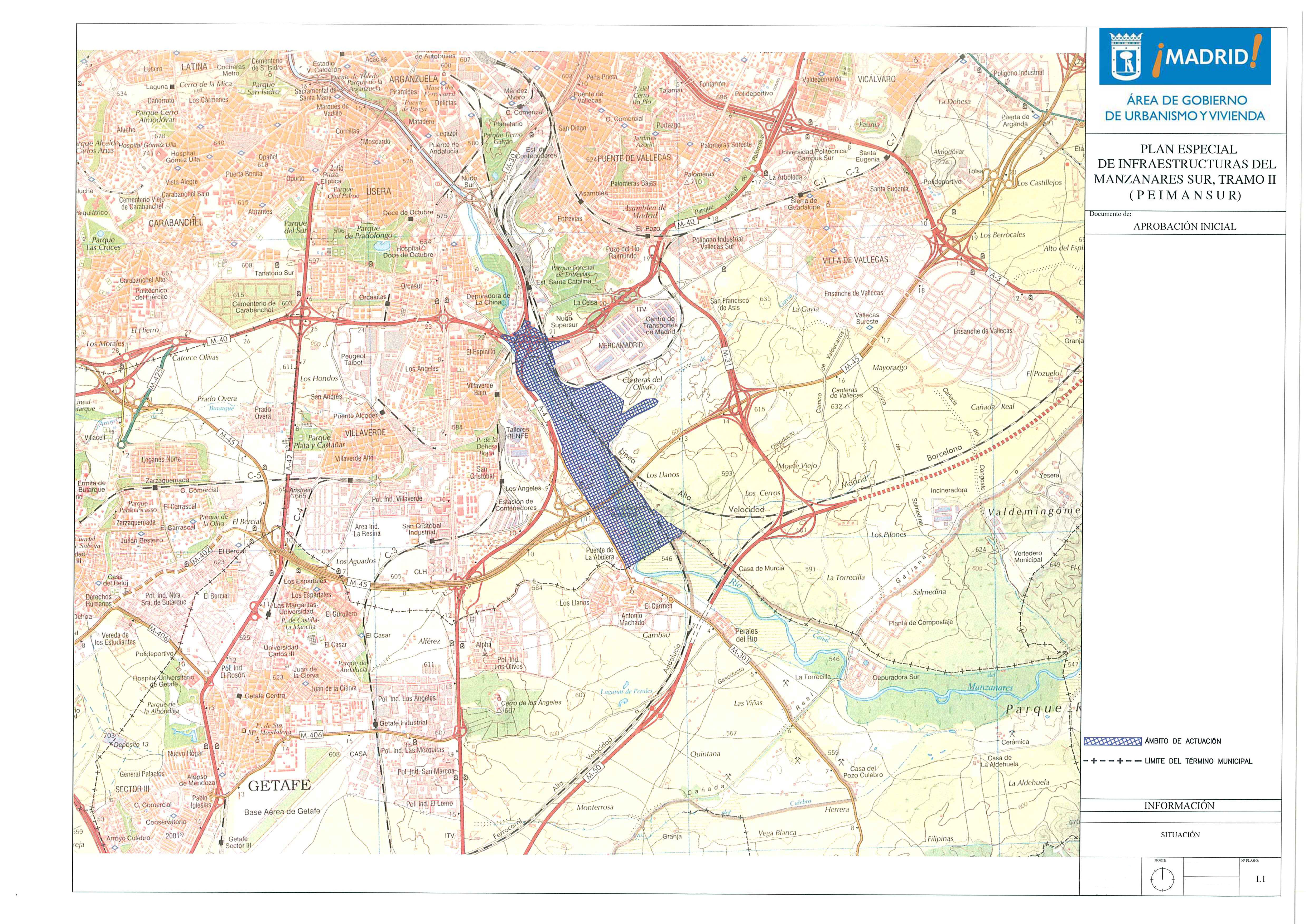 El Ayuntamiento borrará del paisaje del entorno del río Manzanares dieciséis kilómetros de líneas eléctricas de alta tensión, además de ordenar las infraestructuras de servicio que discurren desordenadamente por los terrenos residuales de ambas márgenes del río, entre el Nudo Sur y Getafe. Es el principal objetivo del Plan Especial Manzanares Sur-Tramo II, aprobado inicialmente esta mañana por la Junta de Gobierno de la Ciudad de Madrid, con un presupuesto de 343 millones de euros que financiarán las distintas entidades participantes.