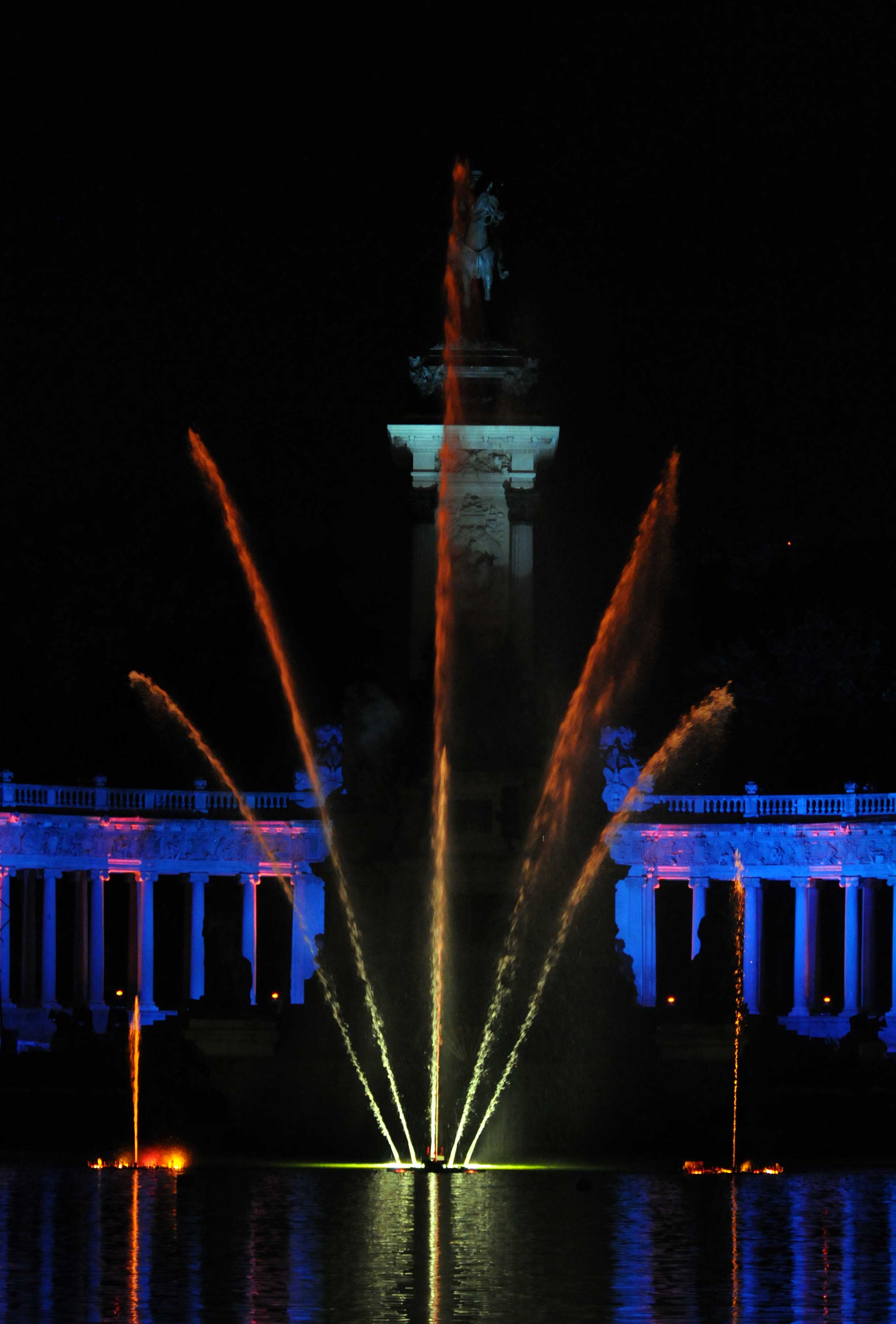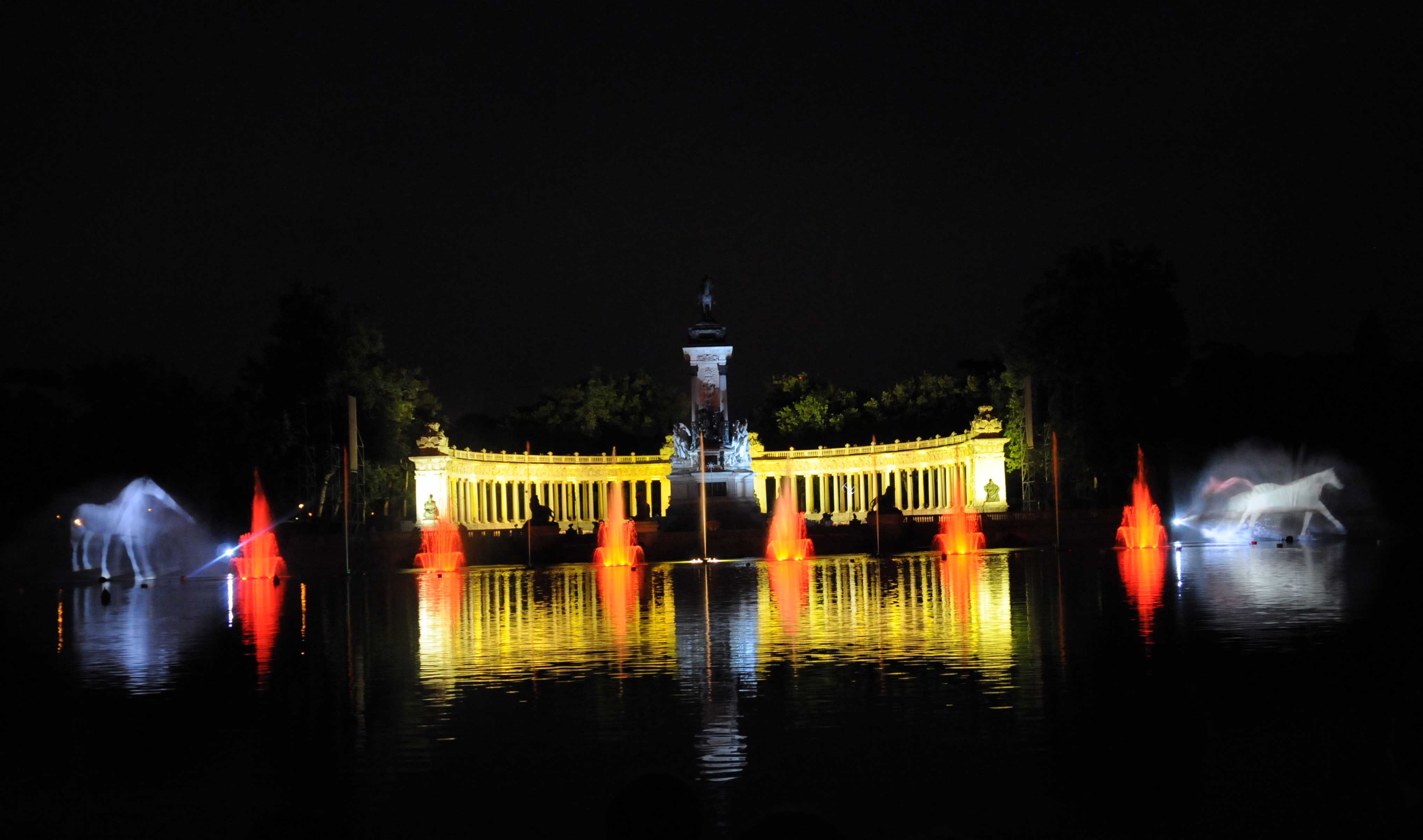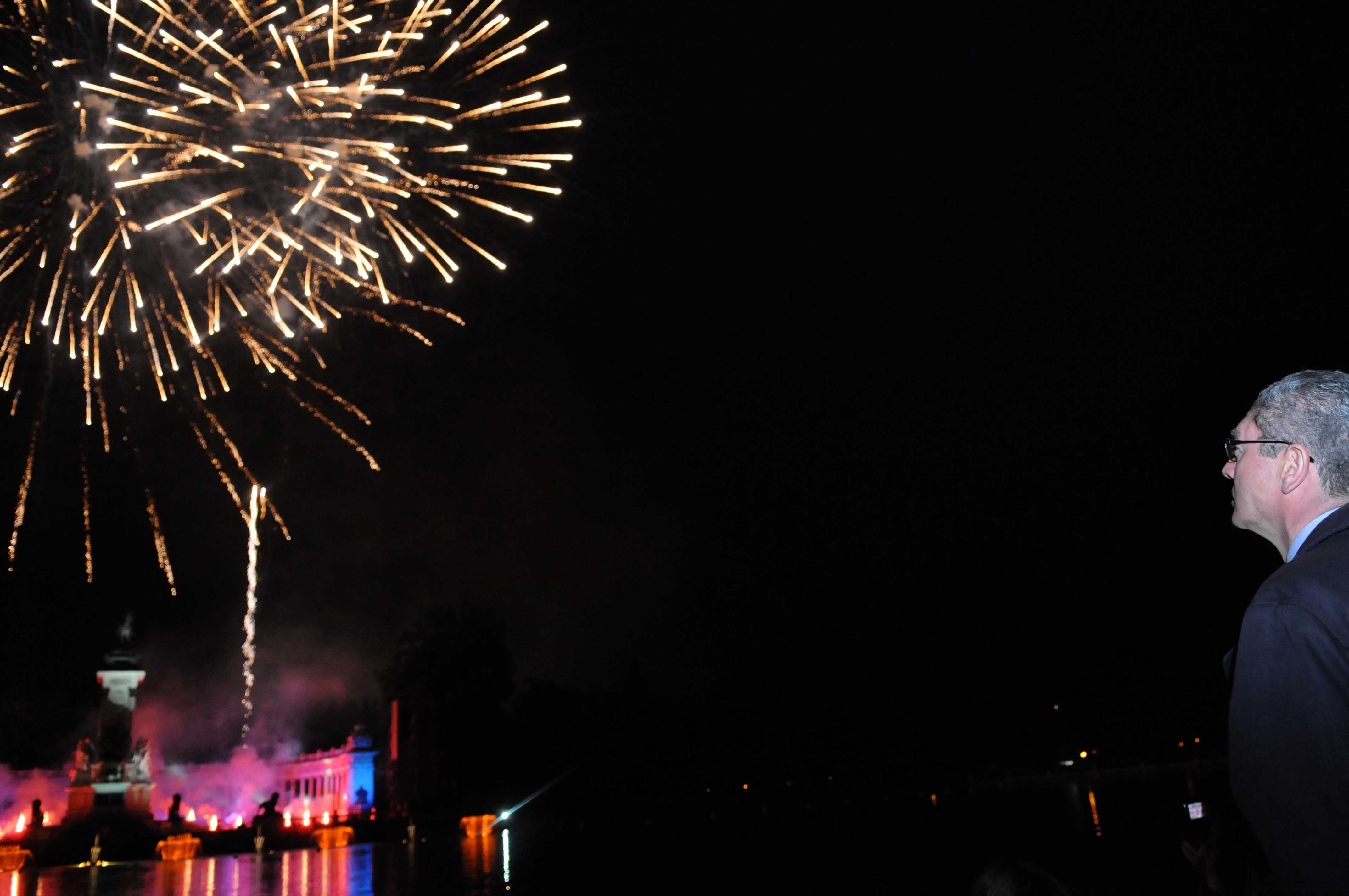 El estanque de El Retiro fue el escenario de un espectáculo de pirotecnia, luz y agua.
