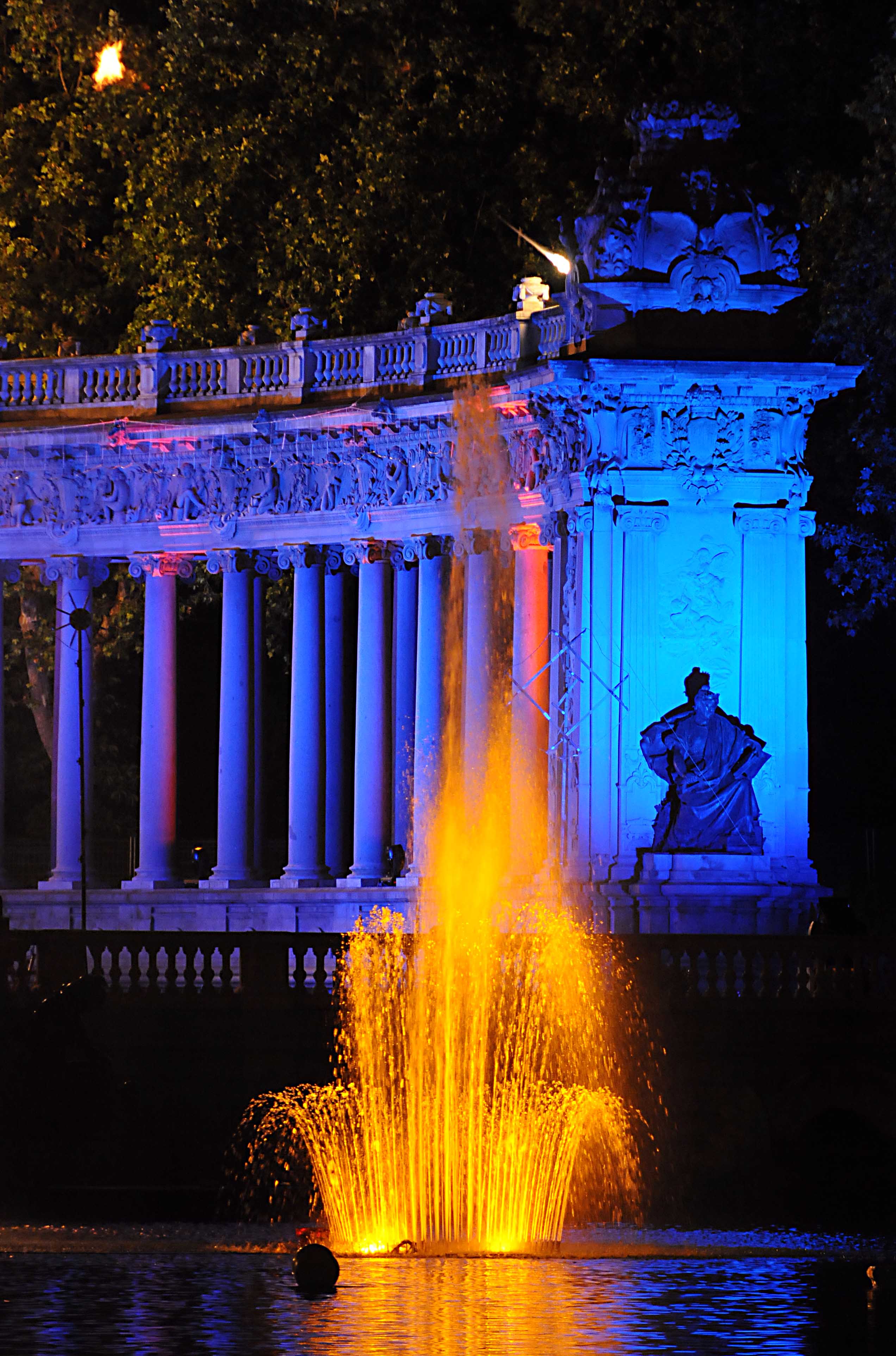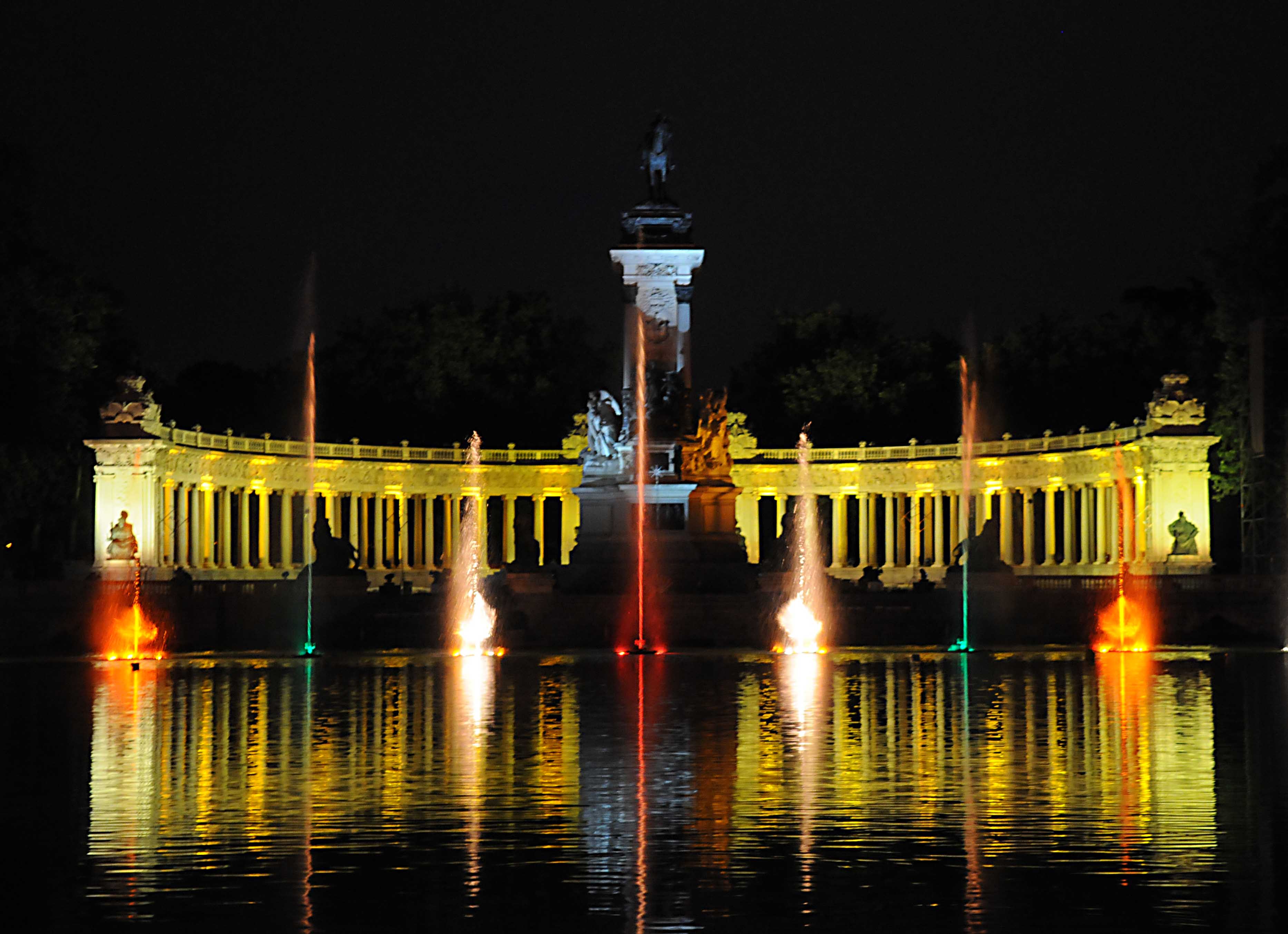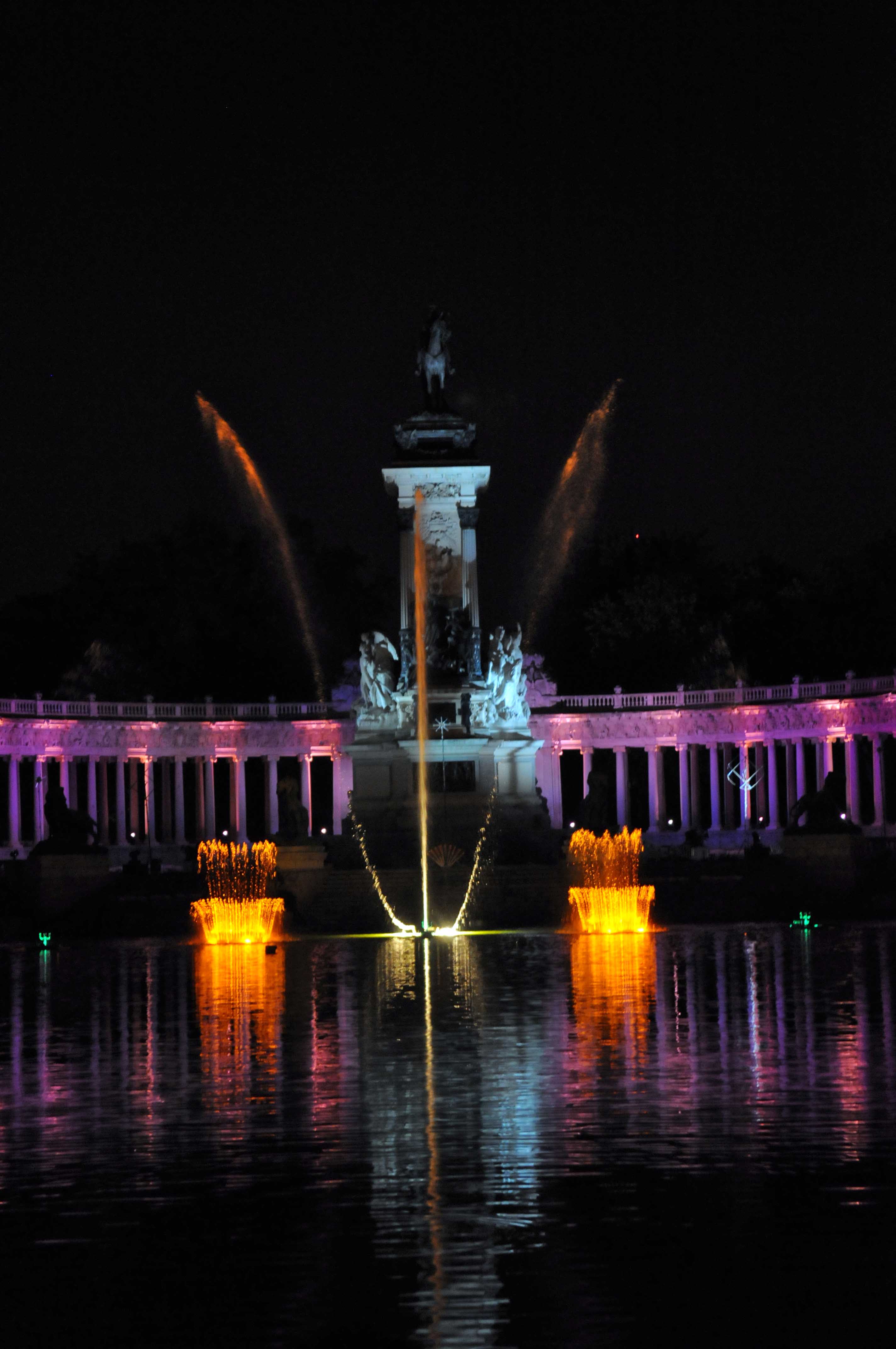 El estanque de El Retiro fue el escenario de un espectáculo de pirotecnia, luz y agua.