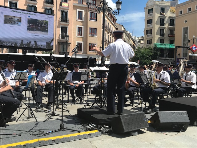 La delegada del Área de Equidad, Derechos Sociales y Empleo, Marta Higueras, ha asistido esta mañana al concierto “ 1 minuto de música contra el cáncer”, organizado por la Asociación Española contra el Cáncer (AECC) en la Plaza de Isabel II, dentro de los actos programados en el día de la cuestación.