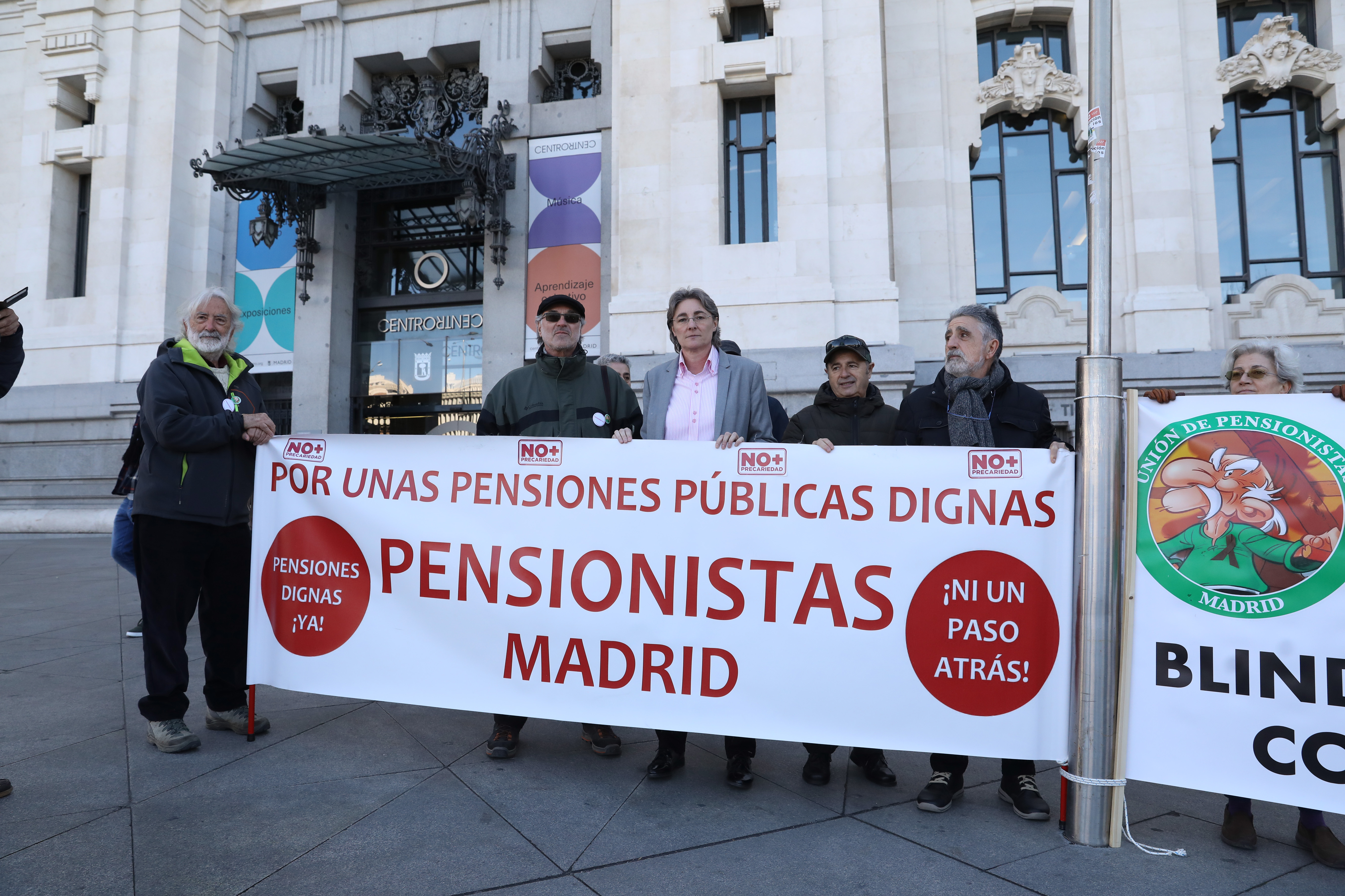 La delegada de Equidad, Derechos Sociales y Empleo, Marta Higueras, ha estado esta mañana en Cibeles en la concentración de la Unión de Pensionistas, donde ha acudido a escuchar sus reivindicaciones.