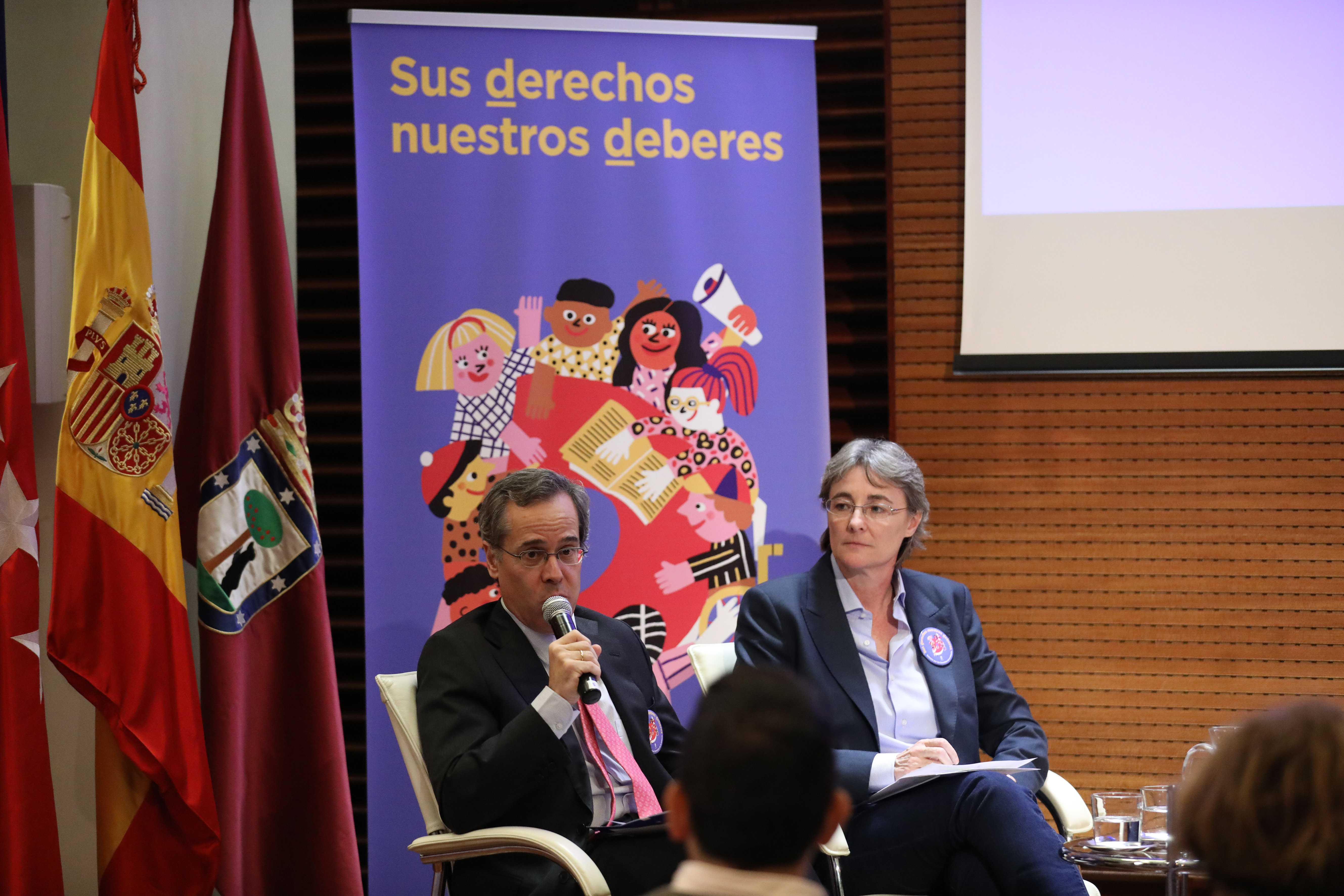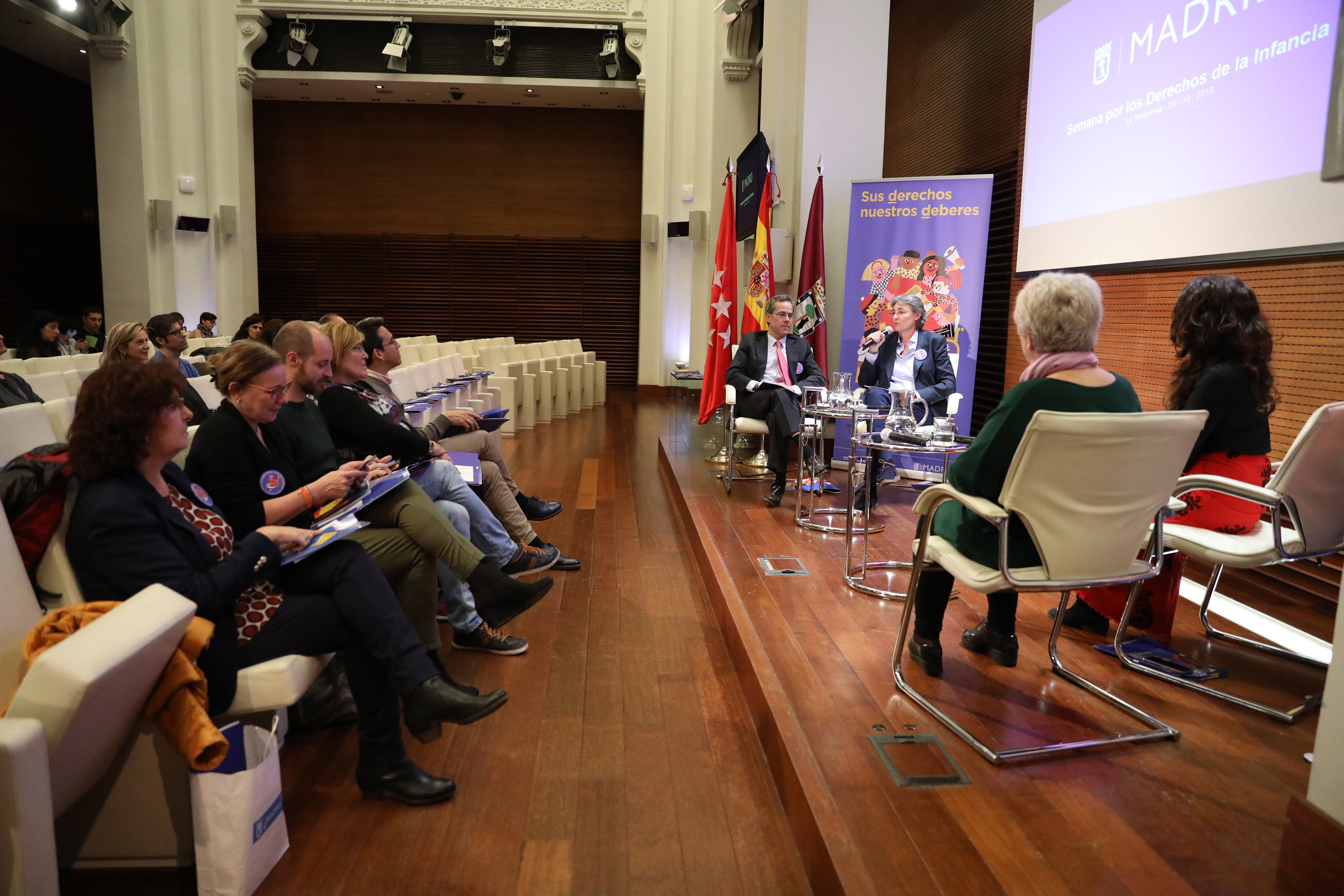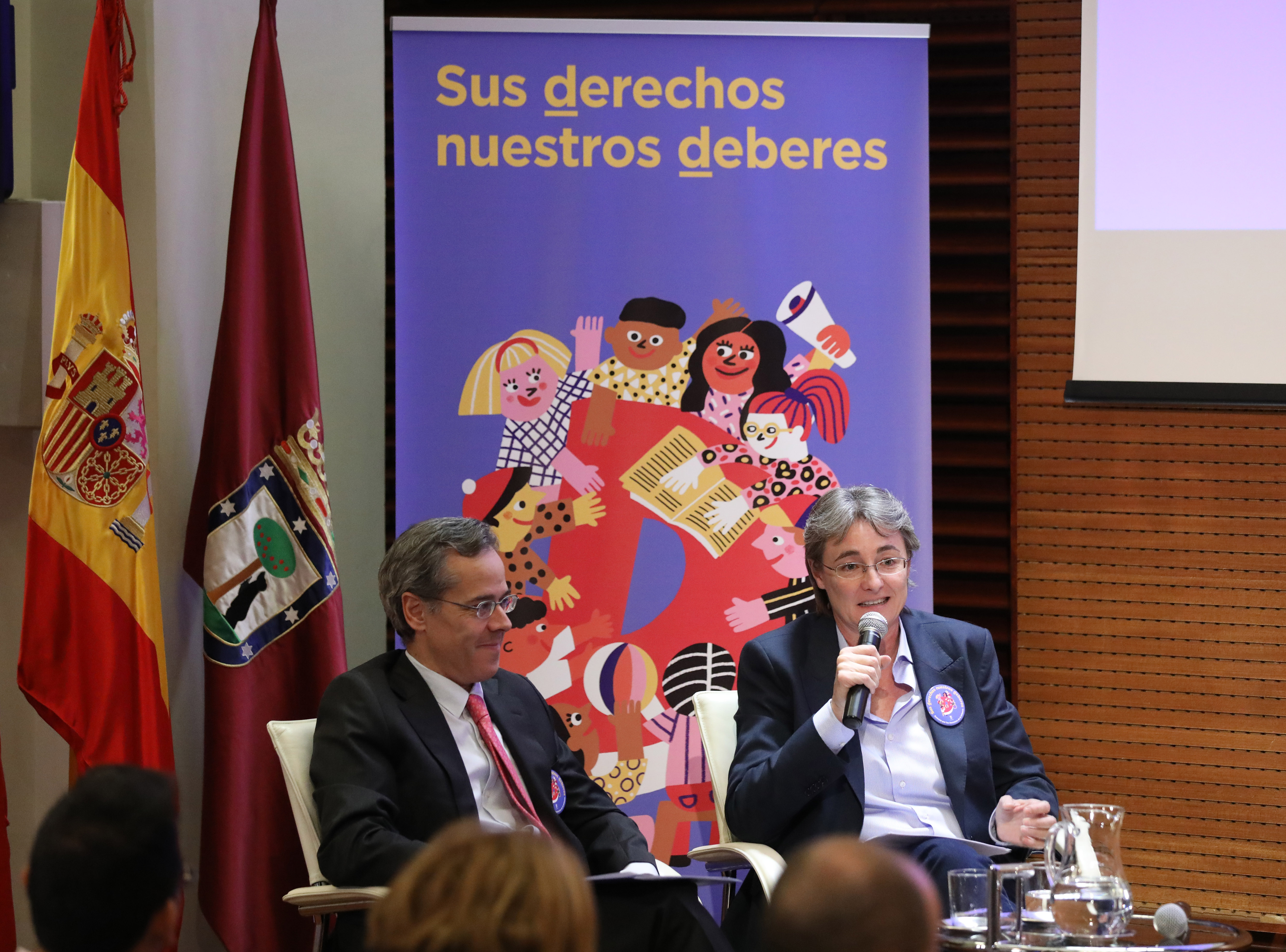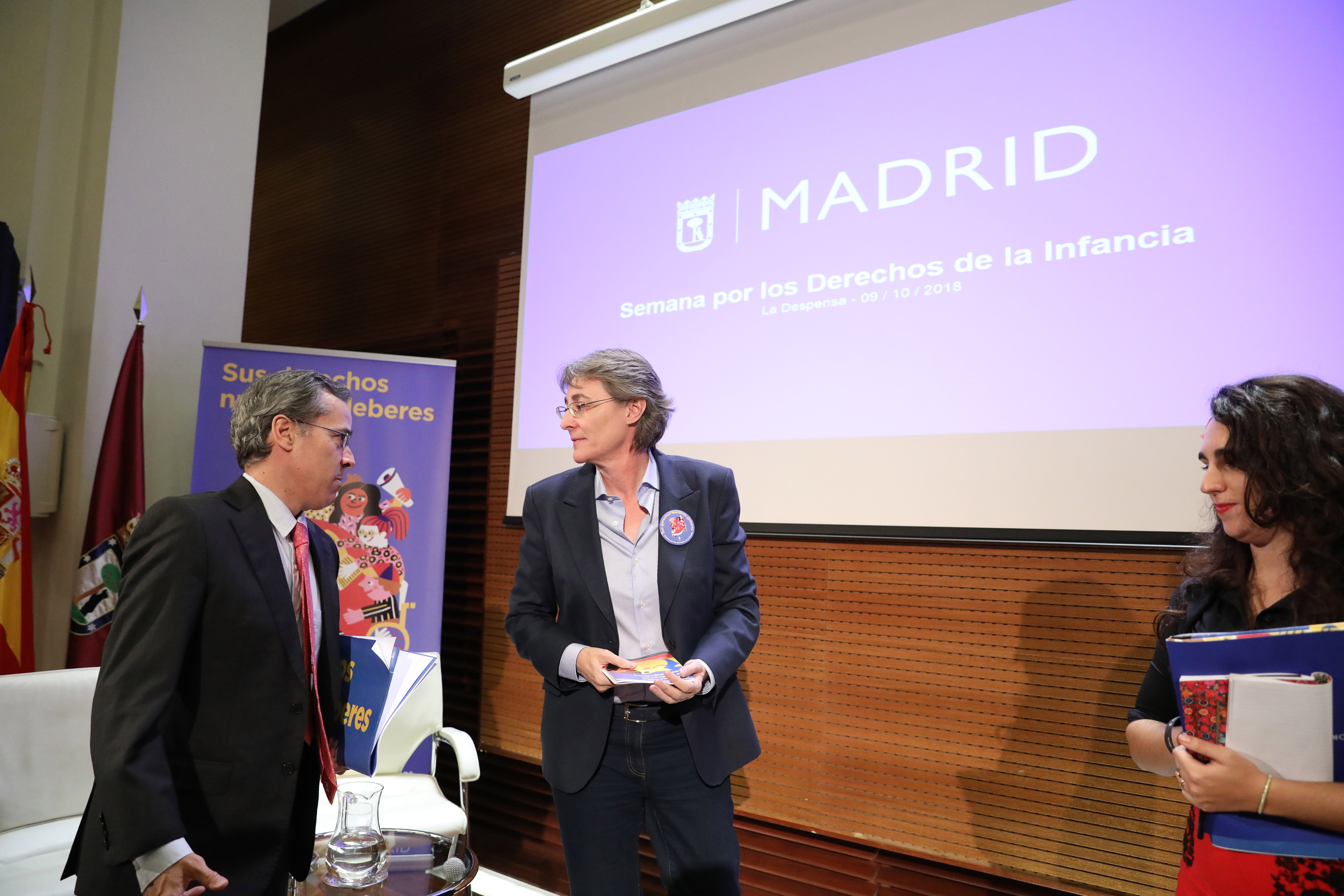La delegada de Equidad, Derechos Sociales y Empelo, Marta Higueras, ha presentado esta mañana la campaña “Sus derechos, nuestros deberes” para conmemorar el XXXIX Aniversario de la Proclamación por Naciones Unidas de la Convención de los Derechos de la Infancia. Con esta iniciativa, el Ayuntamiento de Madrid se suma a esta celebración y organiza, además, una semana de actividades que se desarrollará entre el 13 y el 20 de noviembre y que este año incluye el icono “Madrid te acompaña” a través de un “abrazo” a la palabra “derechos”.