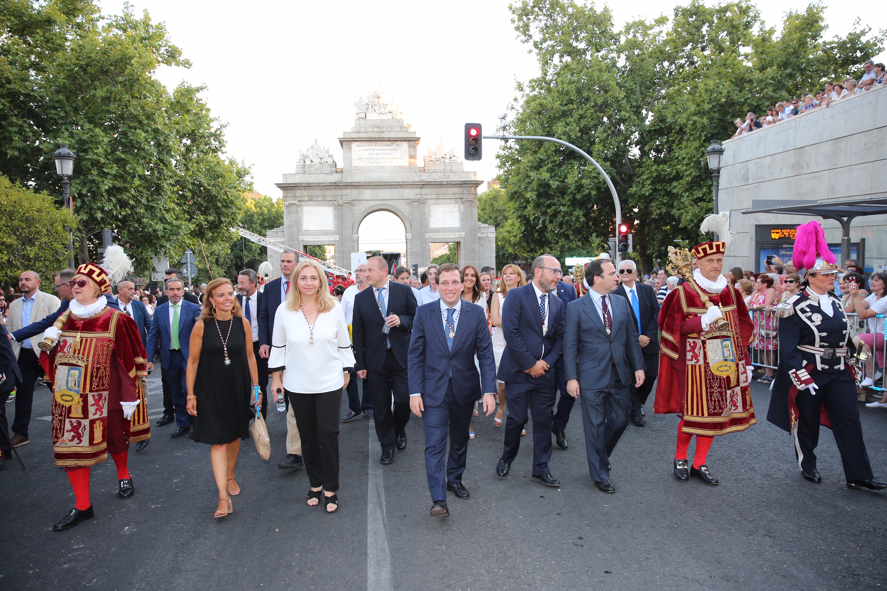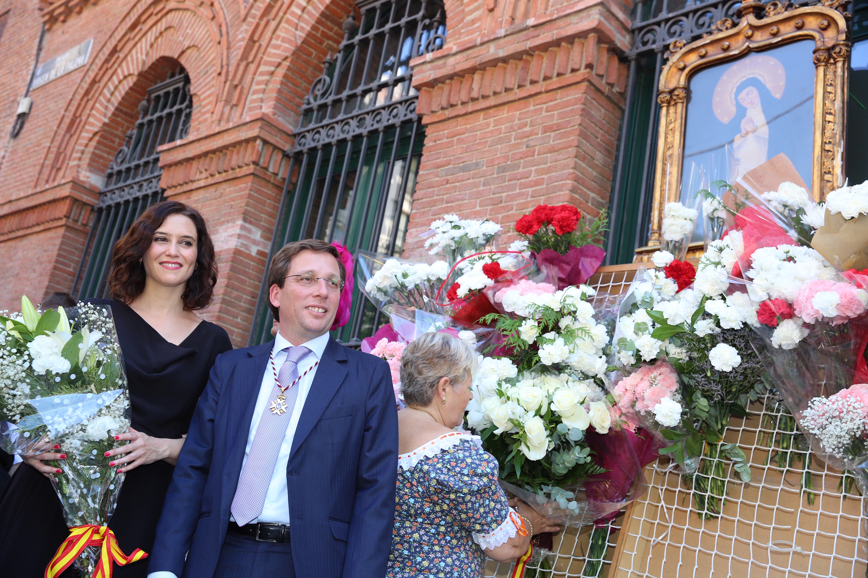 El alcalde, Martínez-Almeida, durante los actos de la festividad de la Virgen de la Paloma, acompañado por la presidenta electa de la Comunidad, Isabel Díaz Ayuso