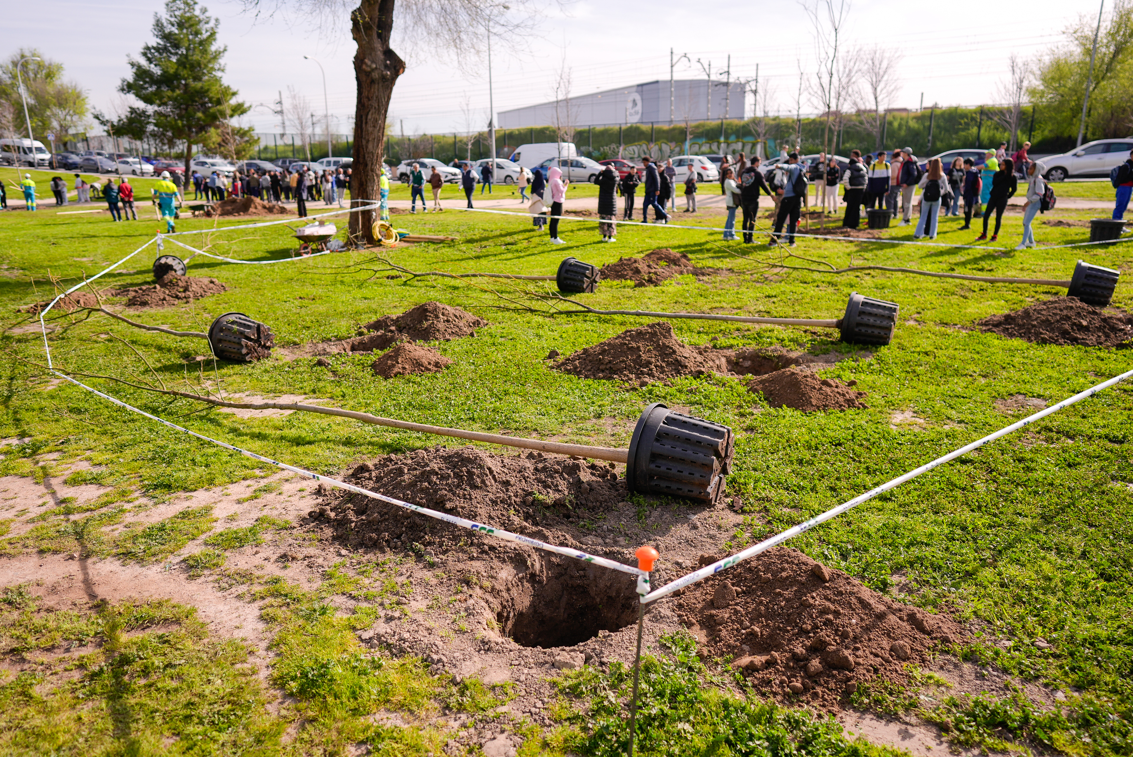El Ayuntamiento de Madrid se une a las celebraciones programadas con motivo del Día del Árbol de Naciones Unidas (21 de marzo) con el objetivo de reforzar su compromiso con la protección del patrimonio verde de la ciudad. Con motivo de esta celebración, la intensa agenda de actos diseñada por el Área de Urbanismo, Medio Ambiente y Movilidad, que dirige Borja Carabante, ha buscado resaltar el papel fundamental de los árboles en la reducción de la contaminación, la regulación de la temperatura en las ciudades y la conservación de la biodiversidad. Prueba de ello es la plantación de 55 nuevos árboles llevada a cabo hoy en el parque de la Dehesa Boyal, en el distrito de Villaverde, en la que ha participado Carabante, junto al concejal delegado de Limpieza y Zonas Verdes, José Antonio Martínez Páramo, y el concejal de Villaverde, Orlando Chacón.