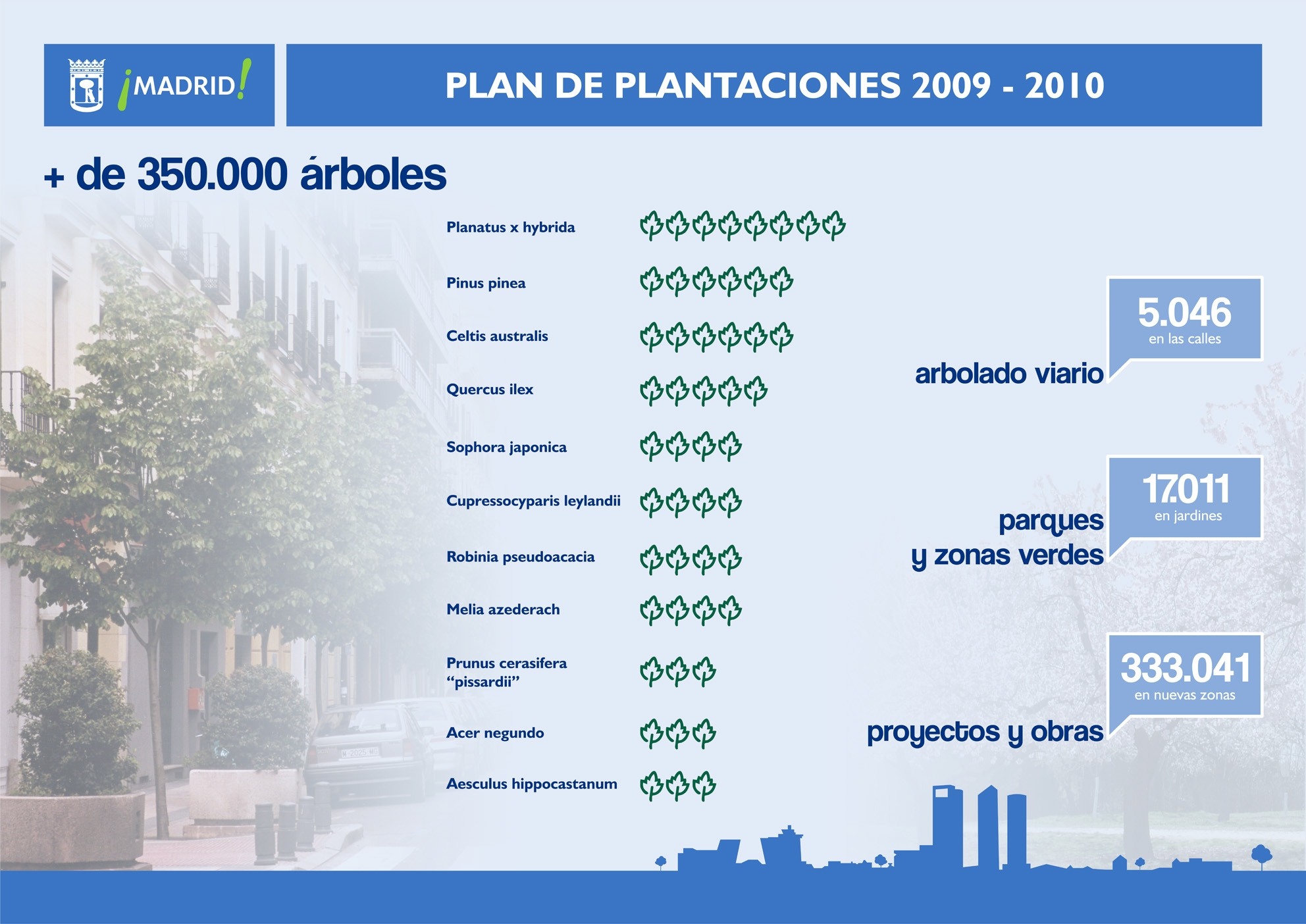 - 22.000 de los 355.000 nuevos árboles se plantarán en las calles, parques y zonas verdes de los distritos