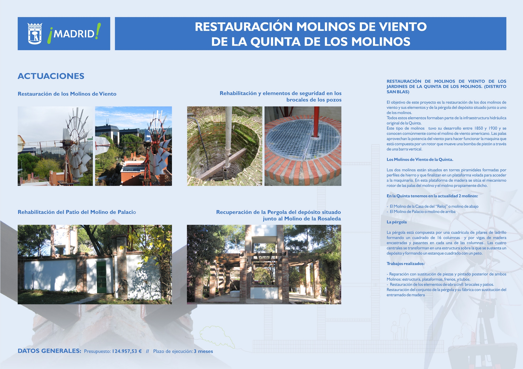 - La restauración de los dos molinos históricos de la Quinta de los Molinos, que acaba de concluir, ha costado 125.000 euros