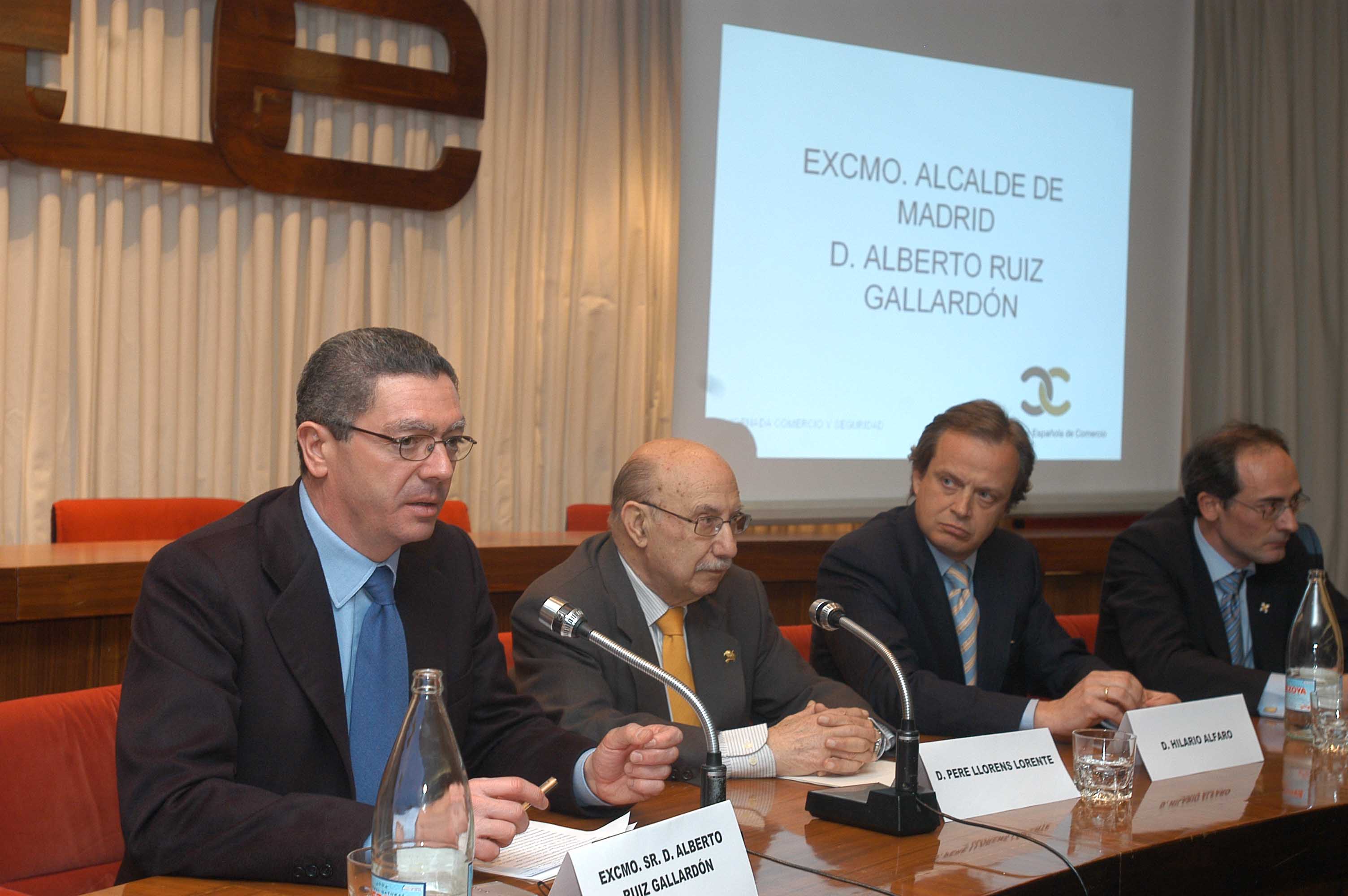 Distintas imágenes de la clausura de la I Jornada sobre Comercio y Seguridad, que hoy ha presidido el alcalde de la Ciudad de Madrid, Alberto Ruiz-Gallardón./