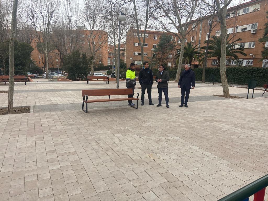 El concejal de Carabanchel, Álvaro González, ha visitado esta mañana la zona comprendida entre las calles de Tinamús, Hornero y Girasol, donde la junta municipal ha realizado obras de renovación para mejorar la accesibilidad y las zonas verdes e instalar nuevas dotaciones, entre ellas un área infantil con nuevos elementos y pavimento de seguridad, una zona estancial y nuevo mobiliario urbano. El resultado de los trabajos, presupuestados en cerca de medio millón de euros, es una plaza más abierta, accesible y atractiva como zona estancial y de juego.