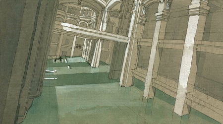 El proyecto nace del propósito de investigar la arquitectura del Palacio de Cibeles por medio de un plano secante. Una línea de sección revela las formas, los infinitos puntos que comparten edificio y plano. La superficie marina desvela el perfil de las costas y la forma de una iglesia se comprende cuando se observa sus secciones.