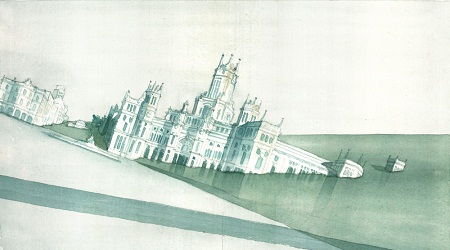 - El sueño. En un espacio apartado se proyecta una secuencia de paisajes en los que aparece el Palacio de Cibeles torcido e inundado. A pesar del acontecimiento dramático que se retrata, son imágenes de quietud, carente de dramatismo. El espectador puede olvidar las causas y dedicarse a la contemplación de la superficie de agua que corta el edificio en dos partes. Tardará poco en descubrir que la huella del agua coincide con la línea azul que recorre el palacio.