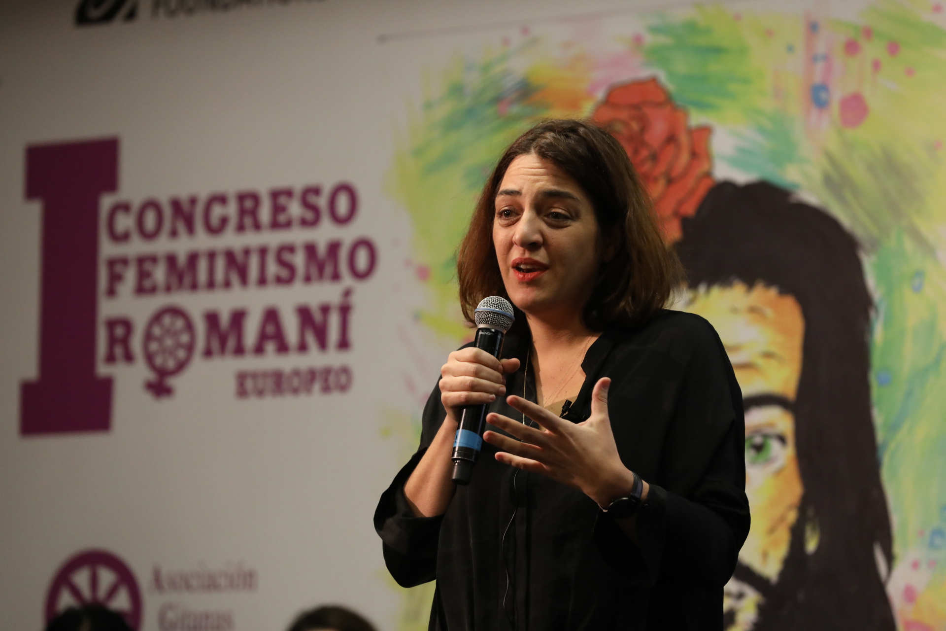 Mayer en la inauguración del primer Congreso de Feminismo Romaní