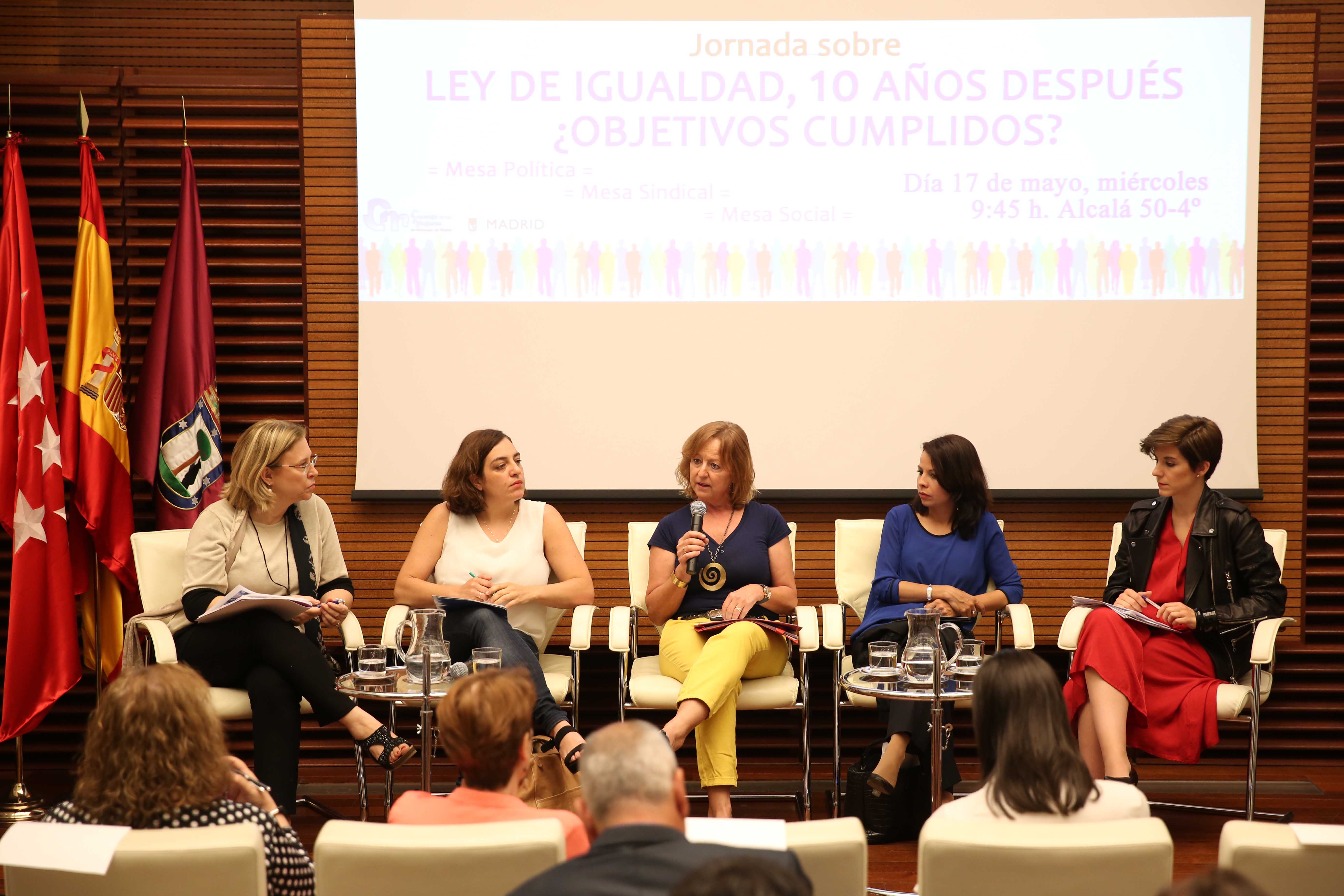 Tras la inauguración, ha comenzado la mesa de debate político, en la que han participado la propia Celia Mayer, junto a la vicepresidenta de la Comisión de Equidad, Derechos Sociales y Empleo del grupo municipal socialista, Erika Rodríguez Pinzó, la concejala portavoz de Equidad, Derechos Sociales y Empleo del grupo municipal popular, Beatriz Elorriaga, y la concejala de Ciudadanos, Sofía Miranda, con la moderación de Ana Sánchez de la Coba, del Consejo de las Mujeres.