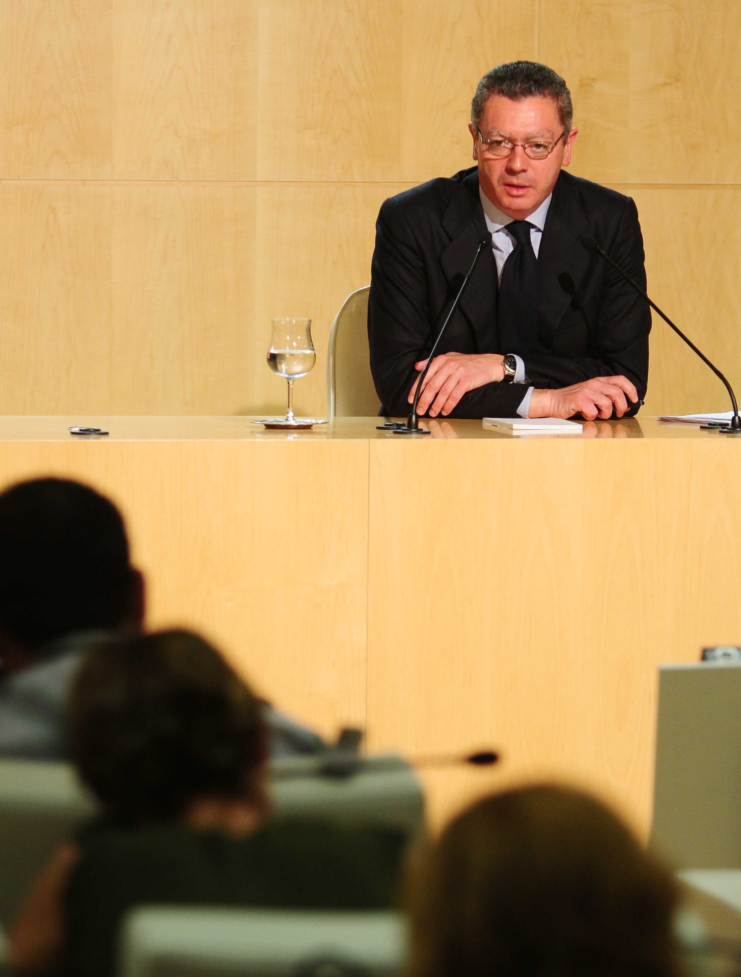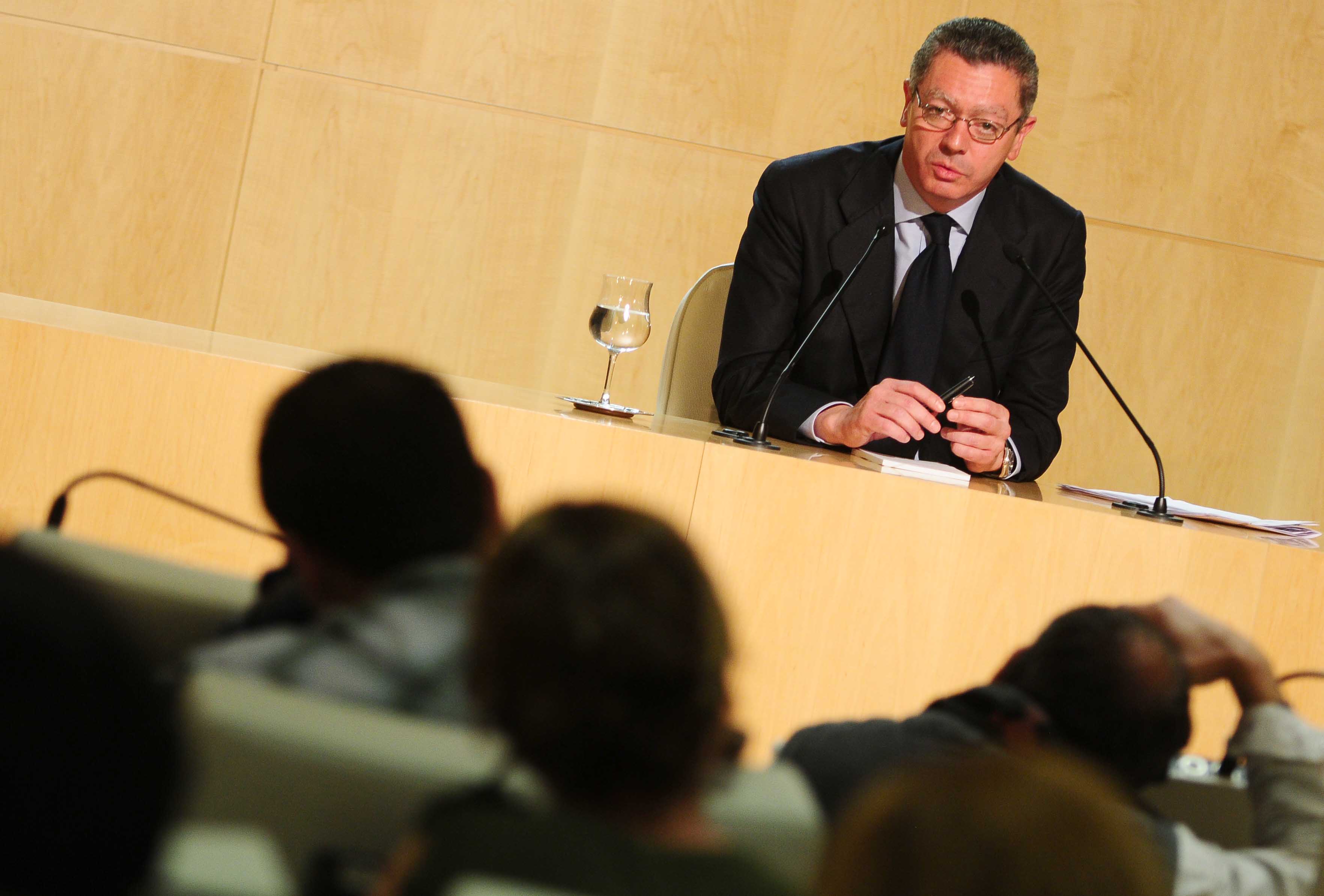 Imágenes de la rueda de prensa que ha ofrecido hoy el alcalde de la Ciudad de Madrid, Alberto Ruiz-Gallardón, al término de la reunión de la Junta de Gobierno en la sede del Ayuntamiento, en el Palacio de Cibeles.