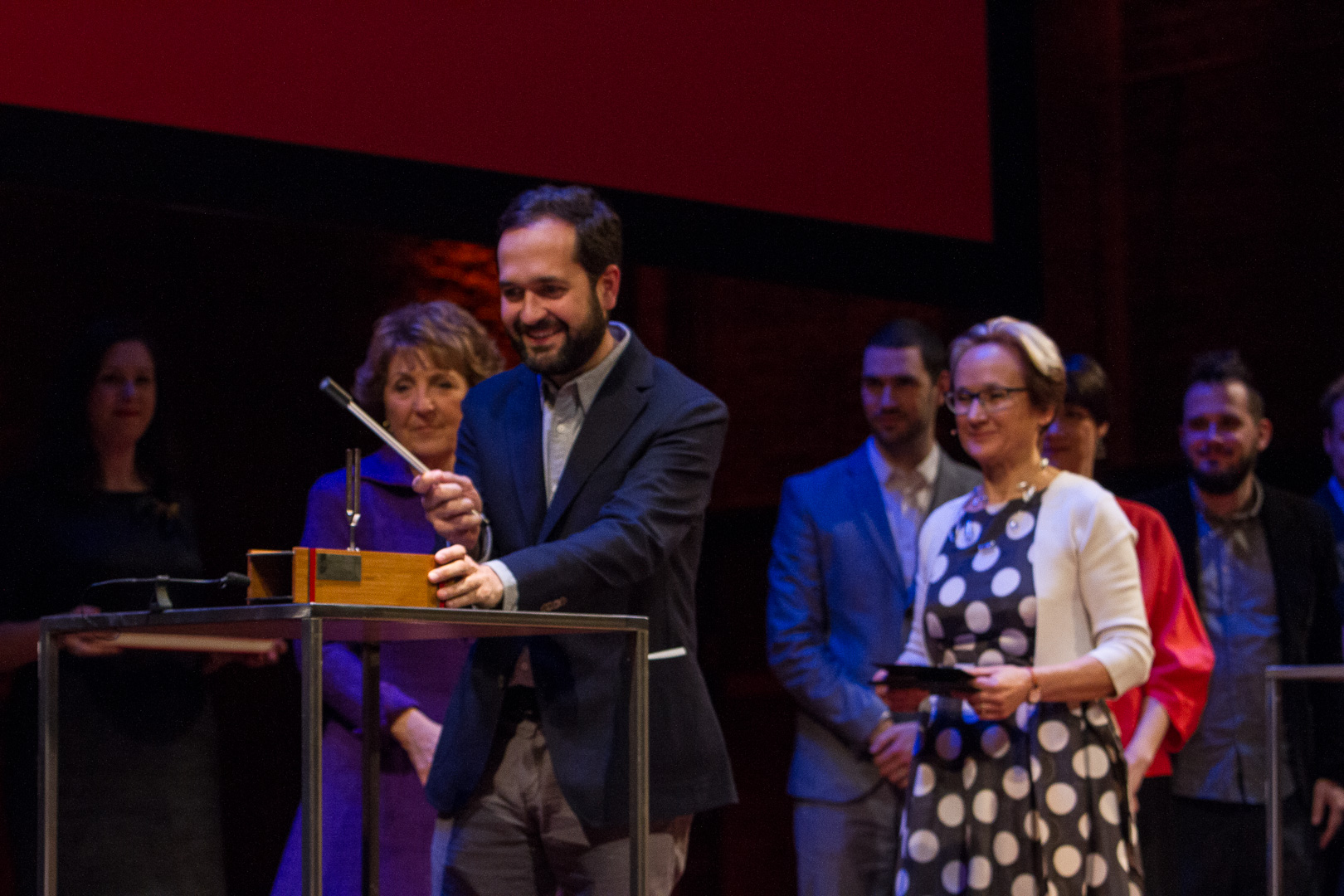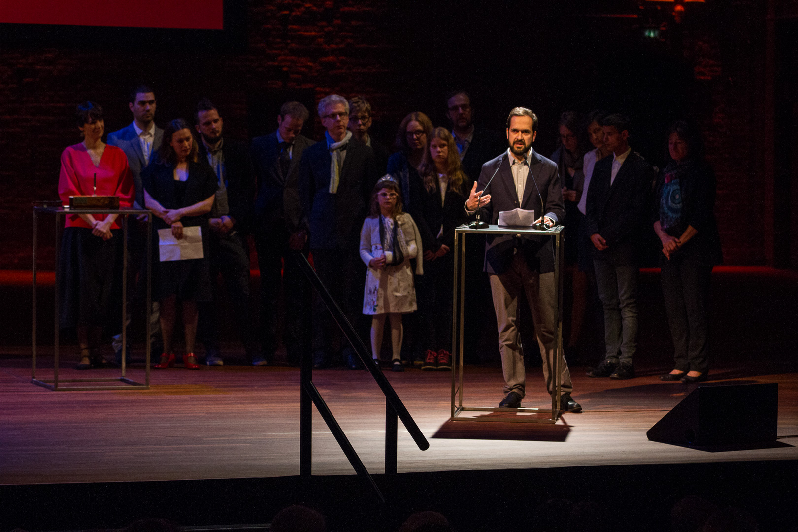 La delegada de Cultura y Deportes, Celia Mayer y el coordinador general de Alcaldía, Luis Cueto, estuvieron en la ceremonia de entrega del galardón, que recogió el director de Medialab Prado, Marcos García, junto a mediadores y usuarios de este centro municipal. El premio cuenta con una dotación de 25.000 euros, que el Ayuntamiento de Madrid destinará a un proyecto sobre nuevos modelos de institución y políticas culturales.