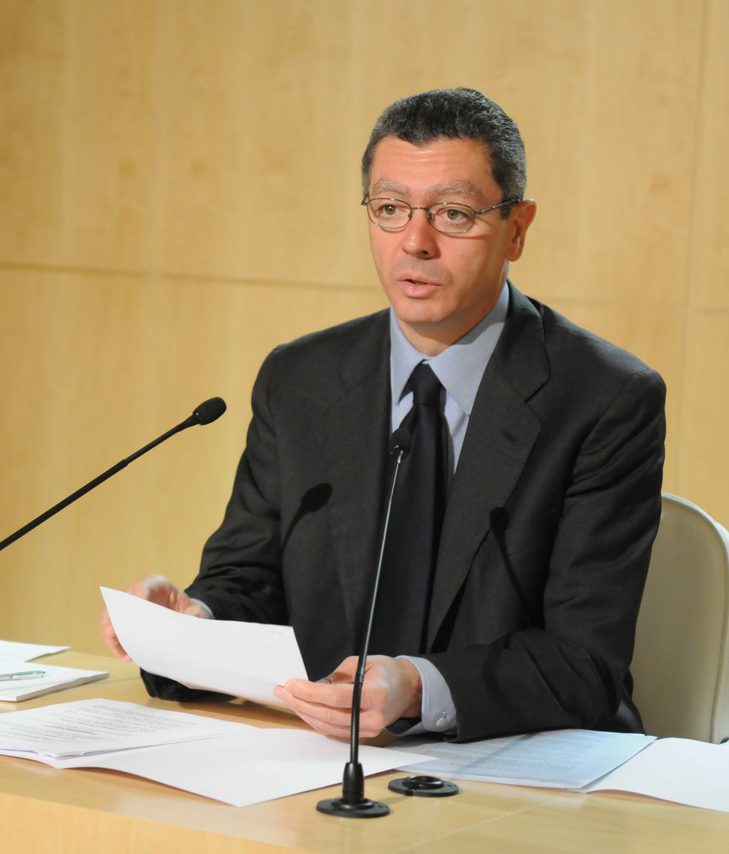 El alcalde de la Ciudad de Madrid, Alberto Ruiz-Gallardón, durante la rueda de prensa de esta mañana