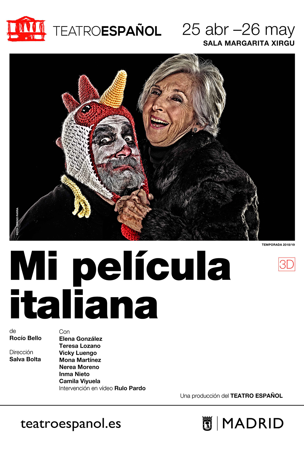 Hoy miércoles, 24 de abril, la directora artística del Teatro Español, Carme Portaceli, ha presentado la última de las producciones 3D Dramaturgia Contemporánea Viva de esta temporada: Mi película italiana, una producción del Teatro Español escrita por Rocío Bello y dirigida por Salva Bolta que podrá disfrutarse del 25 de abril al 26 de mayo en la Sala Margarita Xirgu.