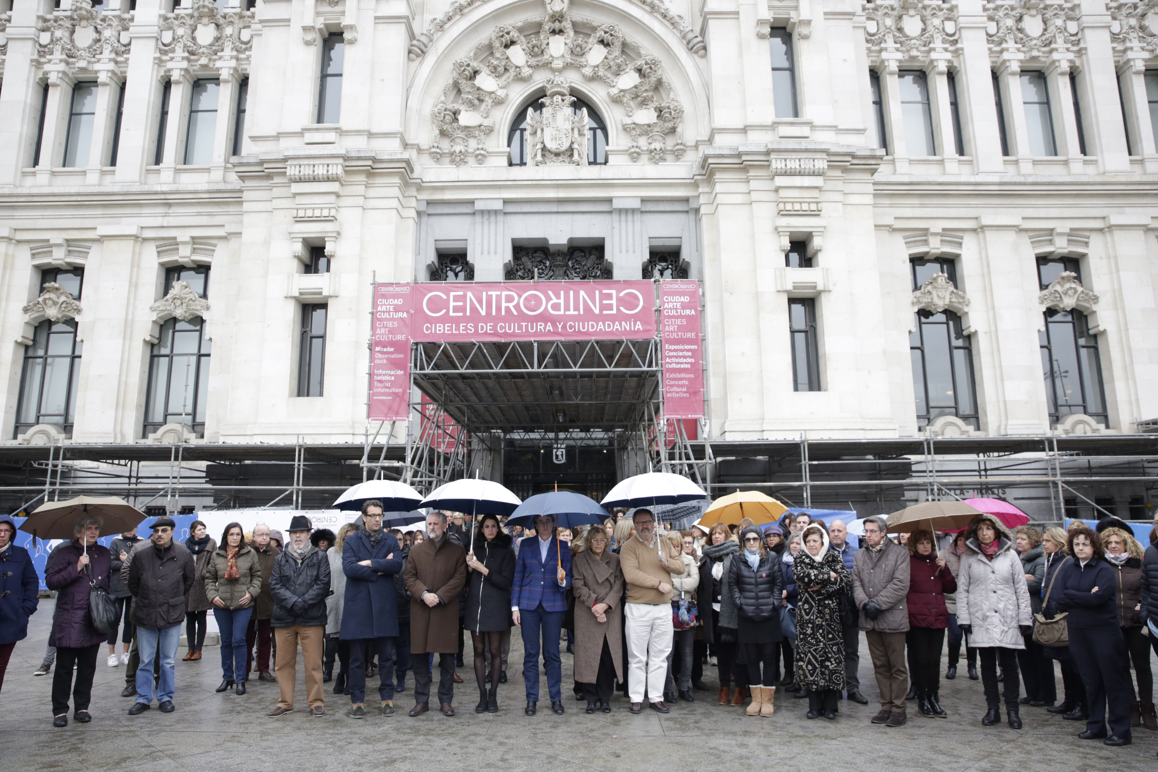 El Ayuntamiento de Madrid ha guardado hoy jueves, 23 de marzo, a las 12:00 horas, en la puerta del Palacio de Cibeles un minuto de silencio para condenar los atentados de ayer miércoles en Londres. A esa hora la alcaldesa de Madrid, Manuela Carmena, y otros miembros de la corporación y trabajadores municipales han mostrado su rechazo en la puerta del Palacio de Cibeles.