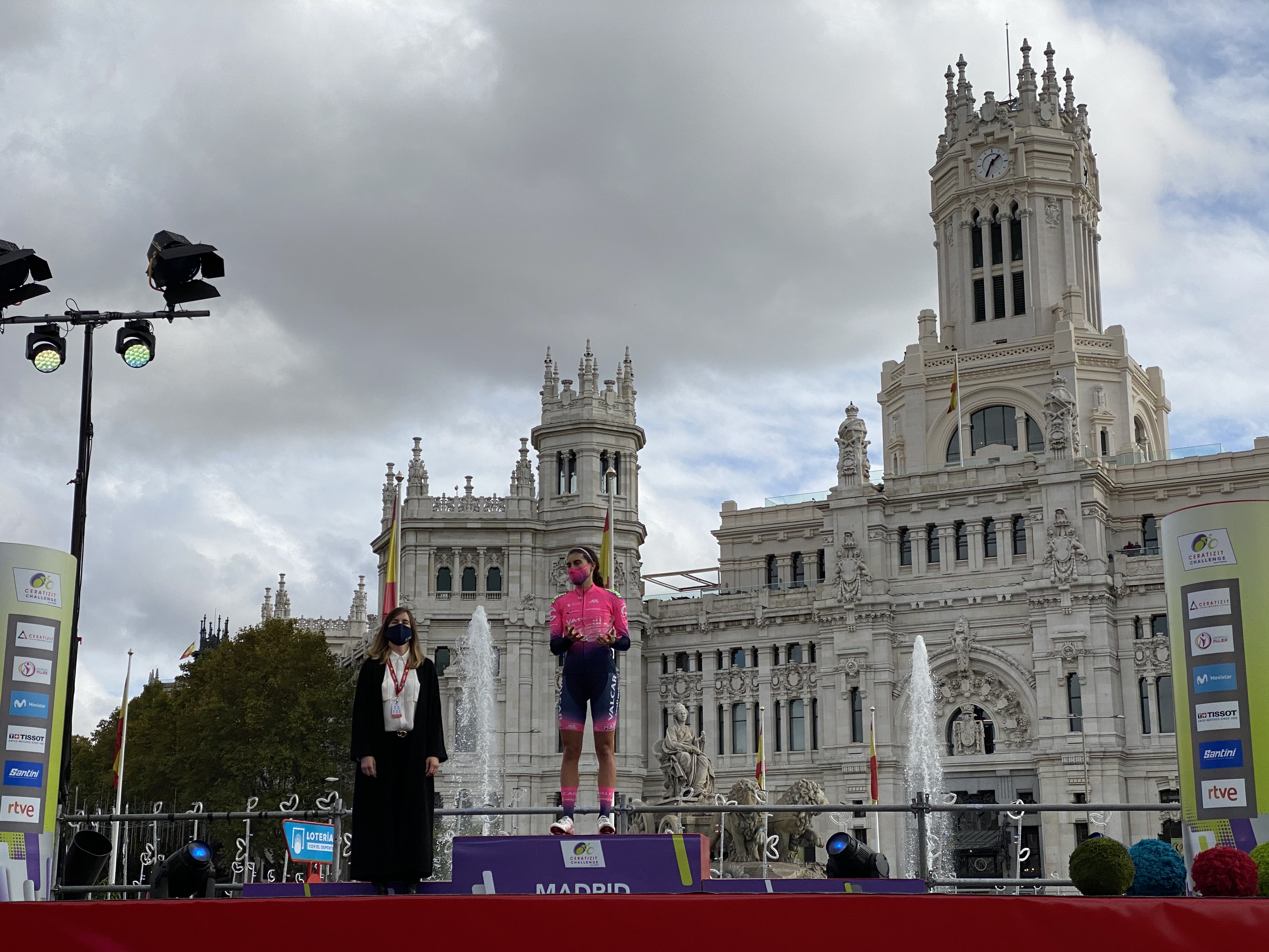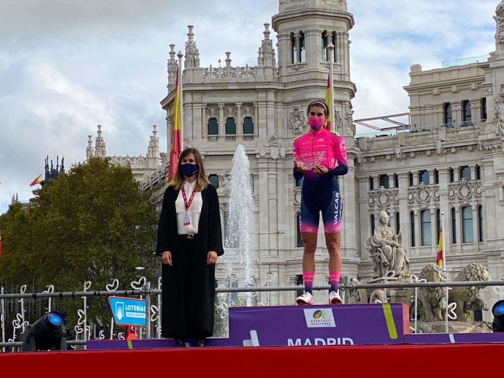 La concejala delegada de Deporte, Sofía Miranda, ha participado en la entrega de trofeos de la sexta edición de Ceratizit Challenge by La Vuelta, la prueba deportiva que supone el cierre de la temporada World Tour femenina de ciclismo que ha tenido lugar en la madrileña plaza de Cibeles.