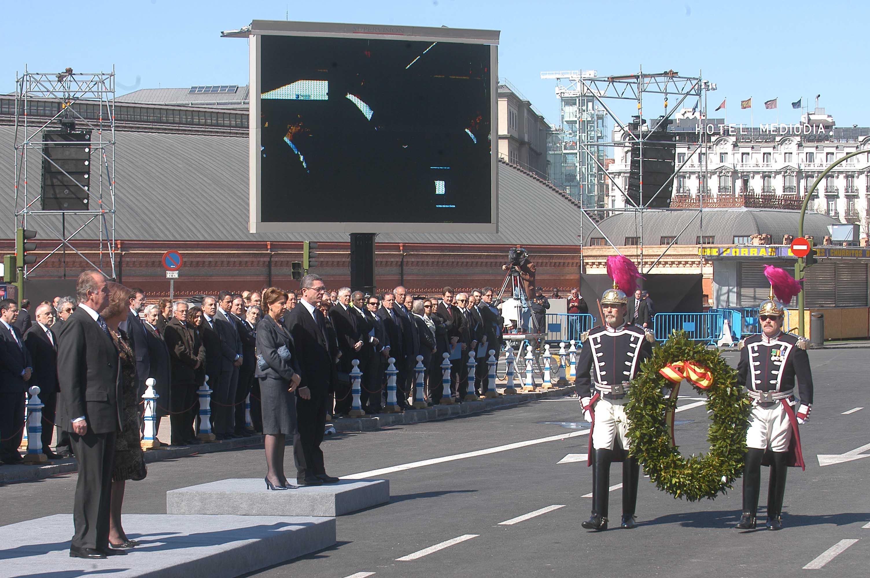 El alcalde de la Ciudad de Madrid, Alberto Ruiz-Gallardón, ha asistido a la inauguración del monumento en homenaje a las víctimas del atentado del 11-M, acto que han presidido Sus Majestades los Reyes. También han asistido los Príncipes de Asturias; el presidente del Gobierno, José Luis Rodríguez Zapatero; la presidenta de la Comunidad de Madrid, Esperanza Aguirre, y la ministra de Fomento, Magdalena Álvarez, entre otras autoridades. El alcalde ha acompañado a Sus Majestades los Reyes en el recorrido por la sala situada bajo el Monolito donde se encuentra la placa conmemorativa con los nombres de los fallecidos en el atentado. Tras una ofrenda floral, se han guardado tres minutos de silencio. El acto ha finalizado con la pieza musical “El cant dels ocells” de Pau Casals, interpretada al violonchelo por Antonio Martín Acevedo.