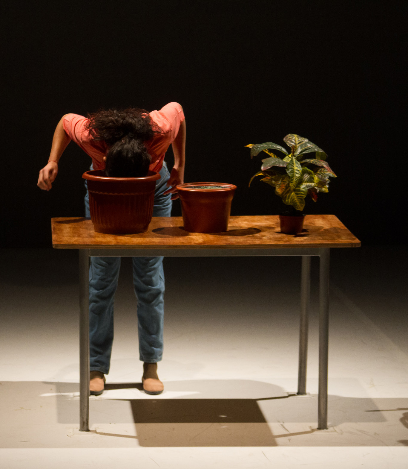 ESTADO VEGETAL es un monólogo polifónico, ramificado, exuberante, reiterativo, divisible y sésil. Su protagonista es una mujer, que no es un individuo; es una multitud, un enjambre. Esta no es una obra animal, es una obra vegetal, que ronda incansablemente alrededor de un diálogo imposible, el de los seres humanos y las plantas. Un diálogo fallido con la naturaleza que es, quizás, nuestro monólogo más innato.