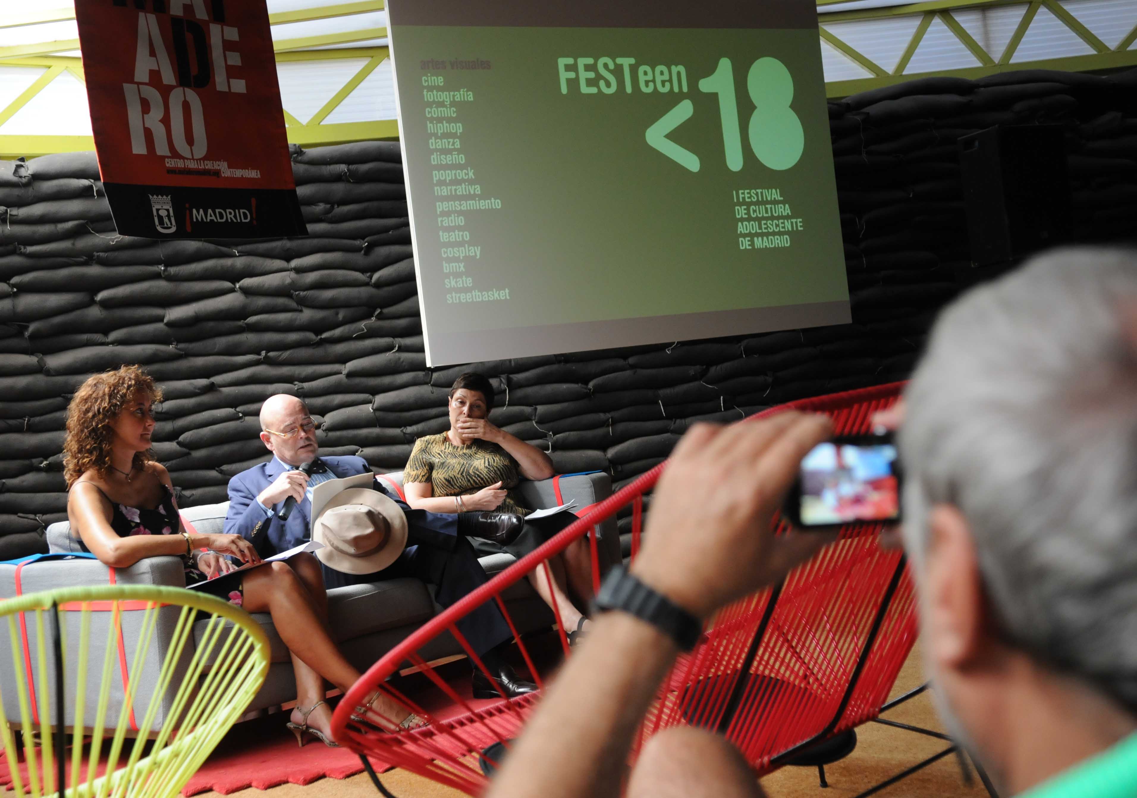 La delegada de Familia, Servicios Sociales y Participación Ciudadana, Dolores Navarro, acompañada del presidente de Madrid Arte y Cultura, Fernando Villalonga, ha presentado hoy un novedoso festival , que se desarrollará en Matadero Madrid, y cuyo principal atractivo es que está íntegramente destinado al público más joven, que habitualmente cuenta con pocas ofertas hechas exclusivamente por y para ellos. Se trata de FESTeen<18, un festival gratuito que se celebrará del 13 al 15 de septiembre, días en los que Matadero Madrid se convertirá en punto de encuentro para los jóvenes de 12 a 18 años en torno al arte, la creación colectiva, la participación, el deporte urbano y el ocio al aire libre.