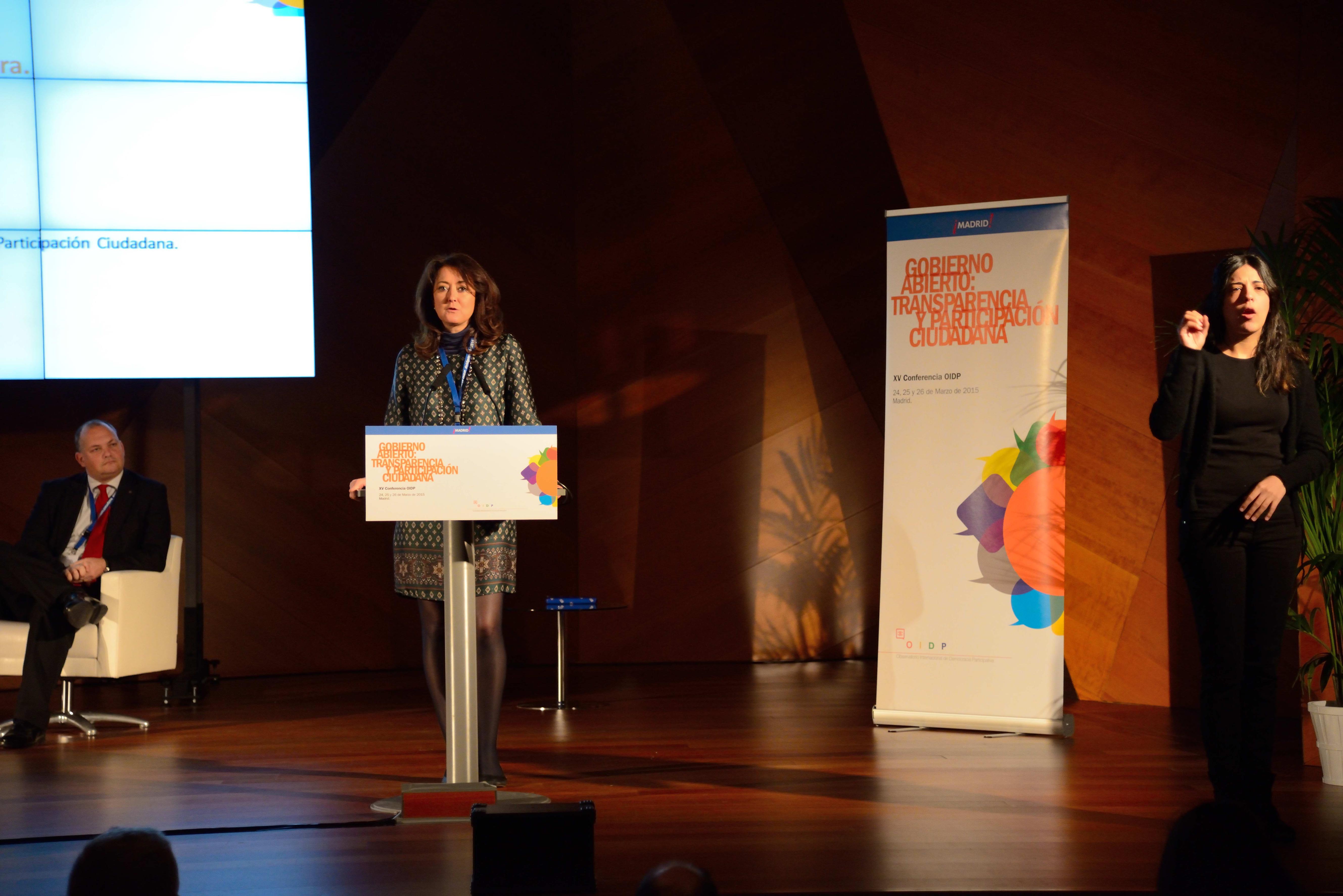La delegada del Área de Familia, Servicios Sociales y Participación Ciudadana en la clausura de la XV Conferencia del Observatorio Internacional de Democracia Participativa.