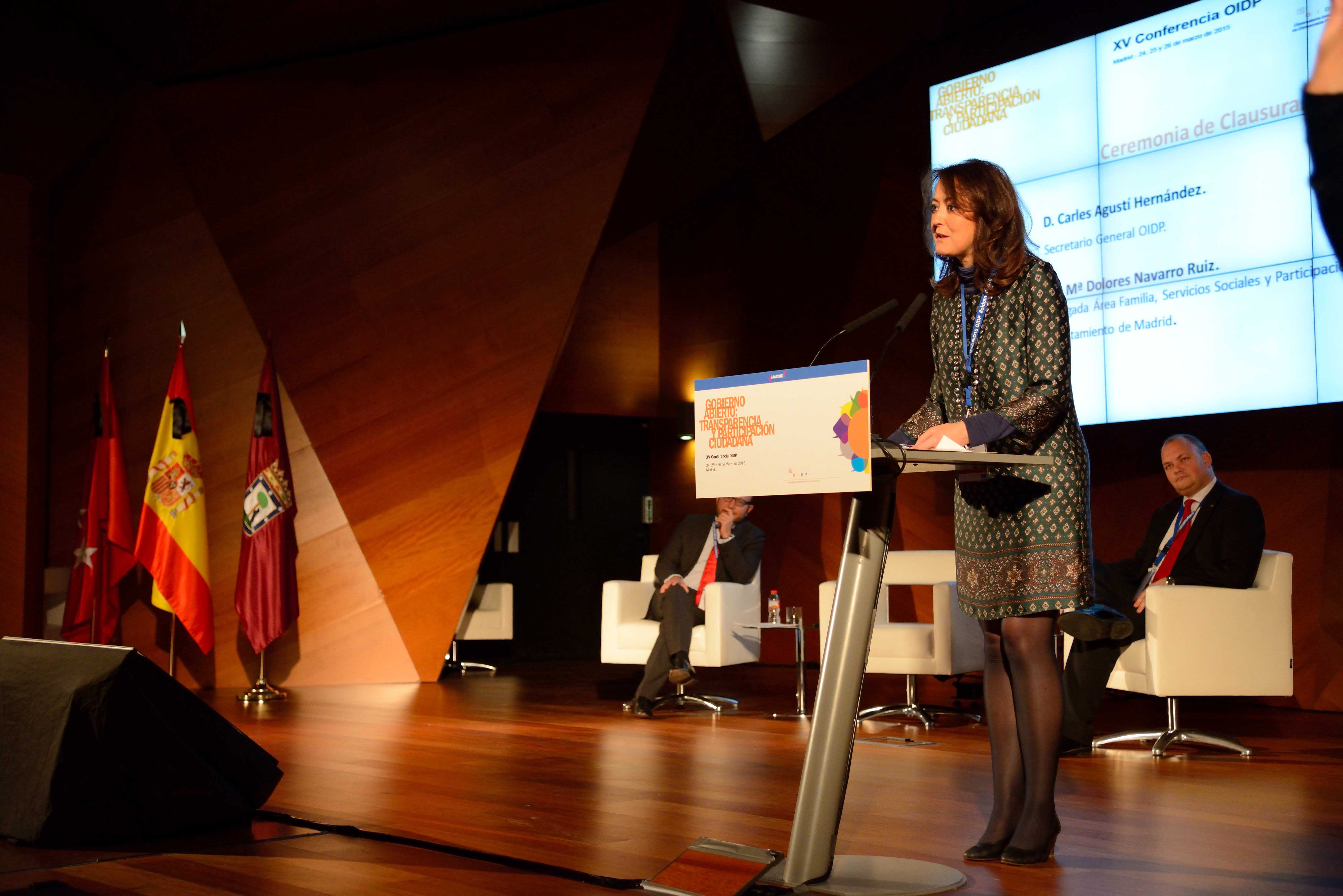 La delegada del Área de Familia, Servicios Sociales y Participación Ciudadana ha clausurado hoy la XV Conferencia del Observatorio Internacional de Democracia Participativa, que se ha celebrado en Madrid, ciudad que actualmente ostenta la presidencia de este organismo, y a la que han asistido representantes de más de 20 países.