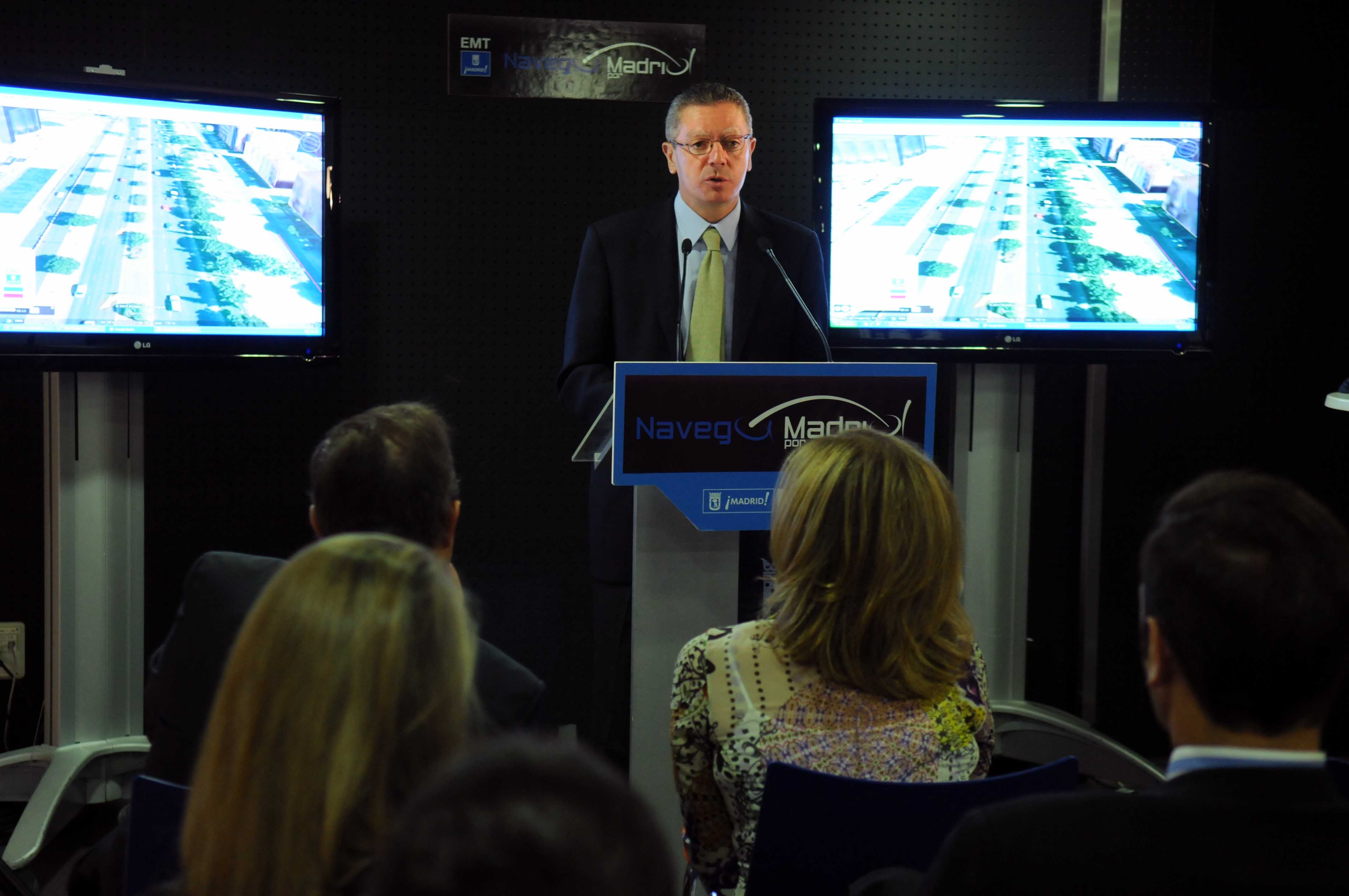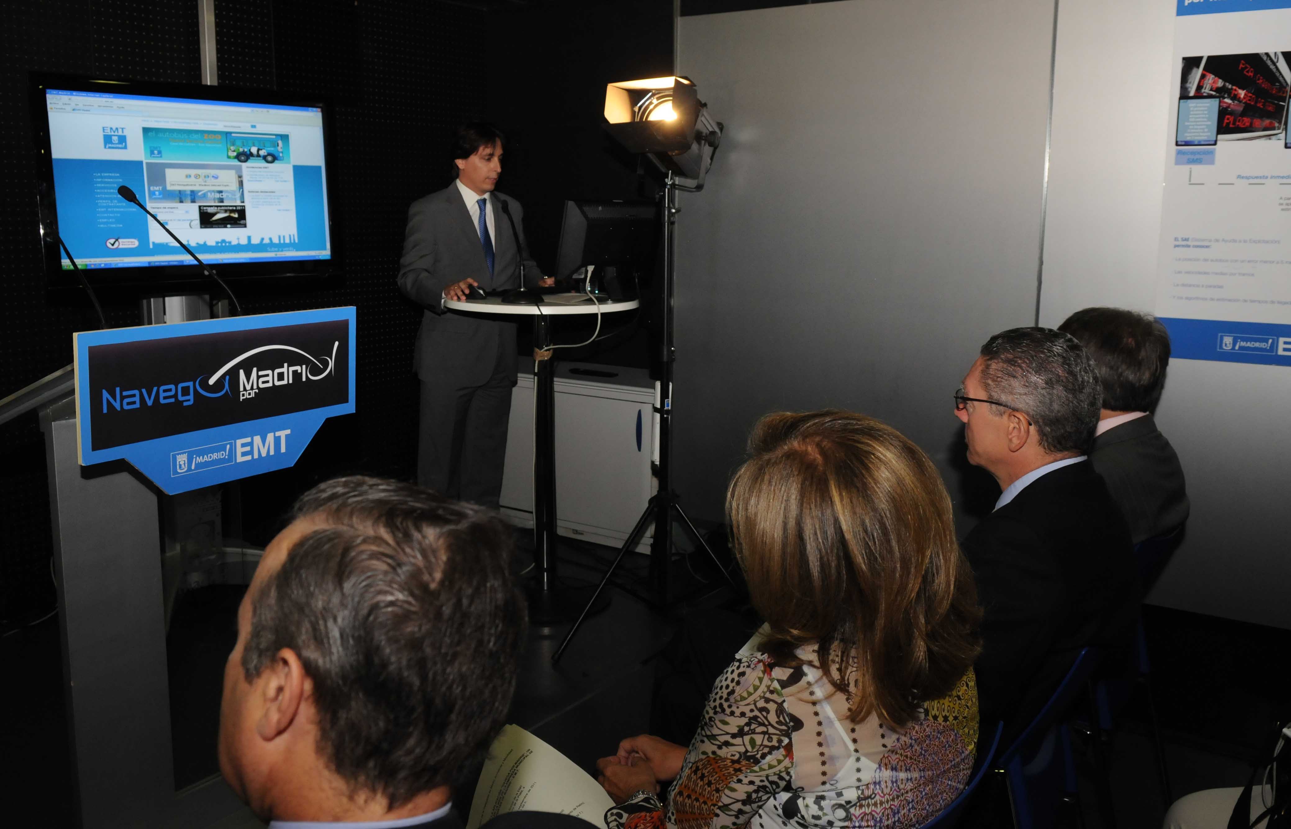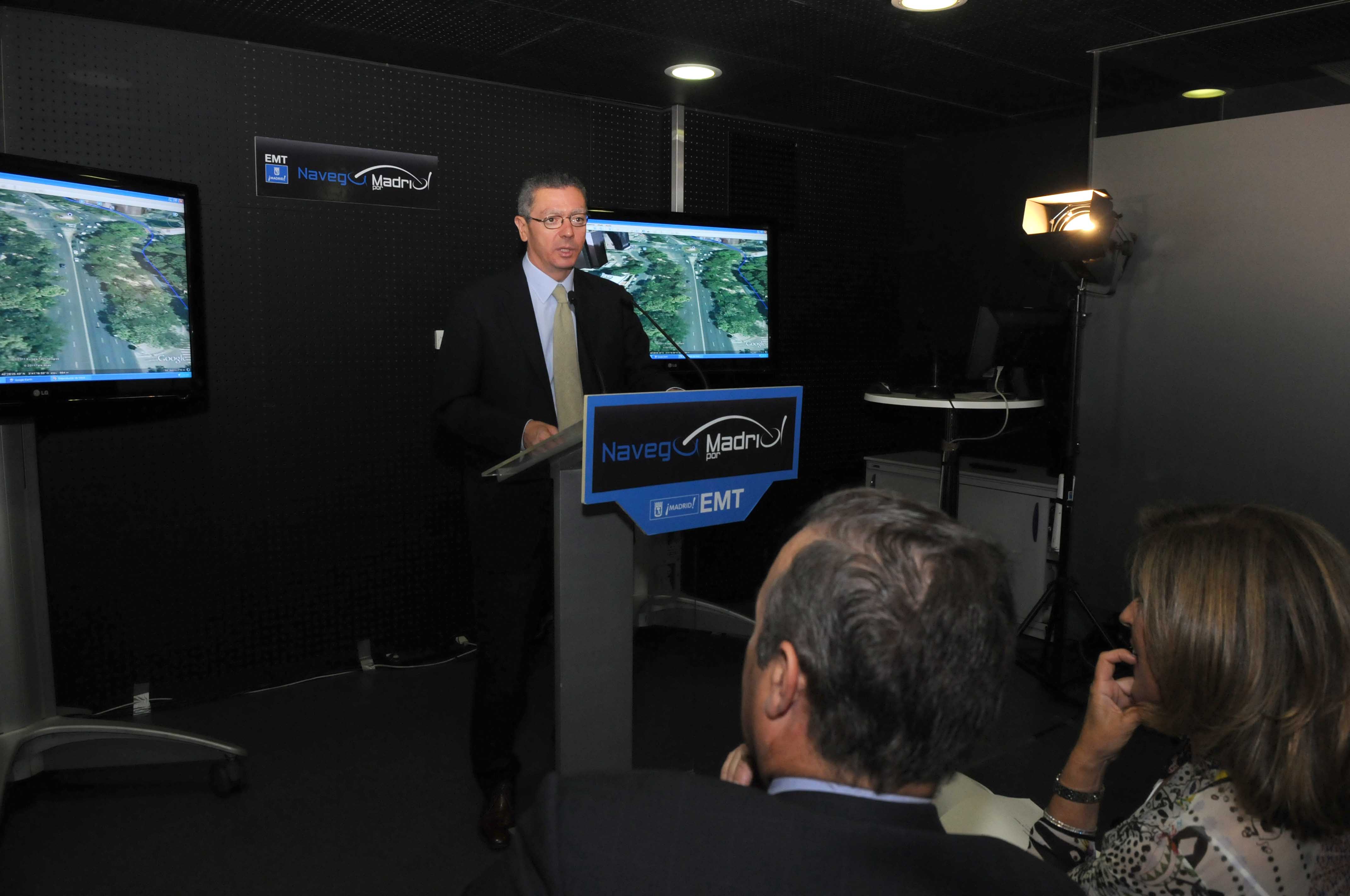 El alcalde de Madrid, Alberto Ruiz-Gallardón, ha presentado hoy "Navega Madrid", una nueva aplicación informática desarrollada por la Empresa Municipal de Transportes para facilitar y ampliar la información al usuario