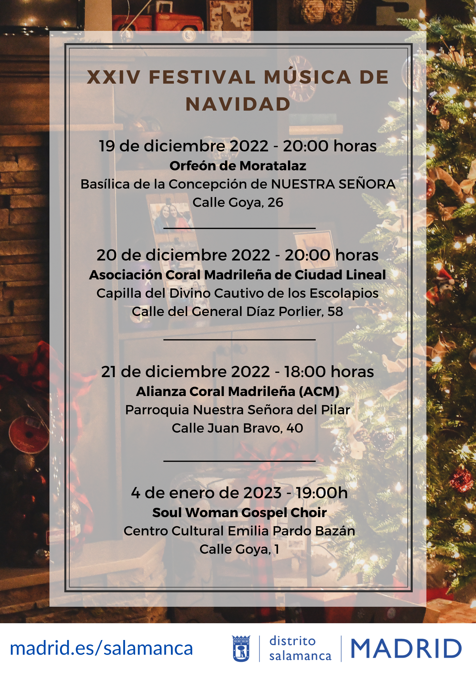 Un año más la música vuelve a las iglesias del distrito de Salamanca con la XXIV edición del Festival de Música de Navidad. Una forma de disfrutar de la música en los templos religiosos donde se podrán visitar también sus tradicionales belenes.