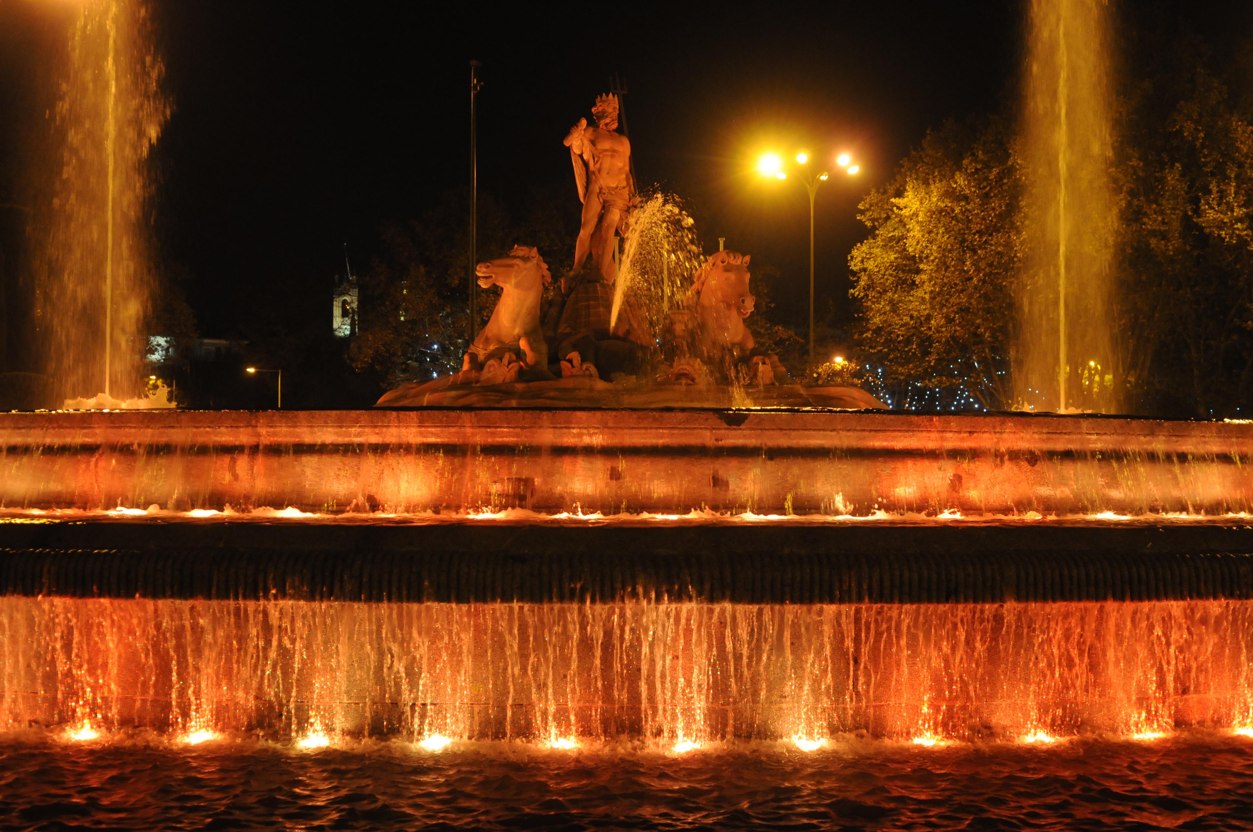Tres de las fuentes más emblemáticas de la ciudad, Neptuno, la situada en la plaza del emperador Carlos V y la de Isabel la Católica cuentan con una iluminación más eficiente con la nueva instalación LED. El cambio forma parte del proyecto de acondicionamiento de fuentes e instalaciones hidráulicas para alcanzar un mayor ahorro energético. A estas tres fuentes, ubicadas en el eje Prado-Recoletos, se suma el acondicionamiento de seis fuentes a las que se ha dotado de agua potable. También se ha procedido al aprovechamiento de agua de las capas freáticas de pasos subterráneos, estaciones de metro y líneas de cercanías. En el proyecto se han invertido 318.287 euros procedentes del remanente de tesorería del 2013.