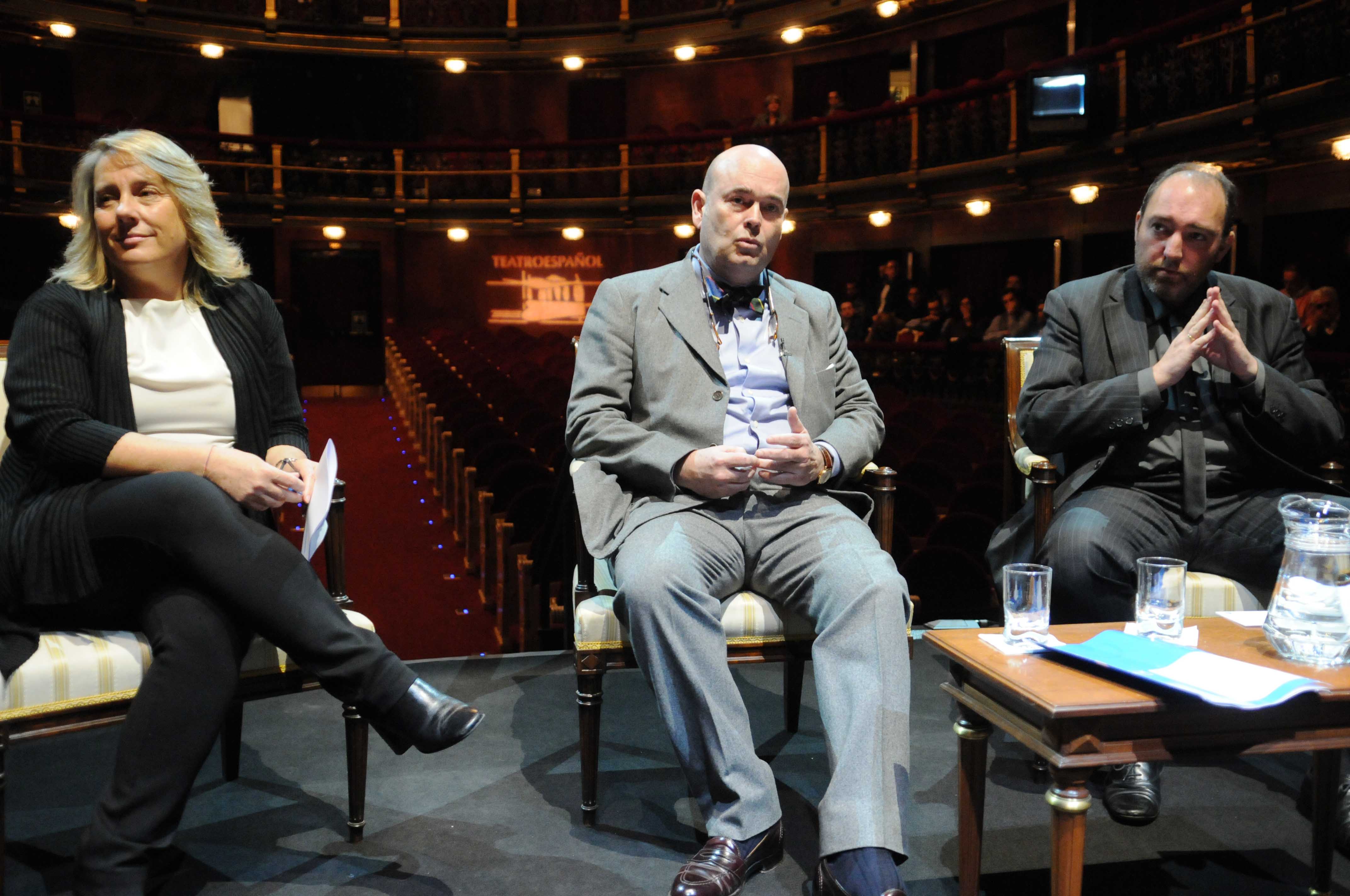 El delegado de Las Artes, Fernando Villalonga, presentó esta mañana el nuevo modelo cultural de Madrid. En él, destaca el papel del teatro Español que se potenciará como el teatro de referencia de España. En las imágenes, Fernando Villalonga; la gerente de Madrid, Arte y Cultura, Yolanda Bergareche y el director de Programación de Artes Escénicas, Natalio Grueso.