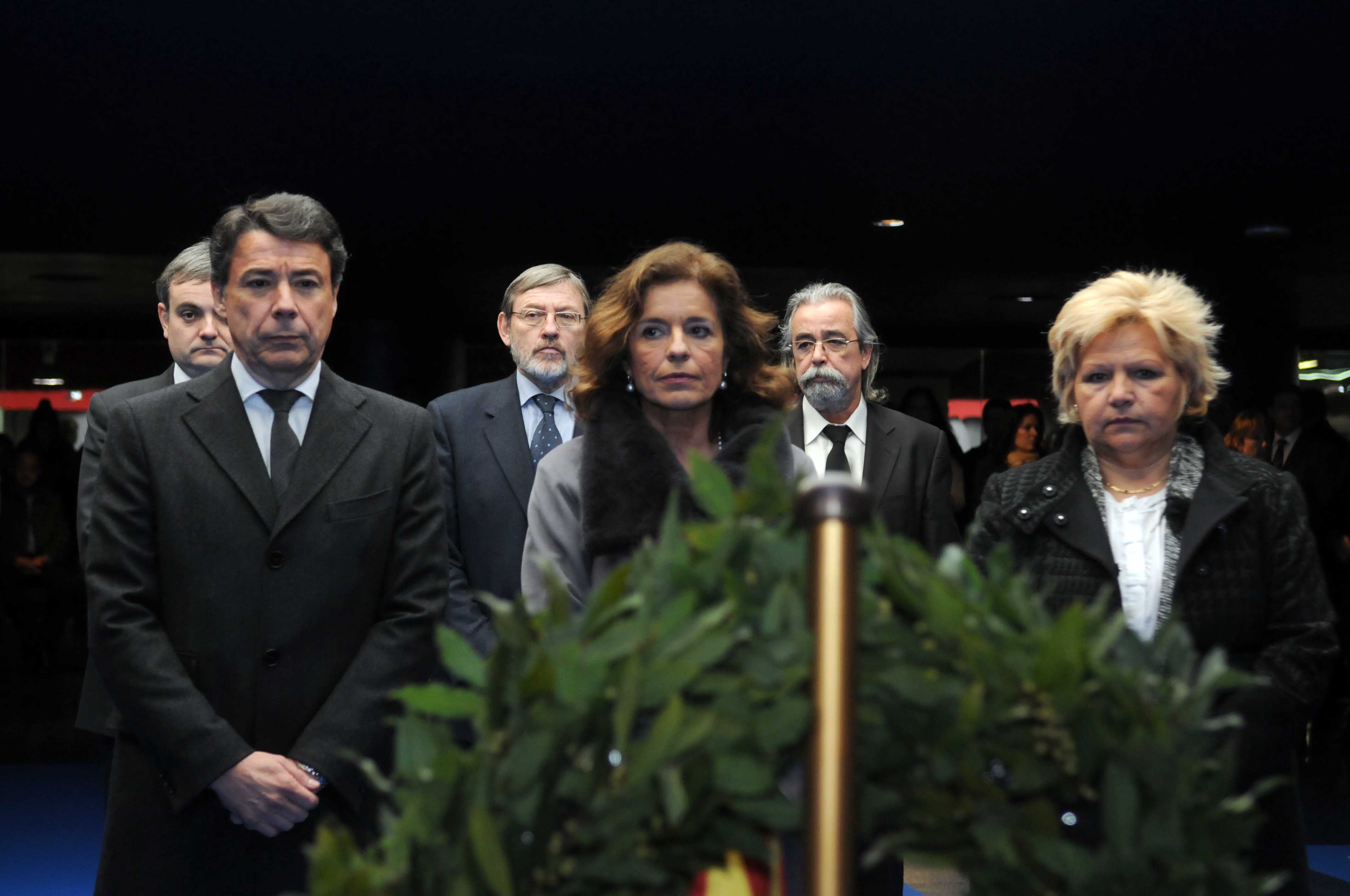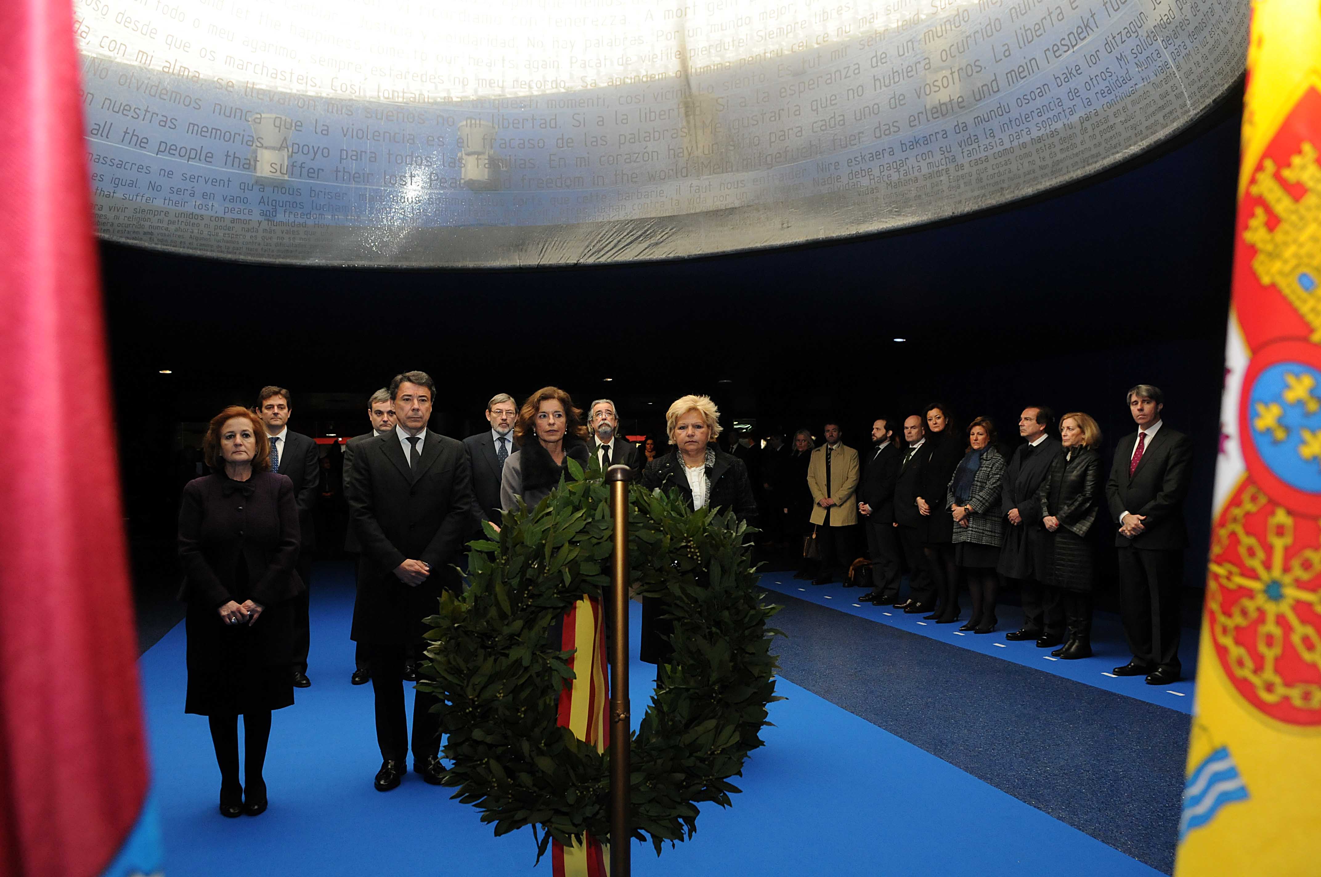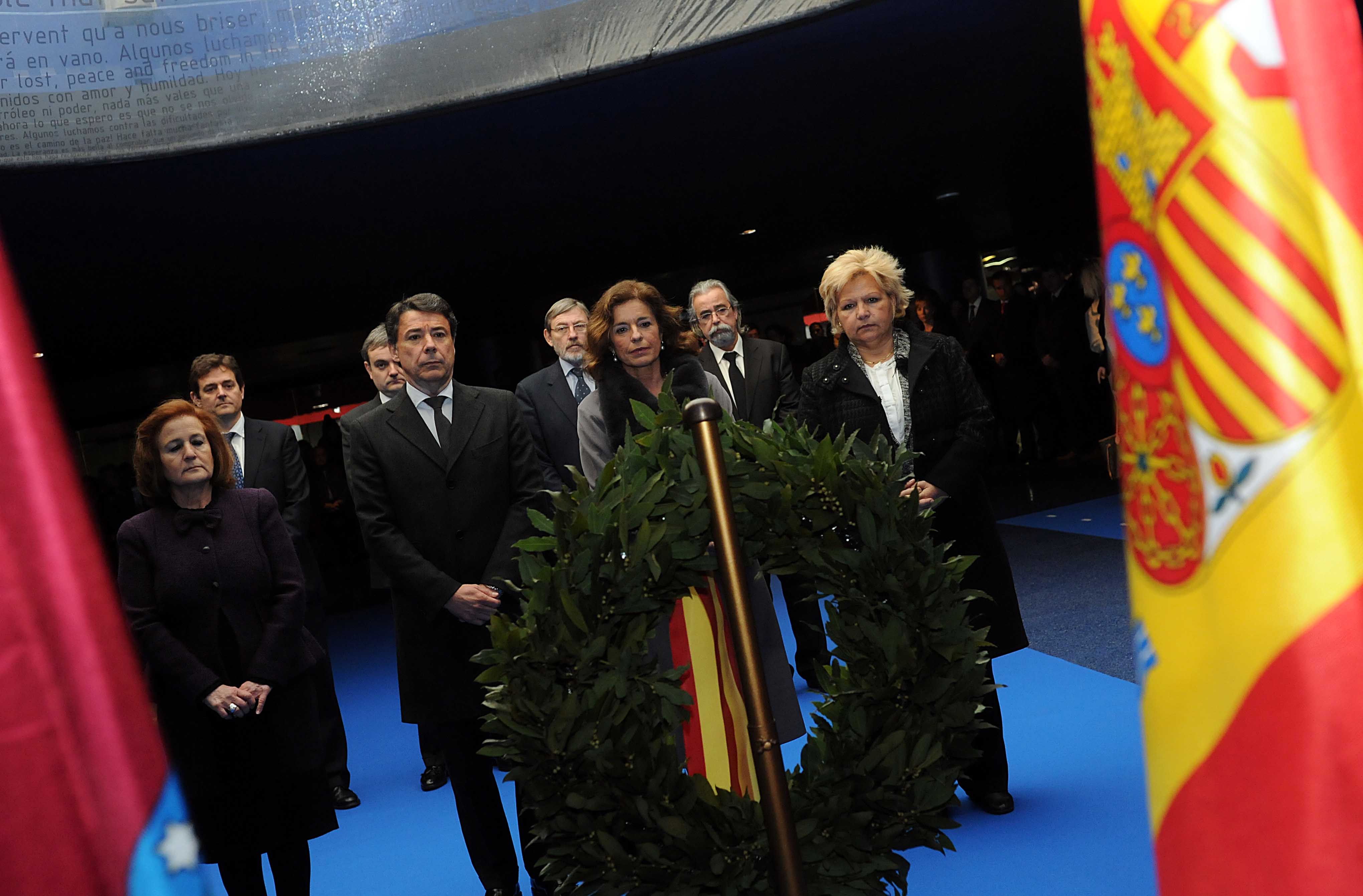 La alcaldesa de Madrid, Ana Botella, ha presidido hoy el acto organizado por el Ayuntamiento en la madrileña estación de Atocha, en recuerdo de las víctimas de los atentados del 11 de marzo de 2004. La alcaldesa, acompañada de la Corporación Municipal, ha depositado una ofrenda en el monumento en memoria de las víctimas cuando se cumplen nueve años de los atentados; una corona de laurel al pie del lucernario que recuerda a los fallecidos. Un minuto de silencio bajo gran cúpula transparente, de forma irregular, iluminada en su interior y dedicada a todas las víctimas de los atentados terroristas. Al acto ha asistido el presidente de la Comunidad de Madrid, Ignacio González, y los portavoces de los grupos municipales; el portavoz del PP en el Ayuntamiento, Enrique Núñez; Jaime Lissavetzky, del PSOE; Ángel Pérez, de IU, y el portavoz adjunto de UpyD; Jaime de Berenguer, además de la delegada del Gobierno, Cristina Cifuentes, y una amplia representación de los miembros de la Corporación municipal. También estuvieron presentes las presidentas de las asociaciones de Víctimas del Terrorismo (AVT), Ángeles Pedraza, y Ayuda de Víctimas del 11M, Ángeles Domínguez./