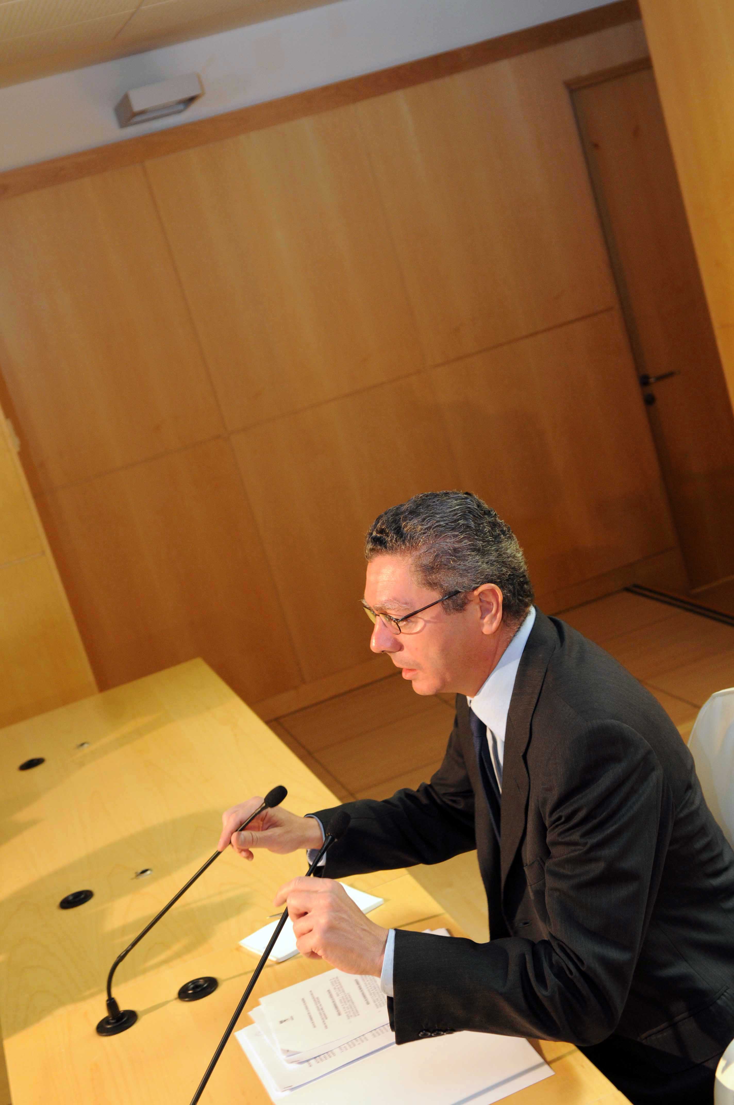 El alcalde, Alberto Ruiz-Gallardón, en la rueda de prensa que ha tenido lugar en la sede del Ayuntamiento de Madrid tras la reunión de la Junta de Gobierno