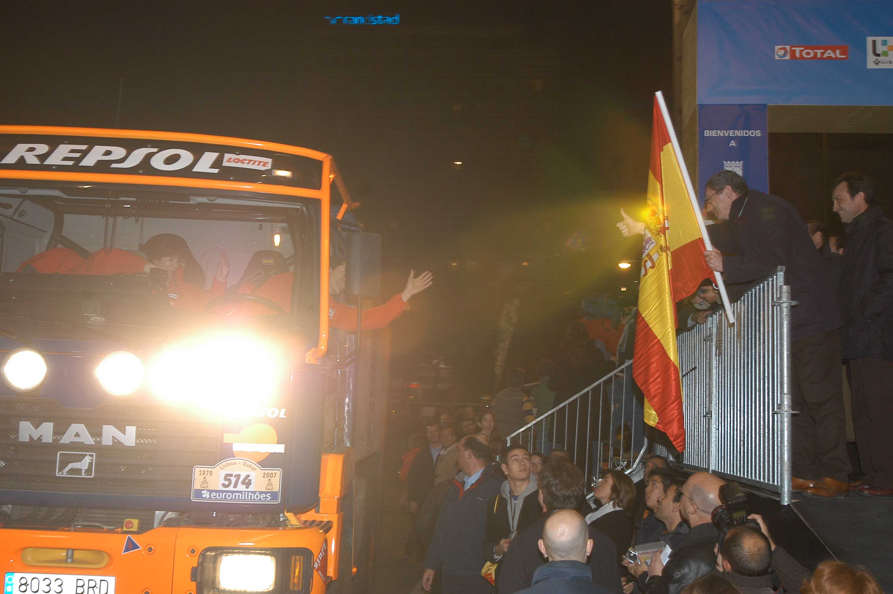 La caravana española está formada por 27 motos, 30 coches y 10 camiones. Tras un itinerario urbano, que va a transcurrir por la plaza de Lima, el paseo de la Castellana, la plaza de Colón, paseo de Recoletos, la plaza de Cibeles, el paseo del Prado, la plaza de Cánovas del Castillo, la glorieta de Carlos V, y el paseo de Santa María de la Cabeza hasta tomar la M-.40, los pilotos tomarán la N-V en dirección Lisboa. En la capital portuguesa se realizarán las verificaciones técnicas y administrativas a partir del día 3 de enero para que el día 6 comience oficialmente la considerada como la prueba más dura del mundo de la modalidad del motor.