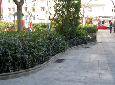Para mejorar esta situación y aumentar el tránsito peatonal de los vecinos se diseñarán parterres sin bordillos que integrarán arbustos de porte bajo con los árboles maduros existentes. Para el mantenimiento de la mayor parte de las nuevas plantaciones se aprovechará la red de drenaje y saneamiento existente.