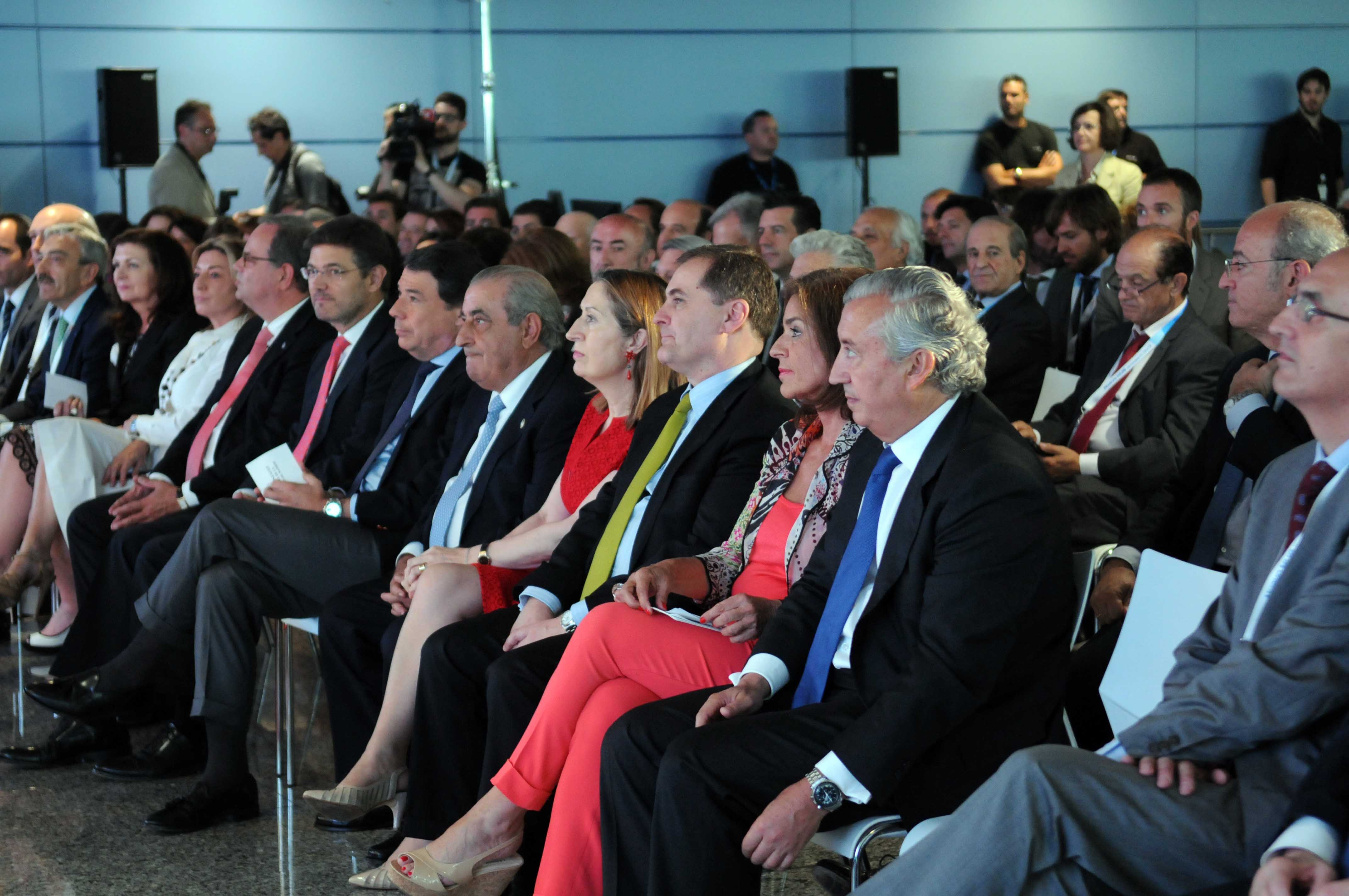 En la foto 1, de izquierda a derecha, el presidente de AENA, José Manuel Vargas; la alcaldesa de Madrid, Ana Botella; la ministra de Fomento, Ana Pastor; el presidente de Globalia, Juan José Hidalgo; el presidente de la Comunidad de Madrid, Ignacio González, y la directora del aeropuerto Adolfo Suárez Madrid-Barajas, Elena Mayoral, en la inauguración del nuevo hub que Air Europa y la alianza Sky Team han inaugurado hoy en la ciudad aeroportuaria madrileña./